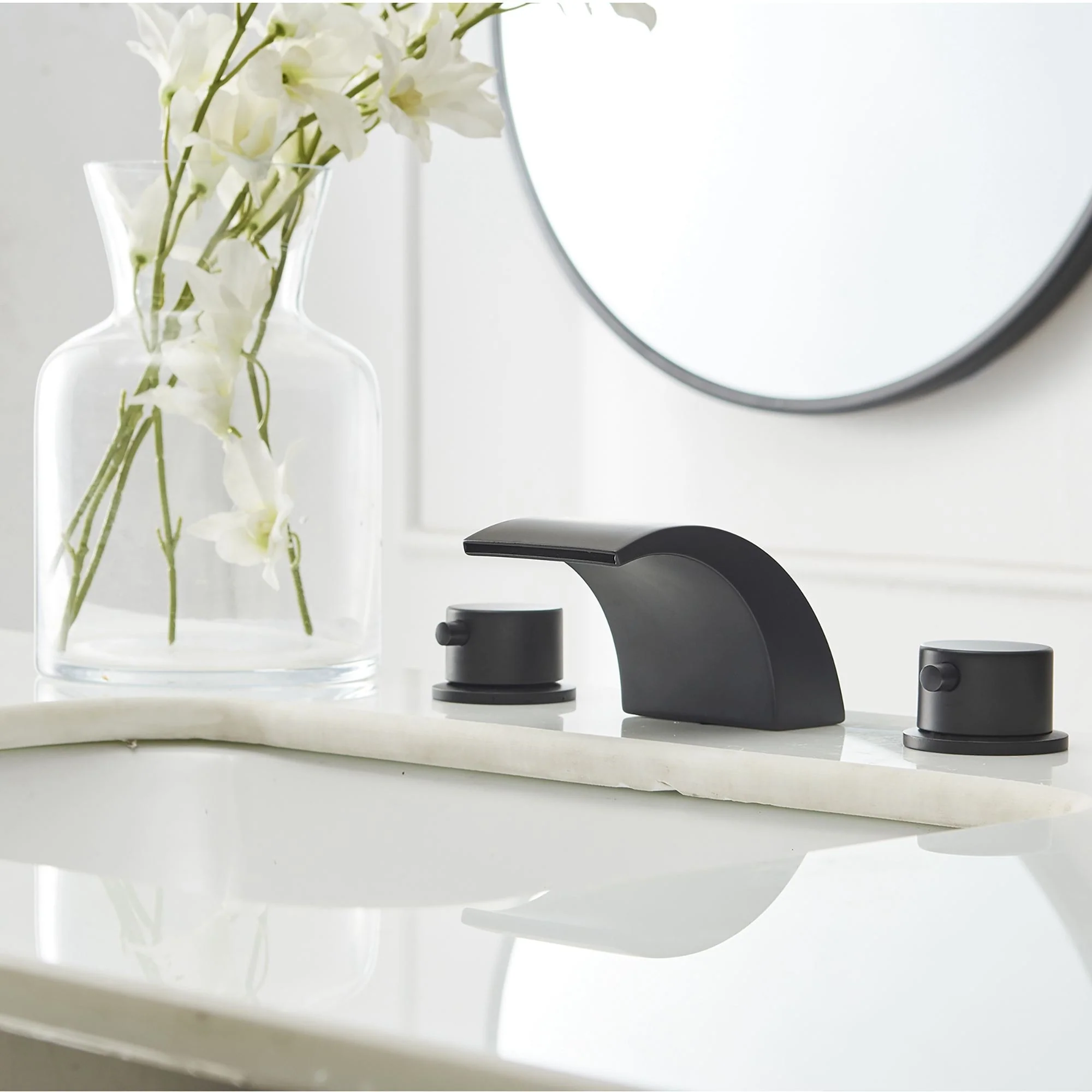 The 2-Handle Bathroom Faucet in matte black has an elegant design that will complement a wide variety of bathroom or powder room decor. Watersense certified,to help reduce water use and washer less cartridges to prevent drips.Easy to use with easy control metal lever handles.Its versatile design can easily be combined with a variety of bathroom styles,making it an outstanding choice for any remodel project.