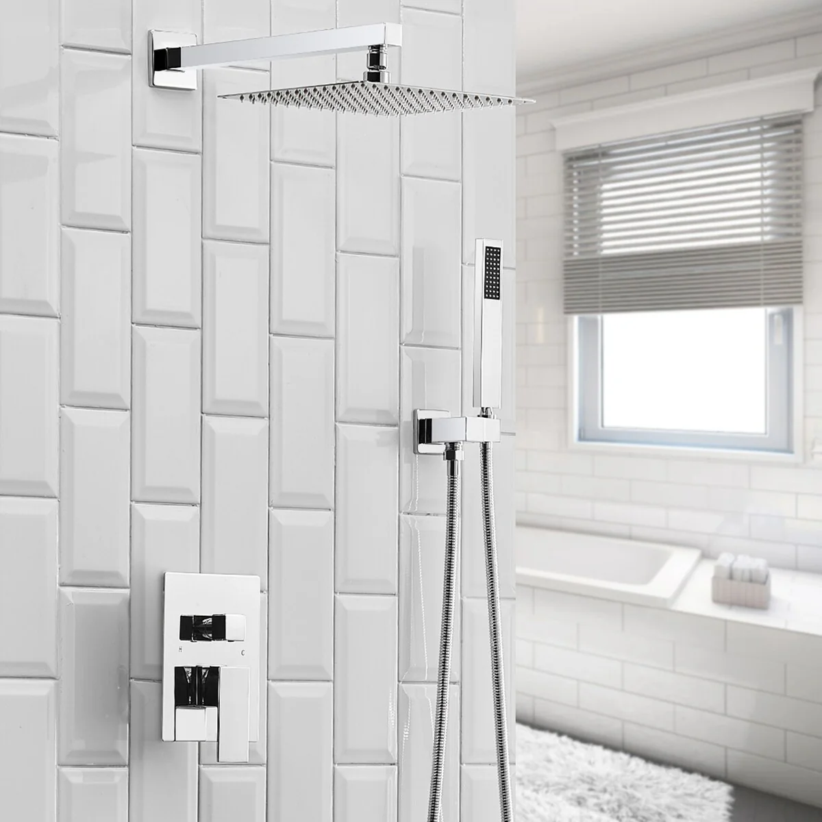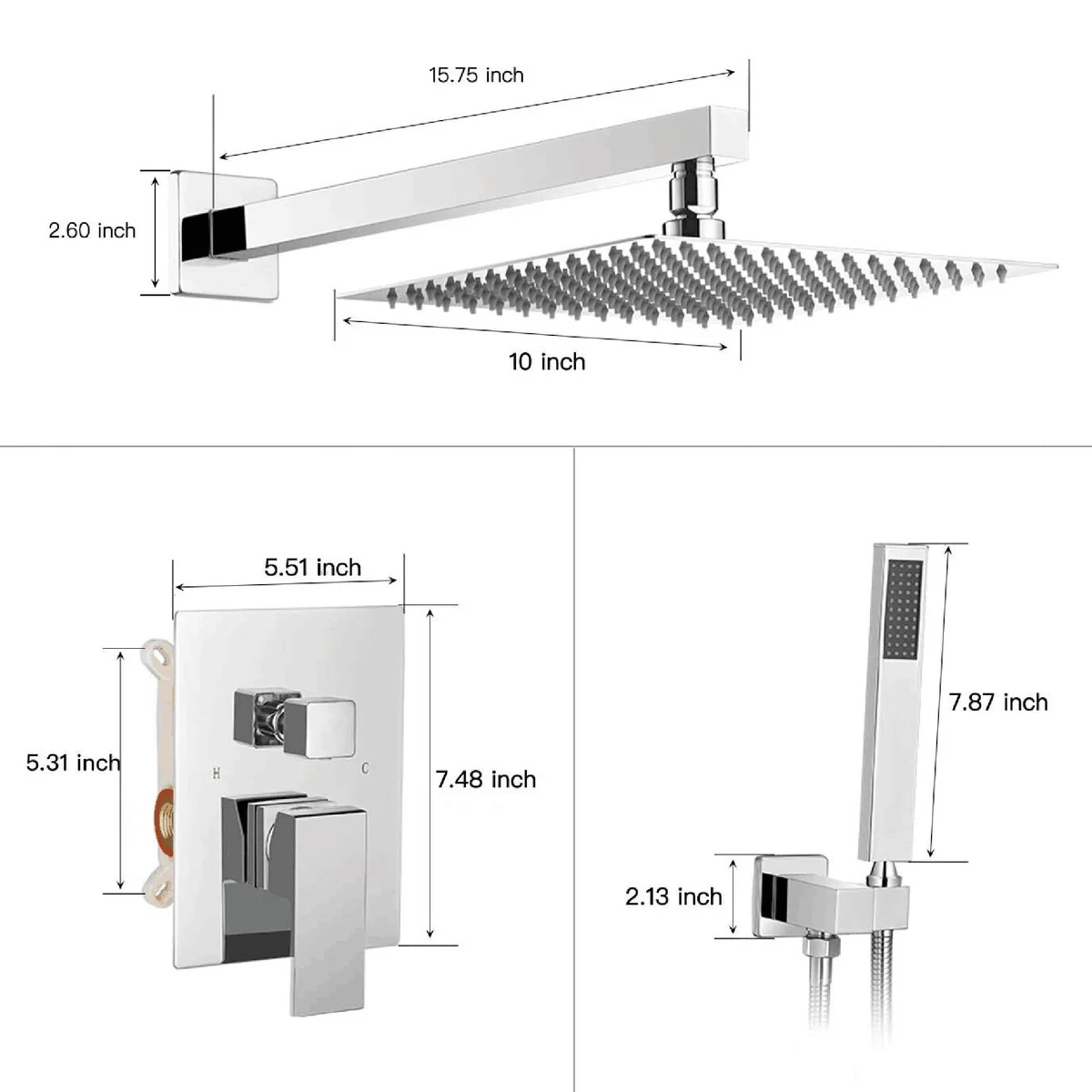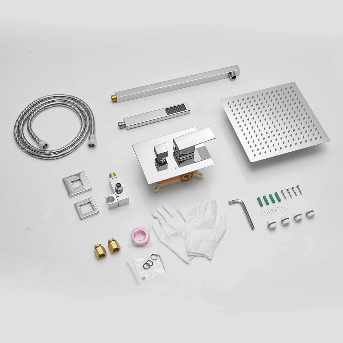 This 11.53-inch polished chrome rectangle bathroom shower combo set faucet is a brilliant accessory for your bathroom, It always uses the best materials to bring the best experience and quality to our customers. High air pressure technology injects the air into the rain shower head to mix water with air offering more water pressure and giving you a pleasant shower.
