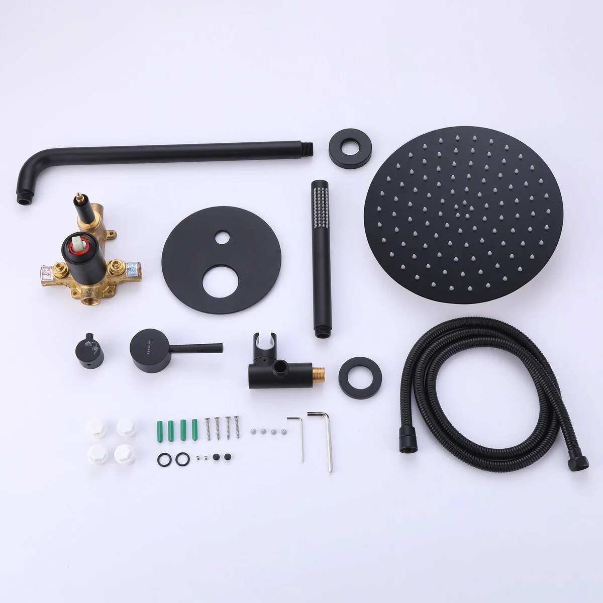 1.The main body and handheld shower heads are constructed of solid brass, ensuring corrosion resistance and timeless elegance through daily use.
