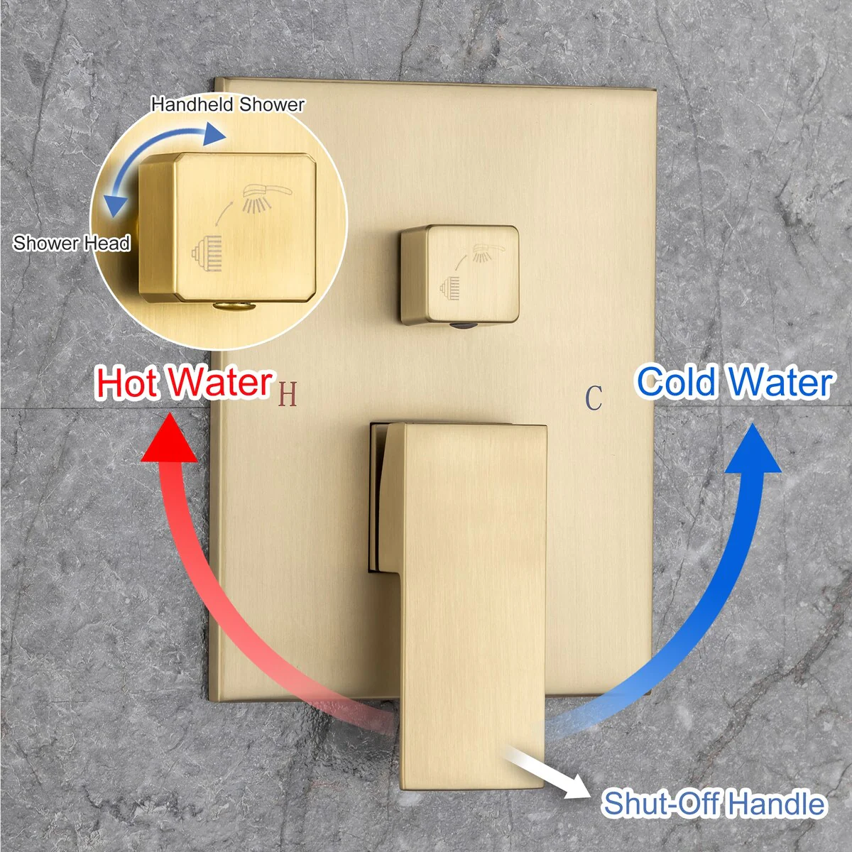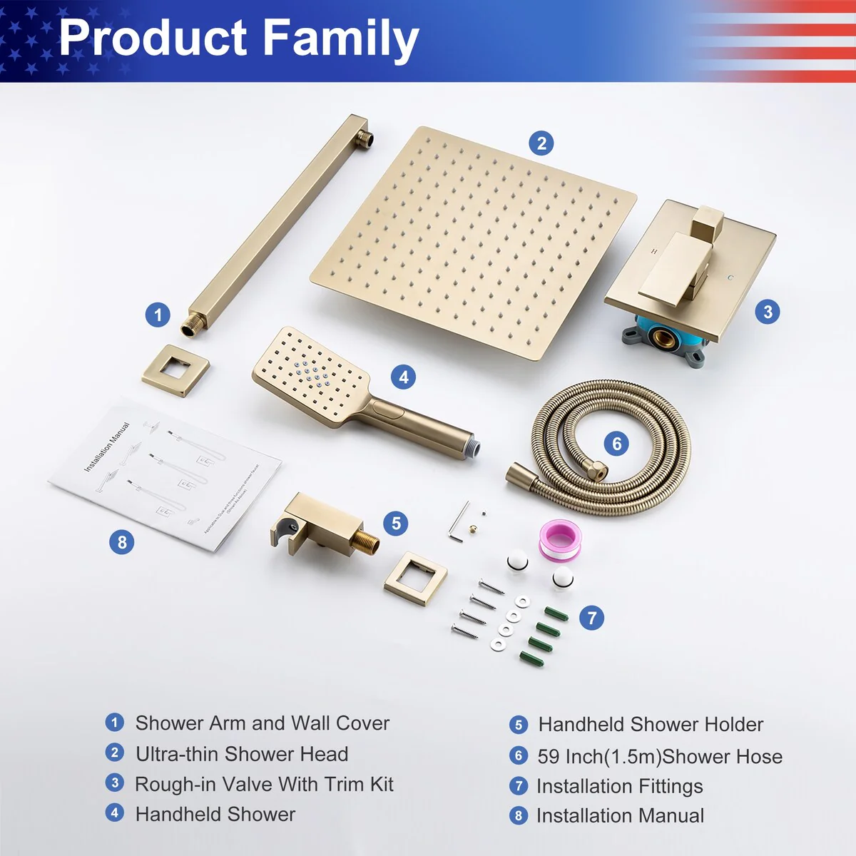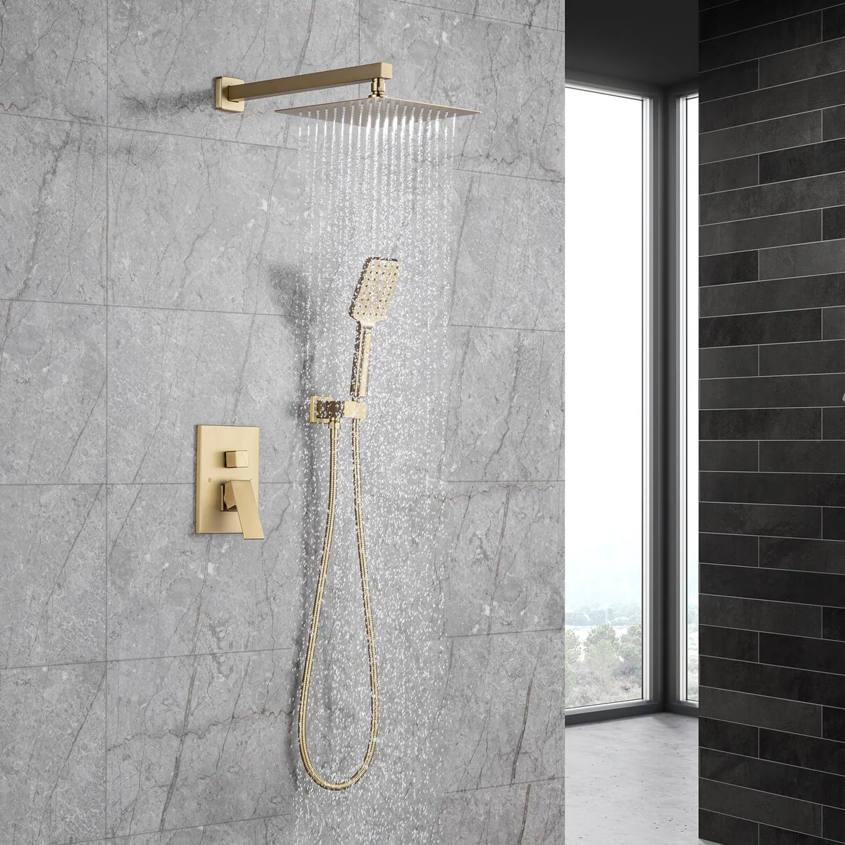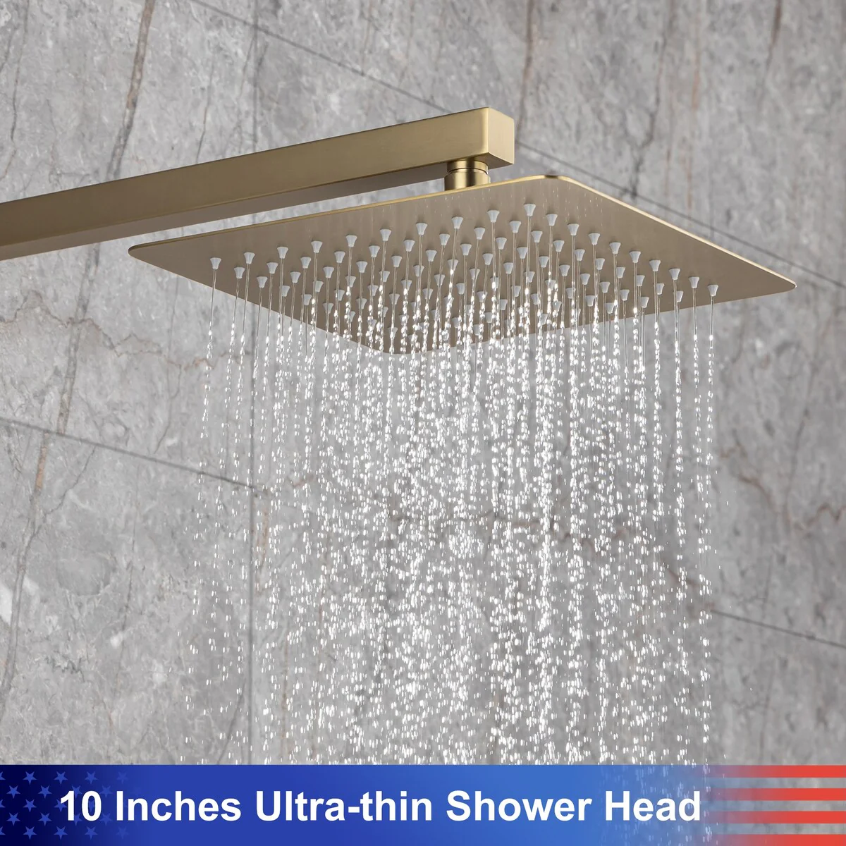 Upgrade your shower experience with the Rainlex Wall-Mounted Dual Functions 10' Rainfall Shower Head in Brushed Gold. This shower fixture features a modern and fashionable design, with premium solid lead construction and an all-metal extra large shower head. Enjoy a high flow rate and choose from three modes of handshower spray. The all-in-one diverter makes it easy to switch between the rainfall shower head and hand shower. This pressure balance shower system includes the rough-in valve for easy installation.