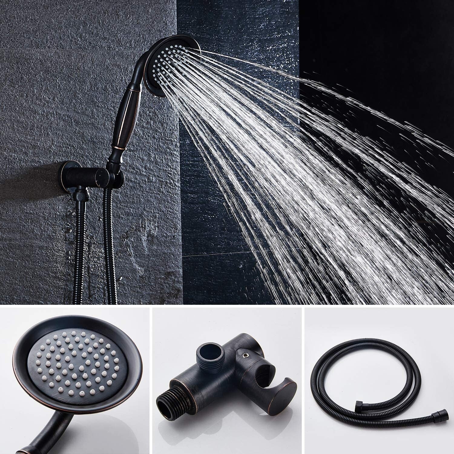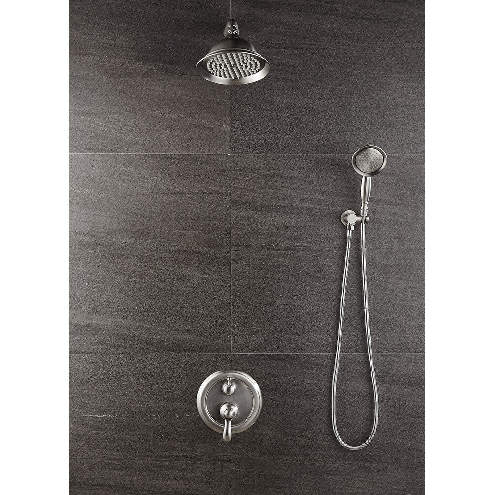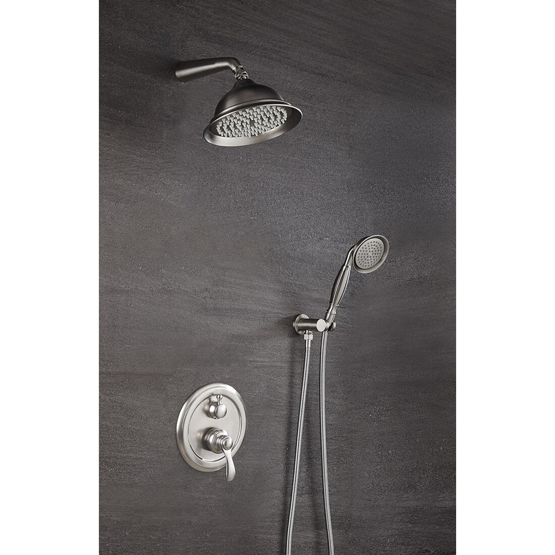 - Includes rain-style shower head, shower arm, and handheld