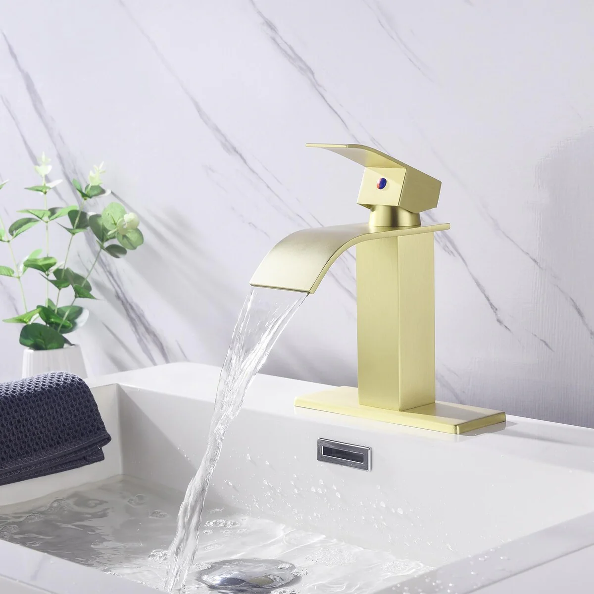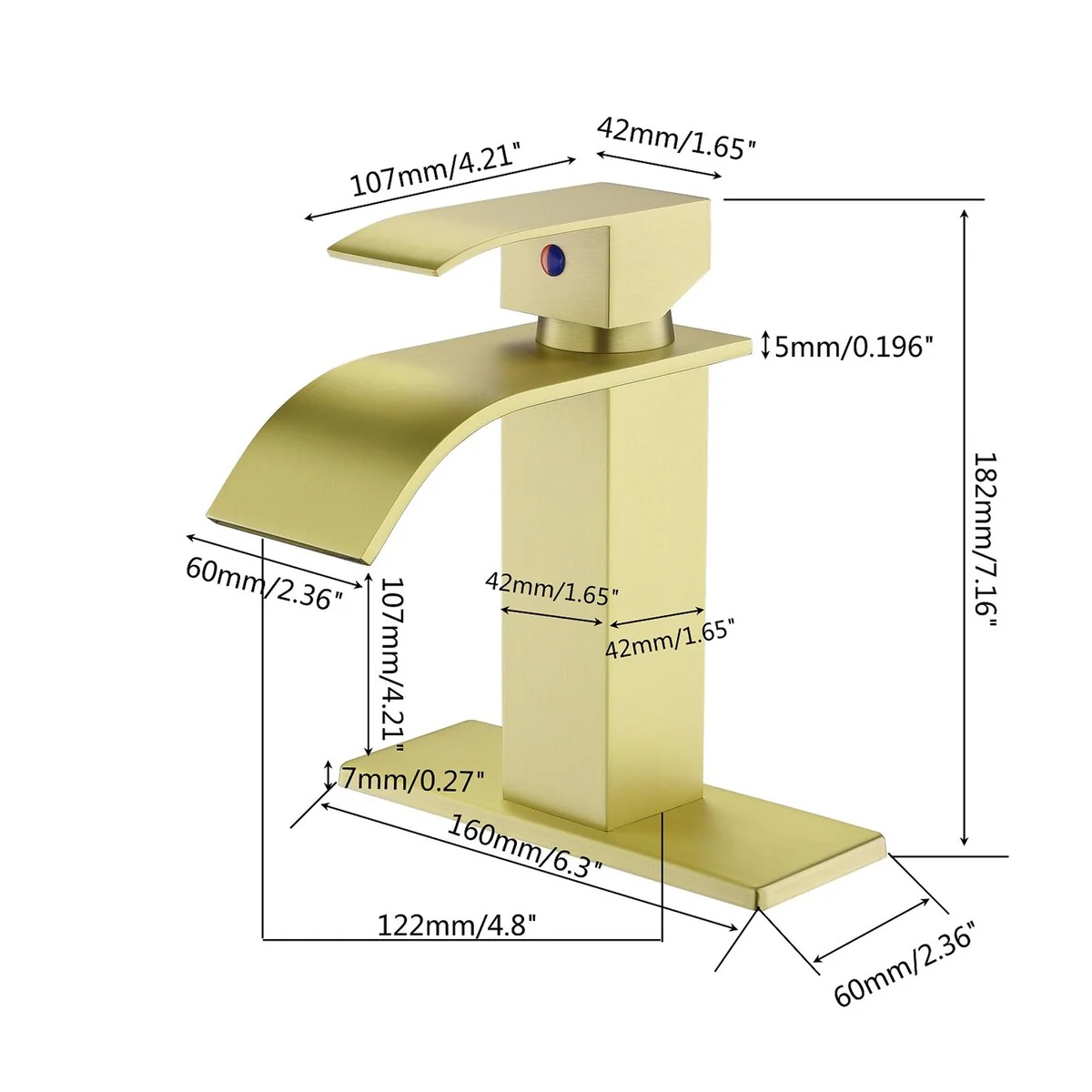 Stainless Steel 304 bathroom faucet, sturdy and heavy-duty, free from rust and corrosion, ensuring durability and life span.The ultra-wide waterfall spout design makes large water flow. It provides a clear, powerful and beautiful laminar stream. Simple design suit for any style of the house.Single lever design for effortless flow and temperature control.It includes hot and cold water functions, high flow and high pressure.Very easy to install and clean. Material:Stainless Steel Valve Type: Drip-Free Ceramic Valve Water Mode: Waterfall Water Feature: Mix Hot and Cold Spout Height : 4.21Inches