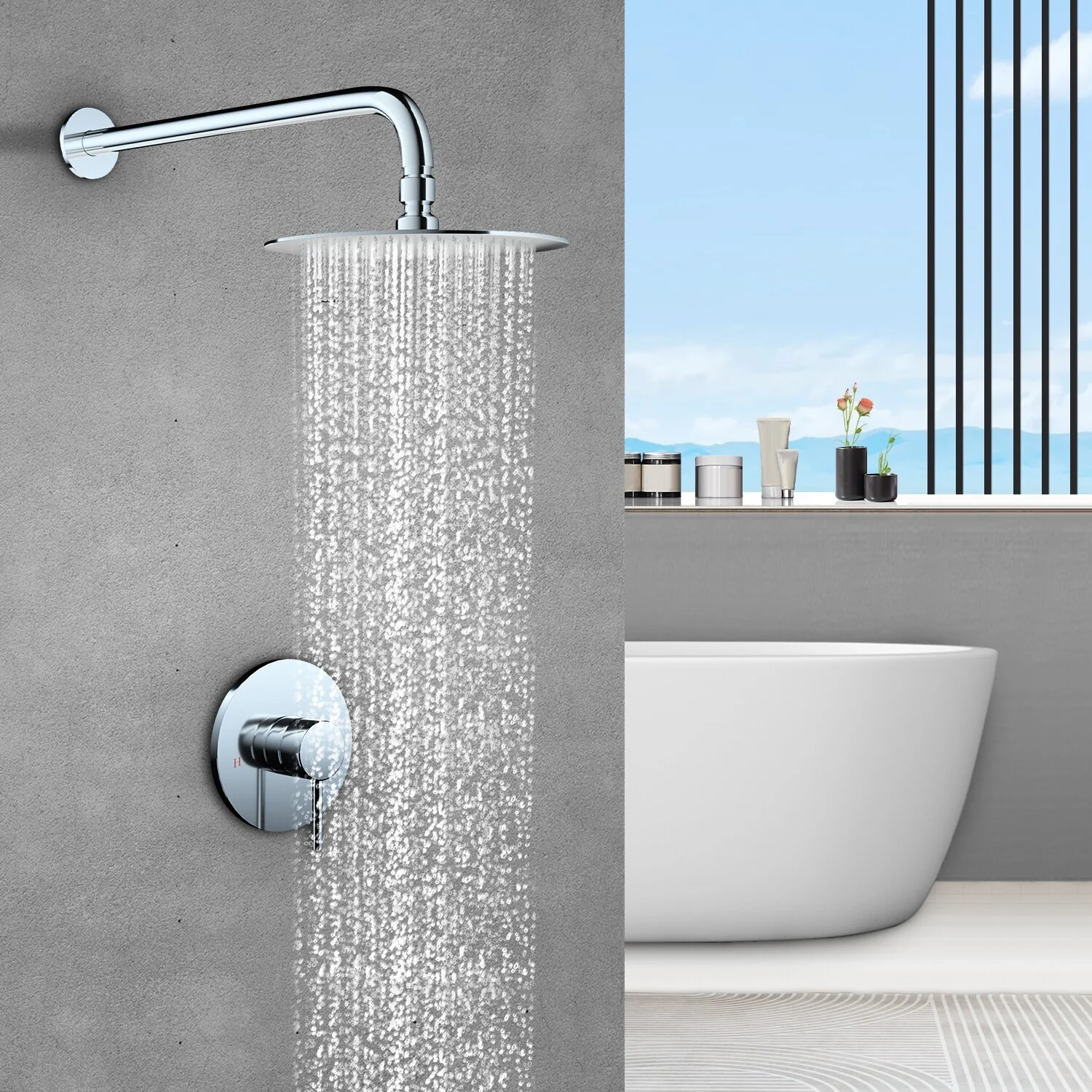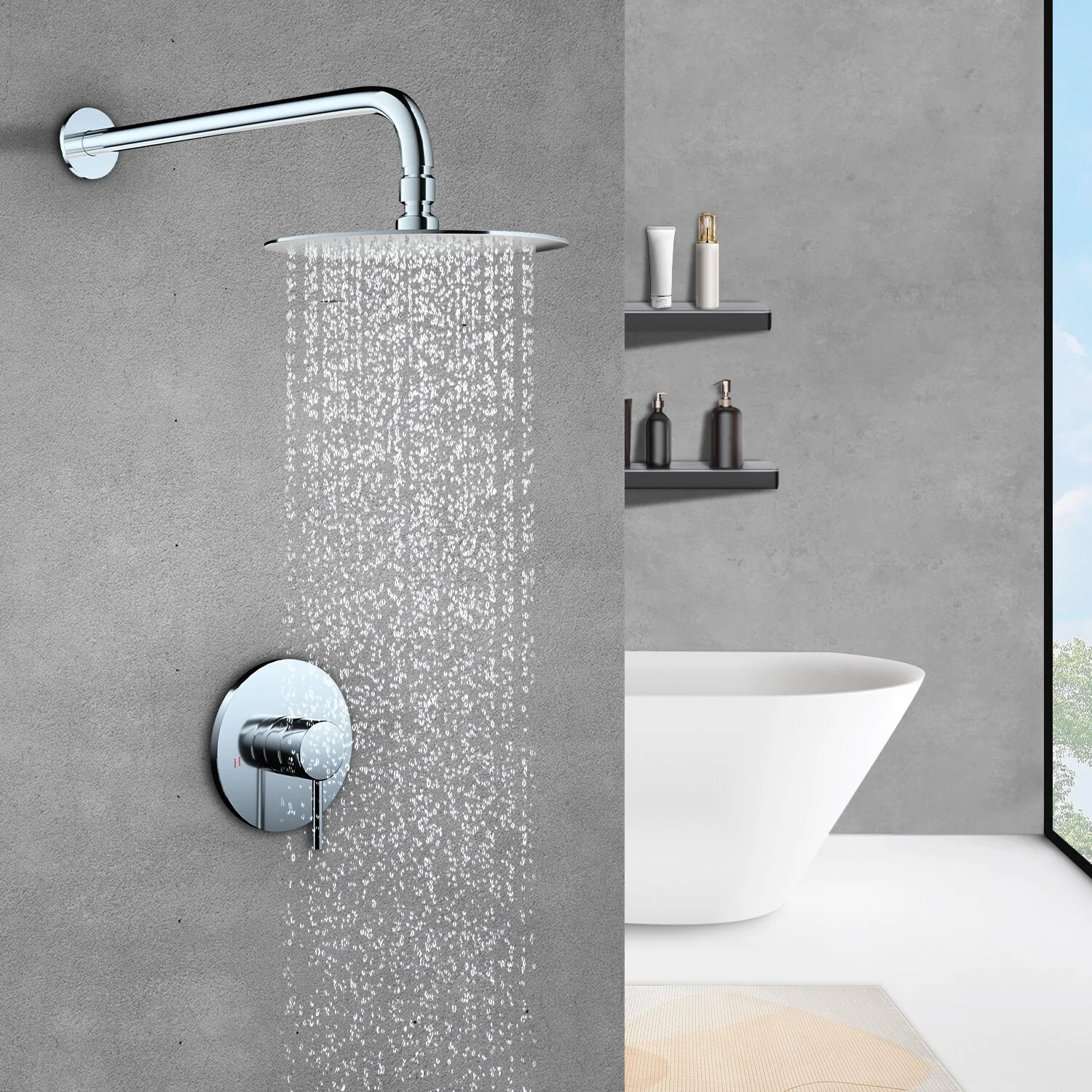 This wall-mounted shower system will enhance your showering experience through superior performance. This shower system is made of high quality materials and solid construction for durability. The design is classic and elegant, easily matching your bathroom decor. The showerhead operates via a single handle, so that you can indulge in a 12-inch round rain shower to wash away your fatigue.