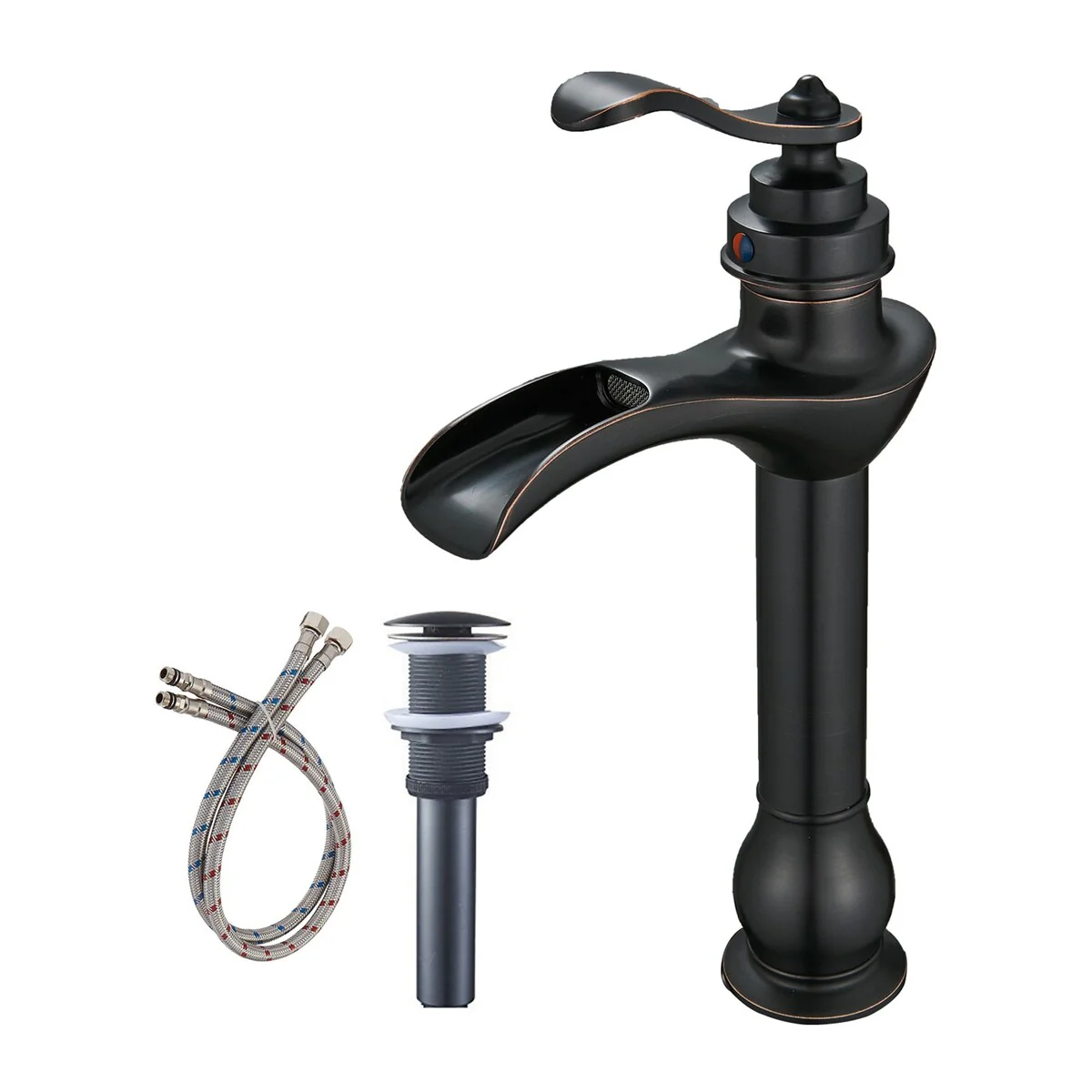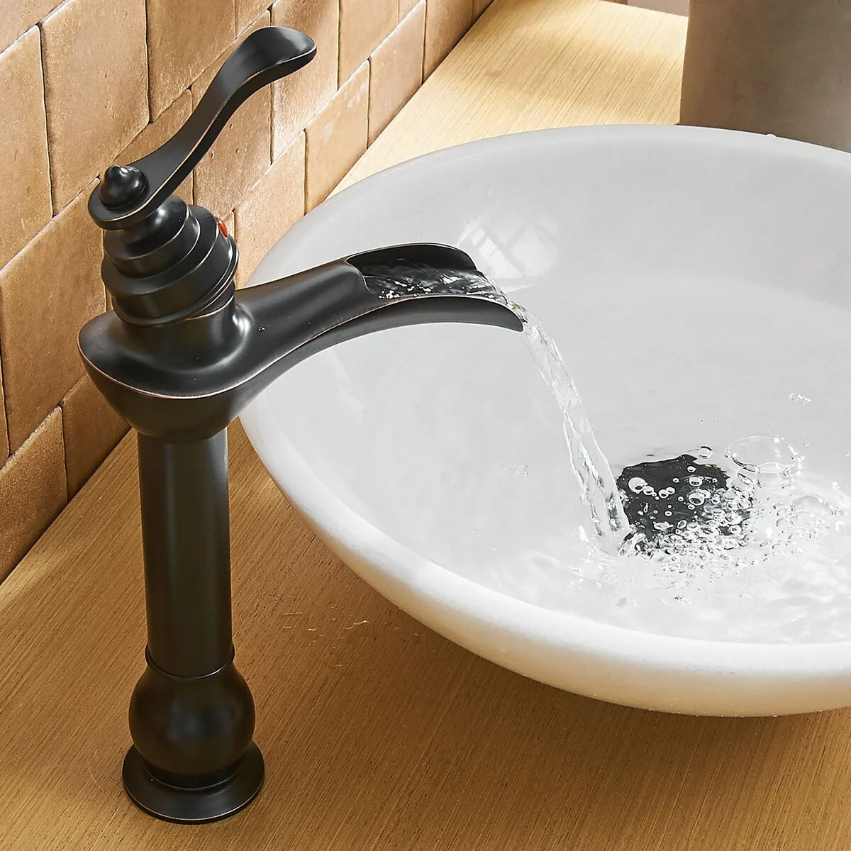 Refresh the look of your modern bathroom with this sleek, solid brass bathroom faucet. This single-handle faucet has a high spout for greater clearance and ease of use. Constructed from solid brass, the Single Hole Bathroom Faucet combines graceful beauty with modern design. The single-handle faucet features elegant curves and a unique trough spout which creates a relaxing cascading effect when the faucet is in use.