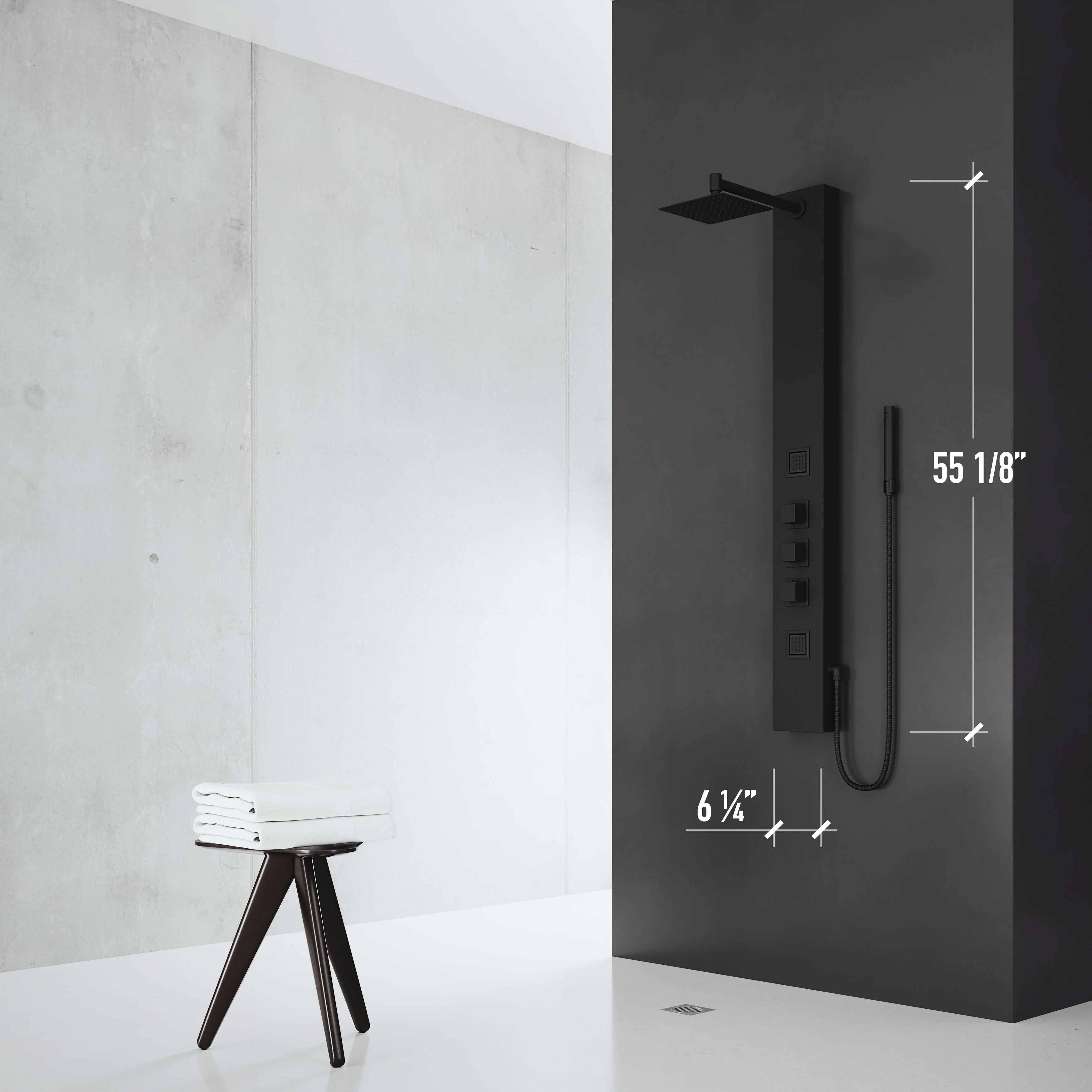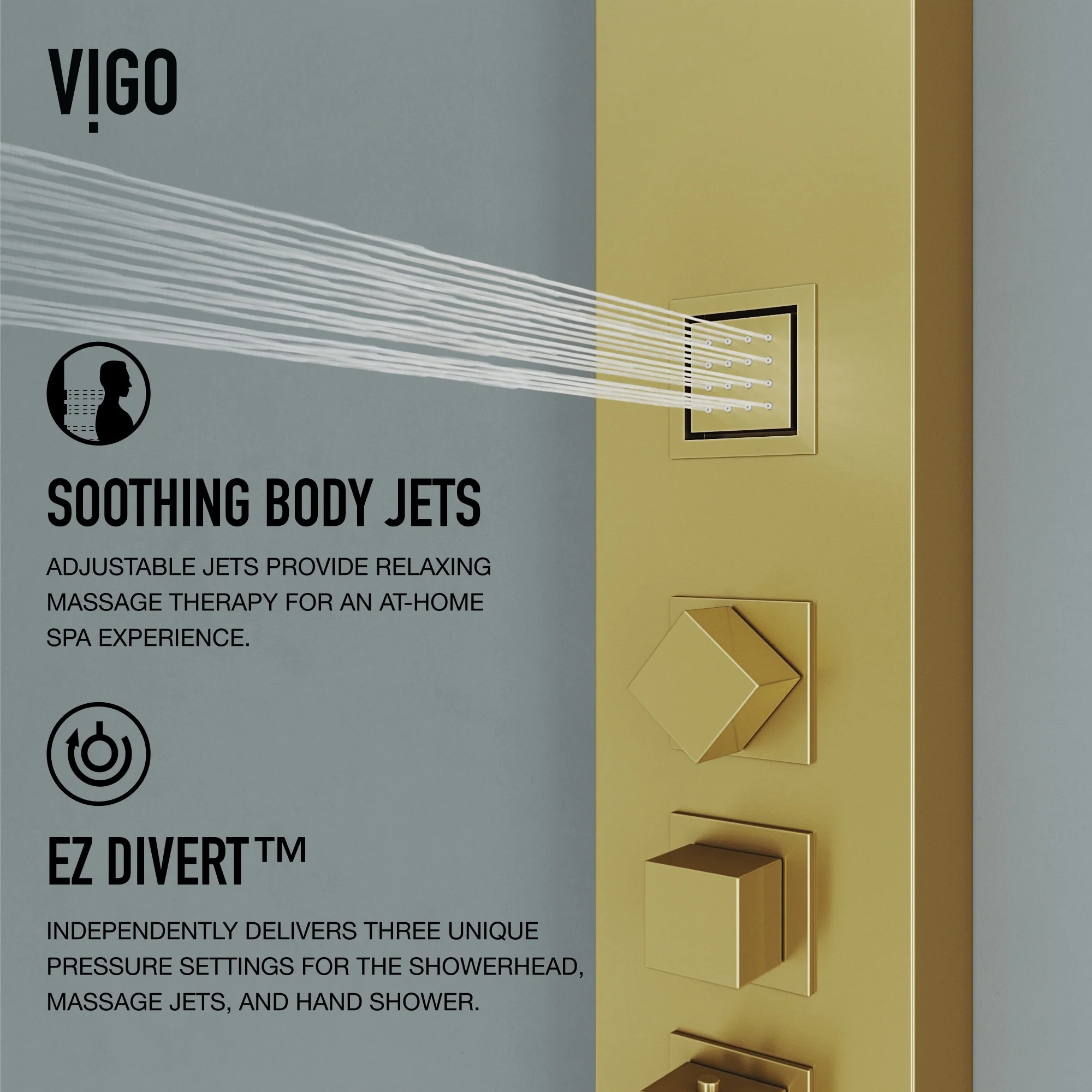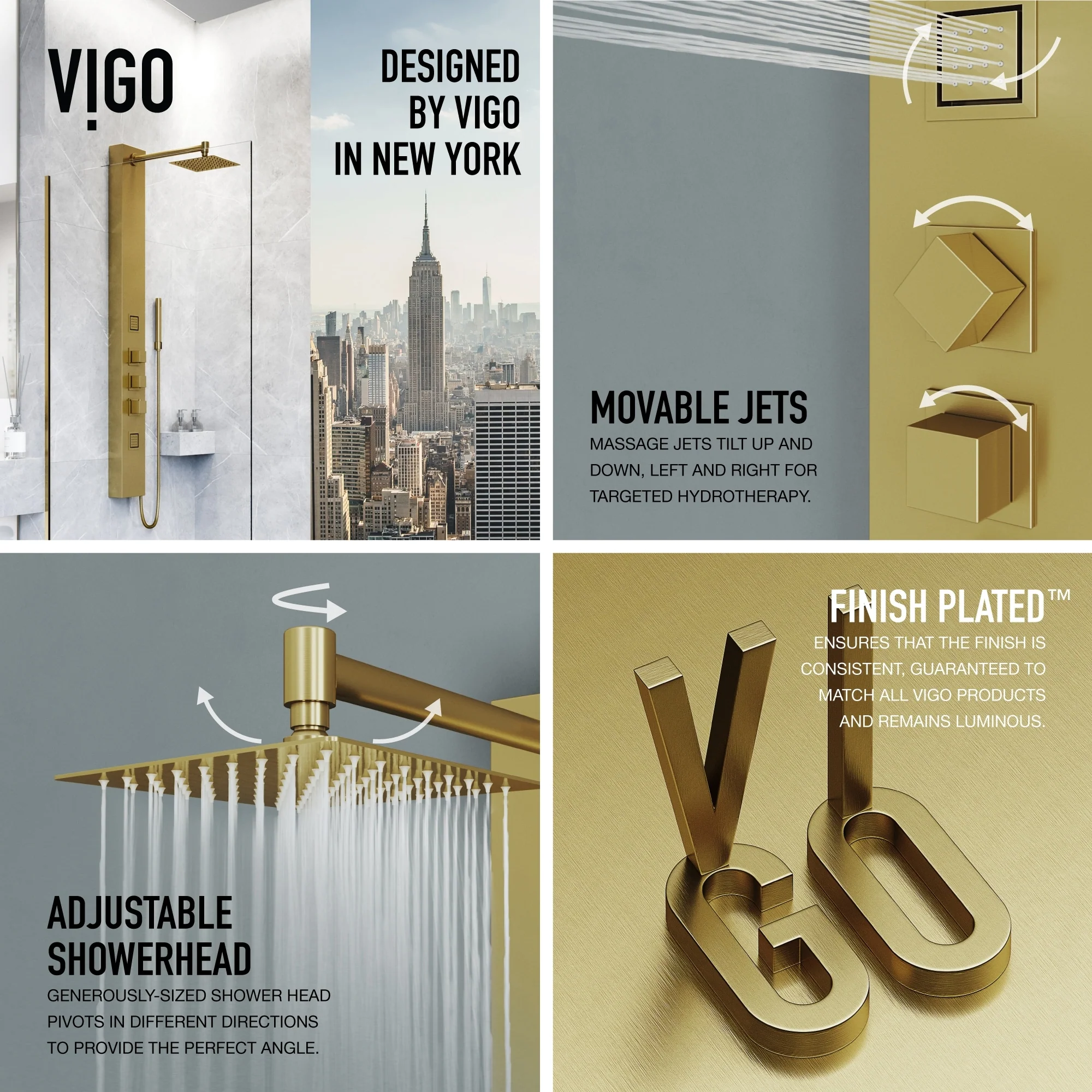 Transform your shower experience with the VIGO Rector 2-Jet Shower Panel System. This shower massage panel integrates intelligent hydrotherapy to relieve pain, relax muscle tension, and promote better sleep. The solid brass construction and 7-layer finish ensure the shower panel is durable enough to stand the test of time. The square rainfall shower head delivers exceptional water flow while conserving water, and the handheld showerhead can be easily removed for a targeted water flow. The VIGO Rector is easy to install with all parts and a user-friendly guide included.