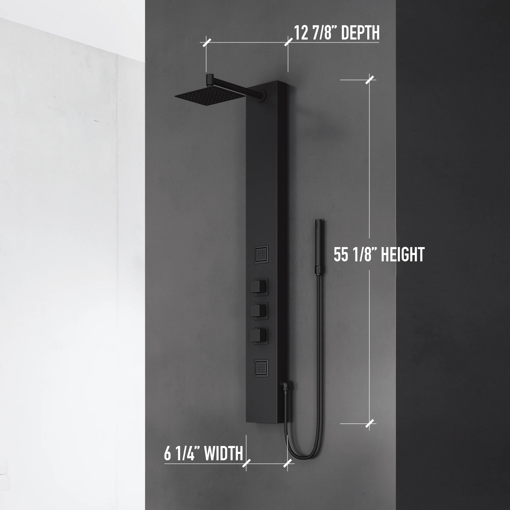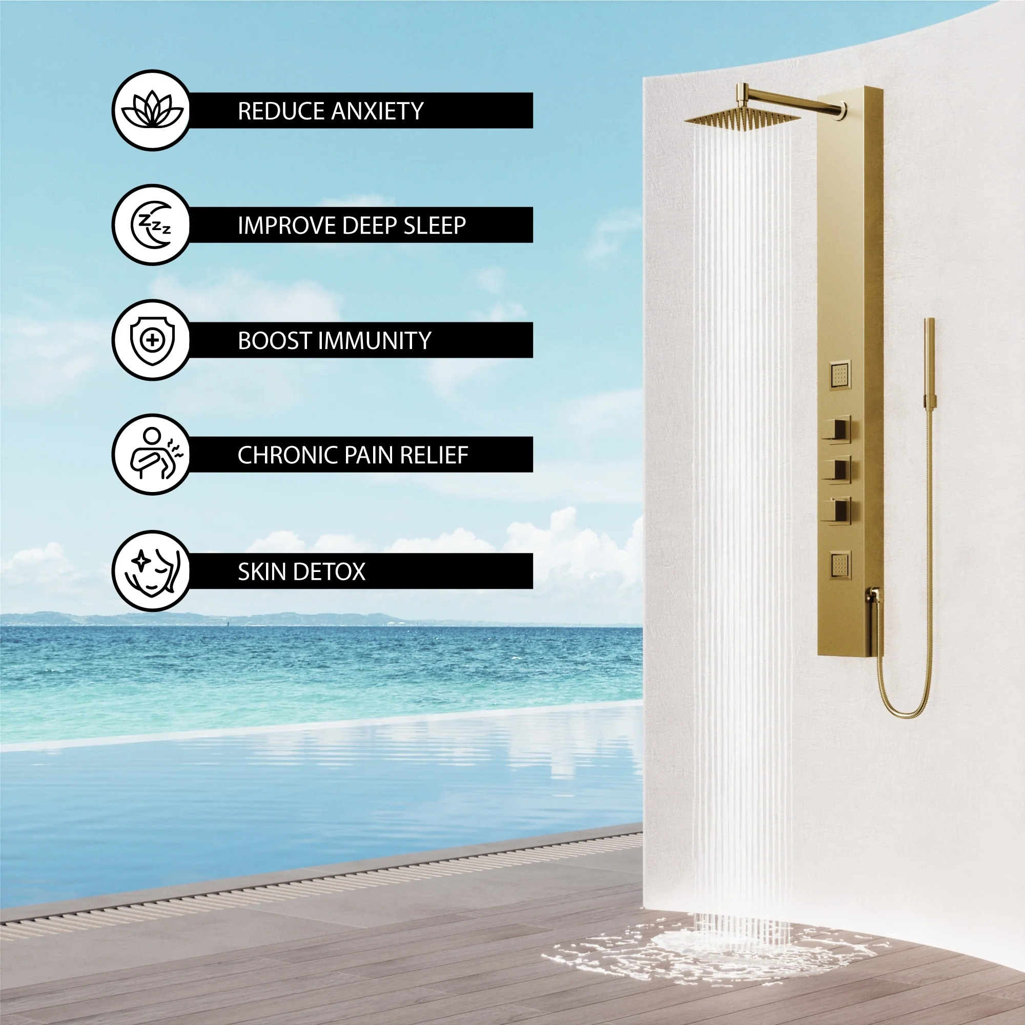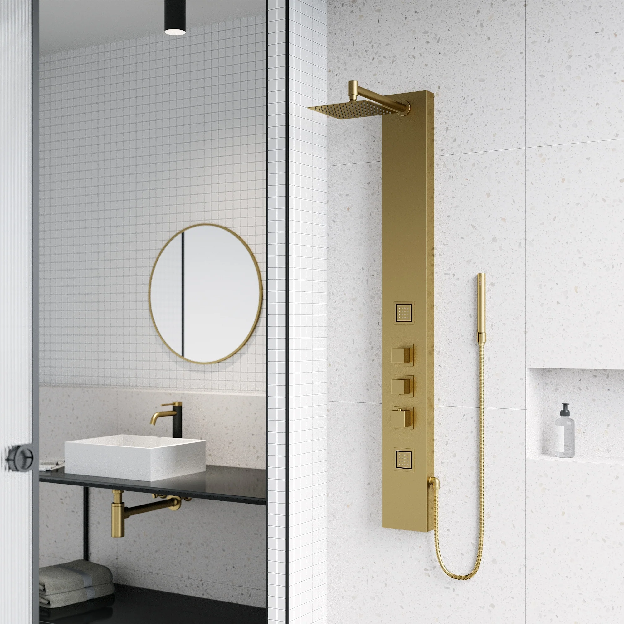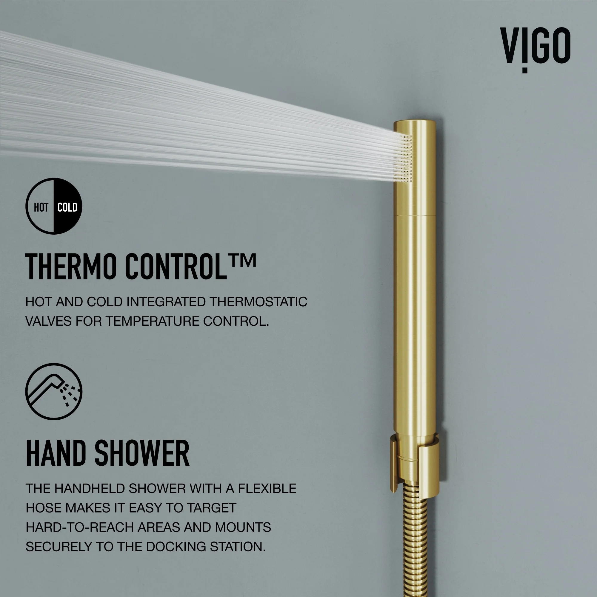 Transform your shower experience with the VIGO Rector 2-Jet Shower Panel System. This shower massage panel integrates intelligent hydrotherapy to relieve pain, relax muscle tension, and promote better sleep. The solid brass construction and 7-layer finish ensure the shower panel is durable enough to stand the test of time. The square rainfall shower head delivers exceptional water flow while conserving water, and the handheld showerhead can be easily removed for a targeted water flow. The VIGO Rector is easy to install with all parts and a user-friendly guide included.