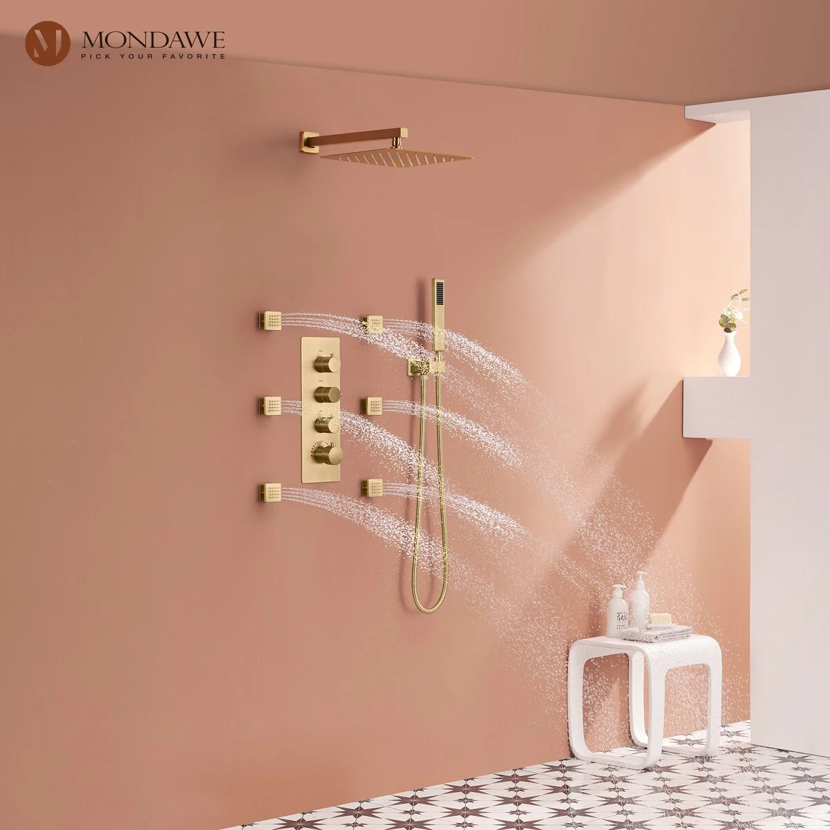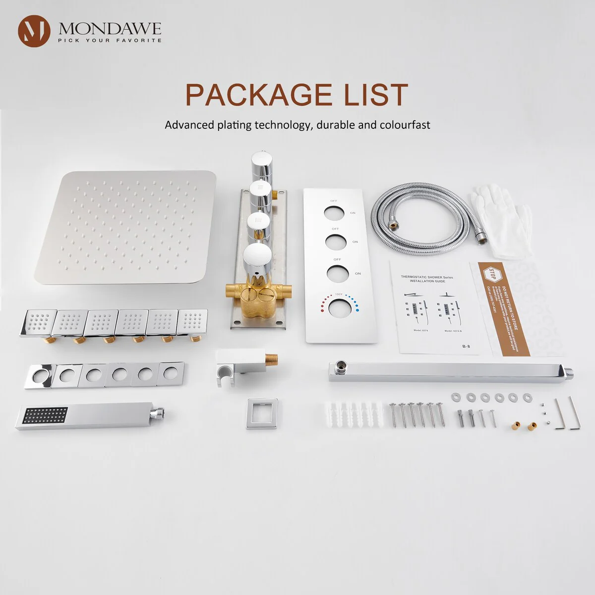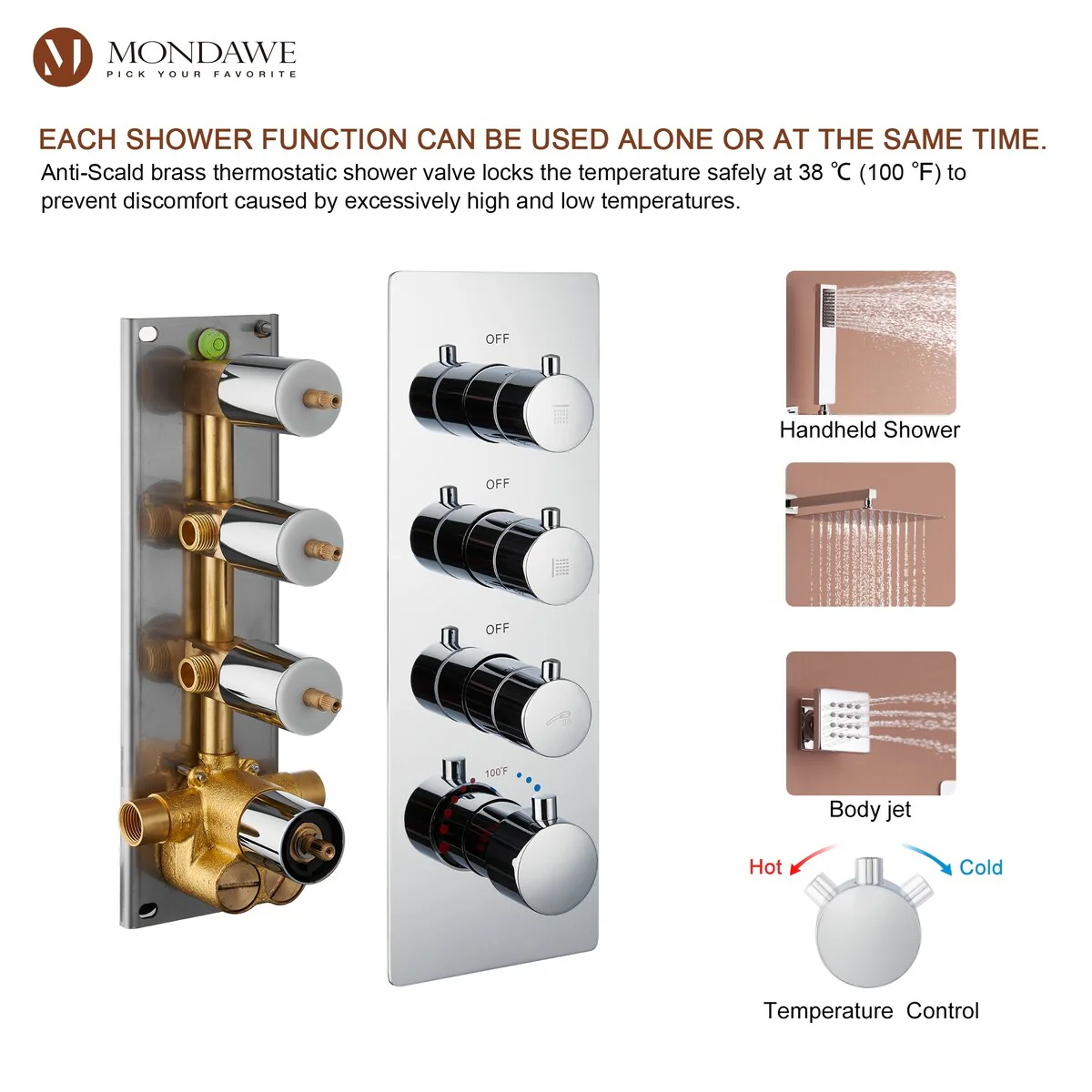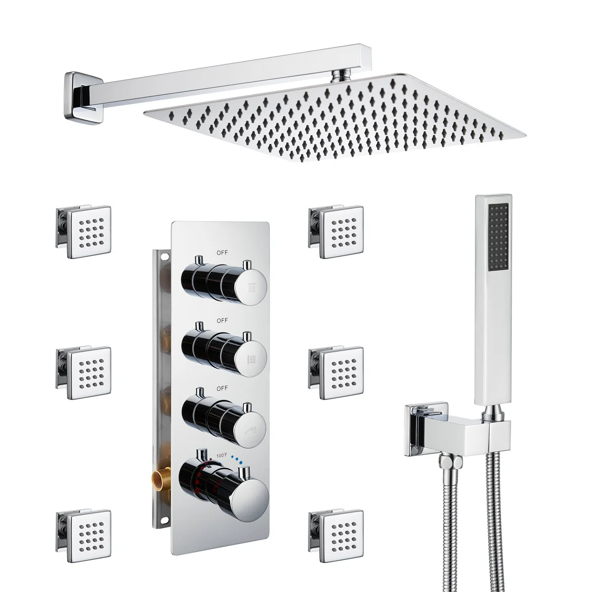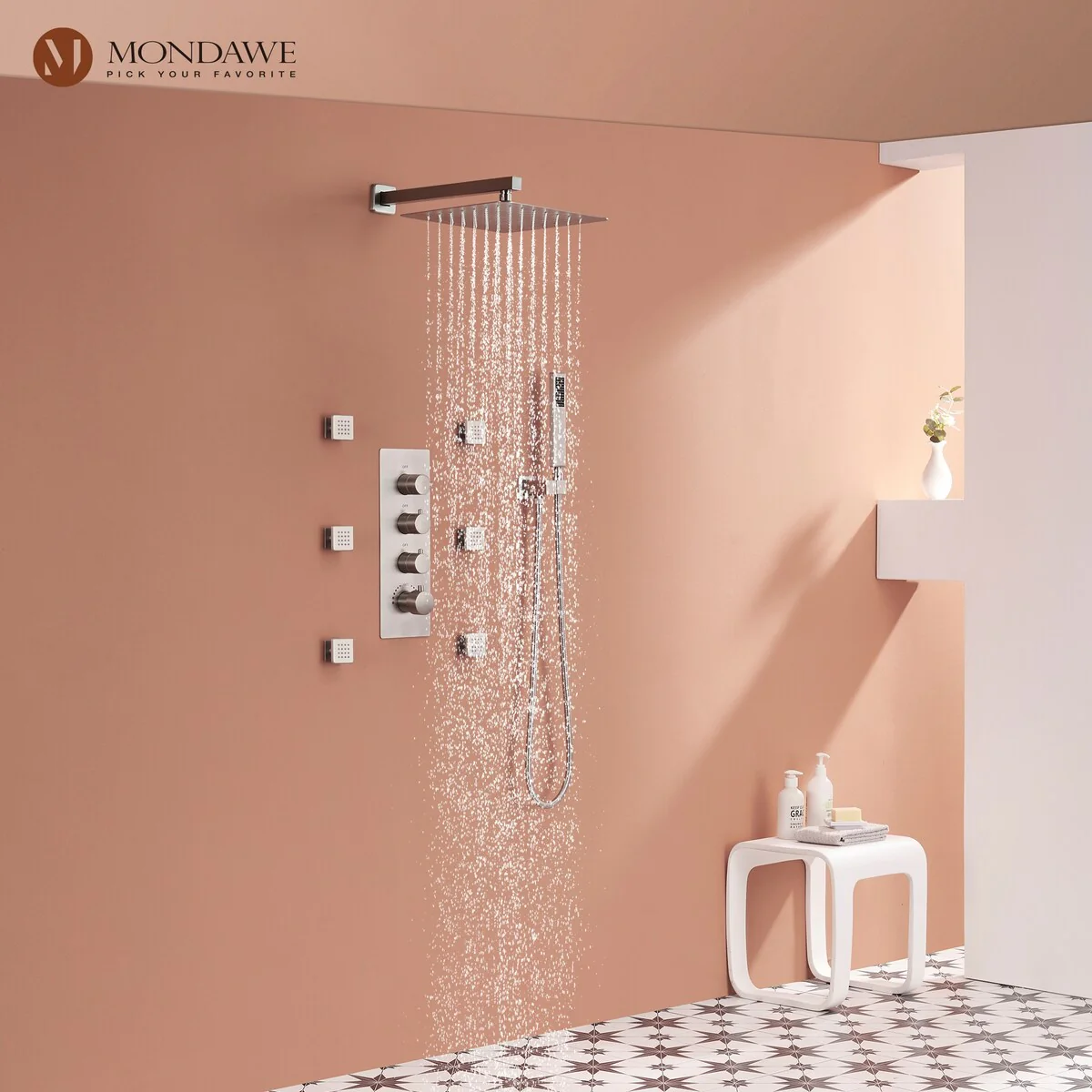 Enhance your shower experience with our premium Thermostatic Shower System. This system is designed to provide a luxurious full-body shower experience with a hand shower and 6 body jets. Crafted from solid brass and stainless steel, it ensures durability and long-lasting performance.