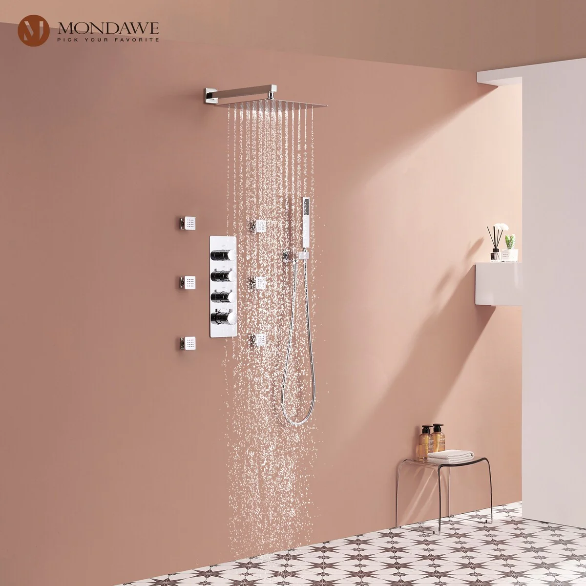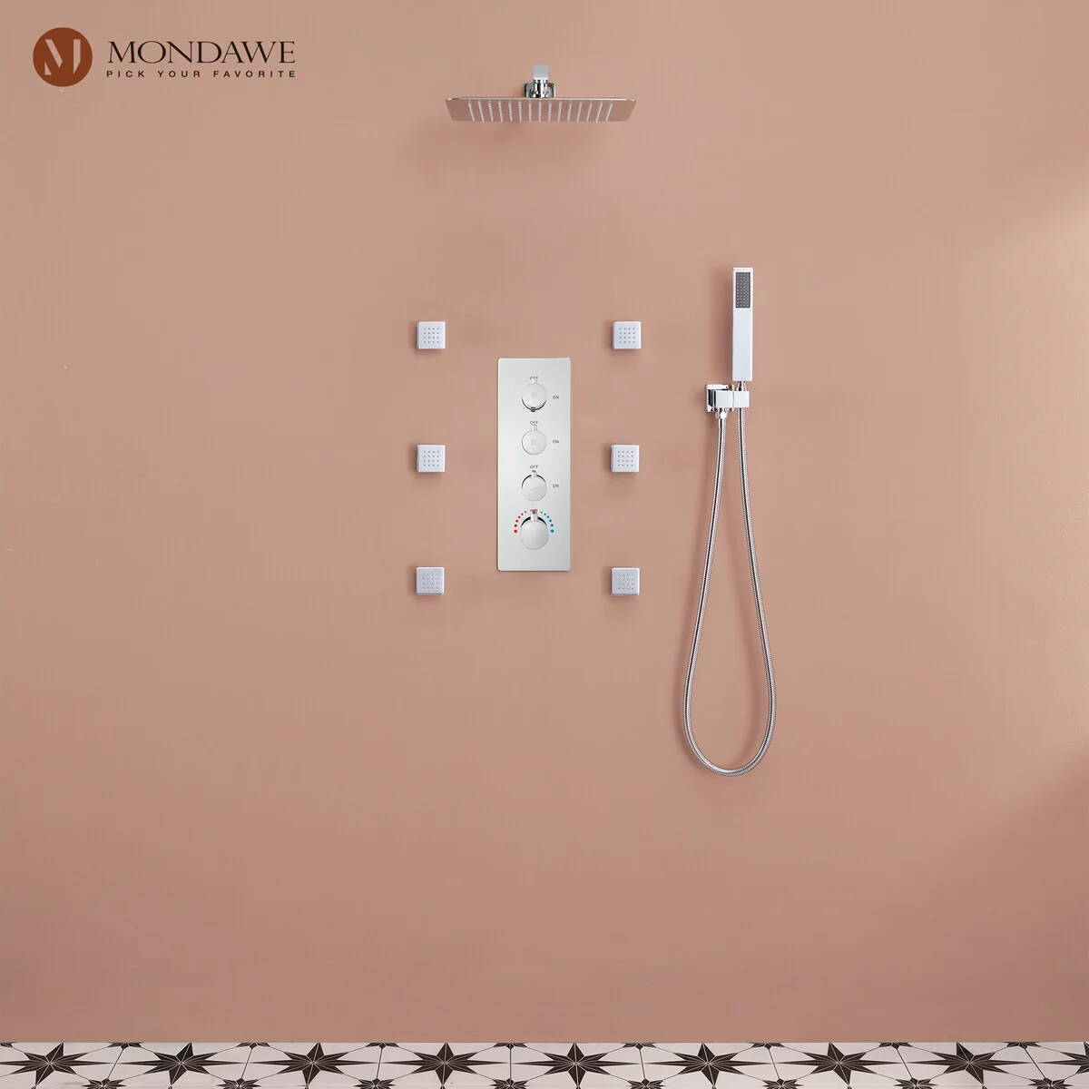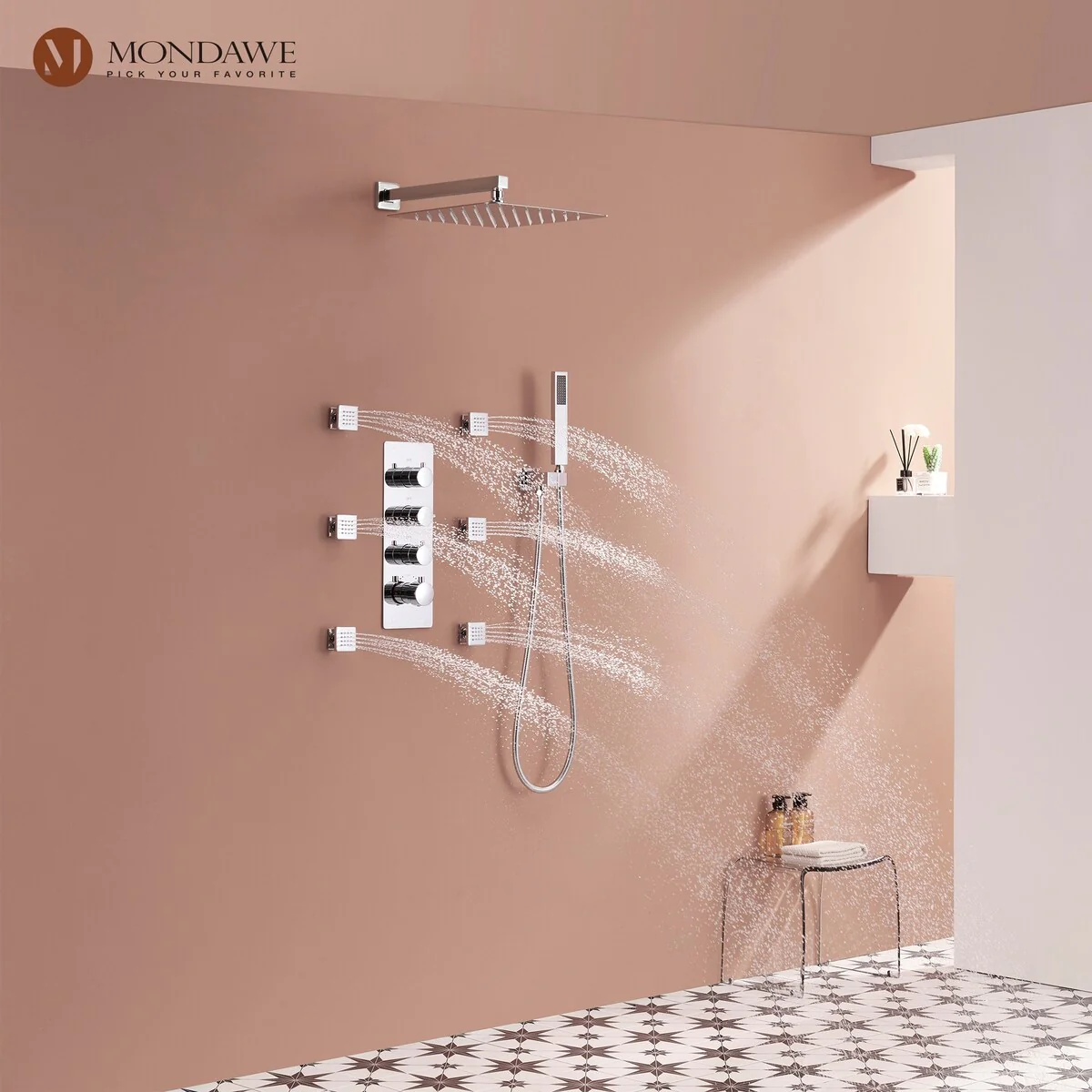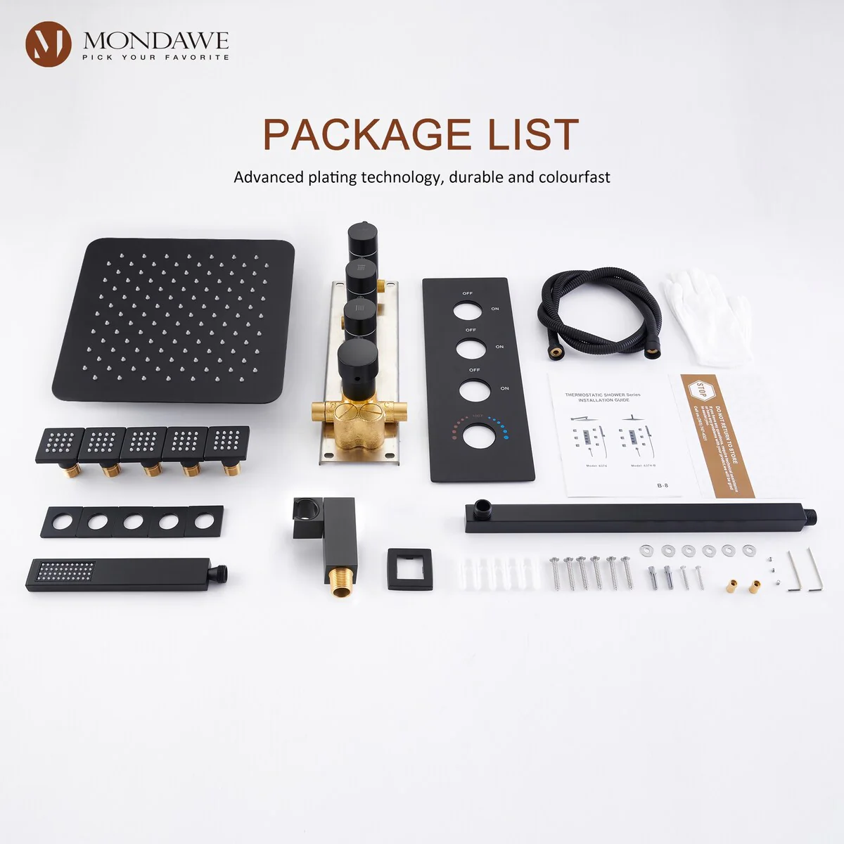 Enhance your shower experience with our premium Thermostatic Shower System. This system is designed to provide a luxurious full-body shower experience with a hand shower and 6 body jets. Crafted from solid brass and stainless steel, it ensures durability and long-lasting performance.