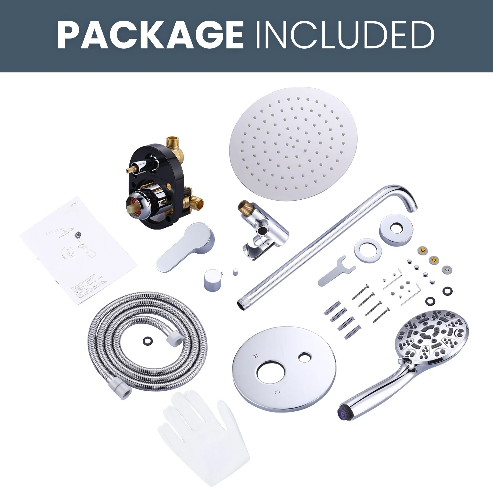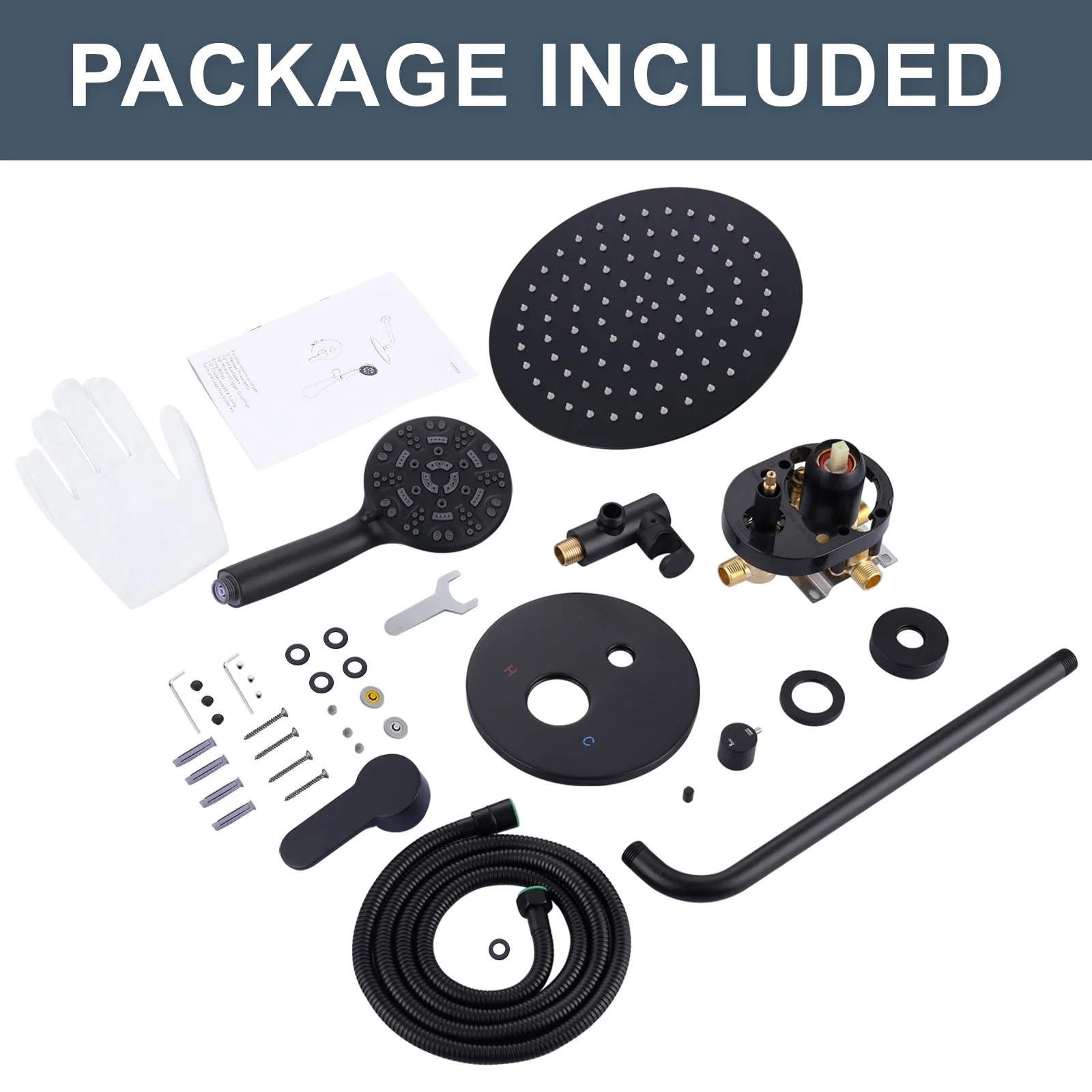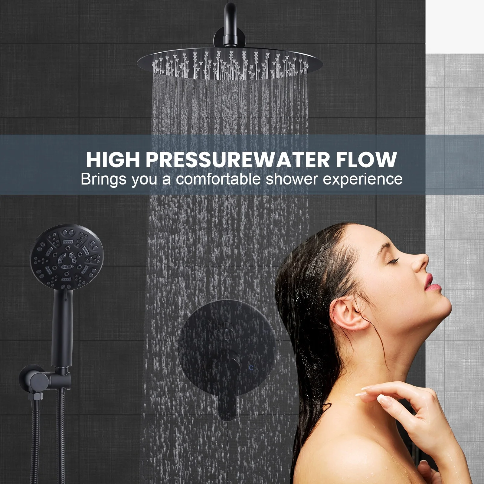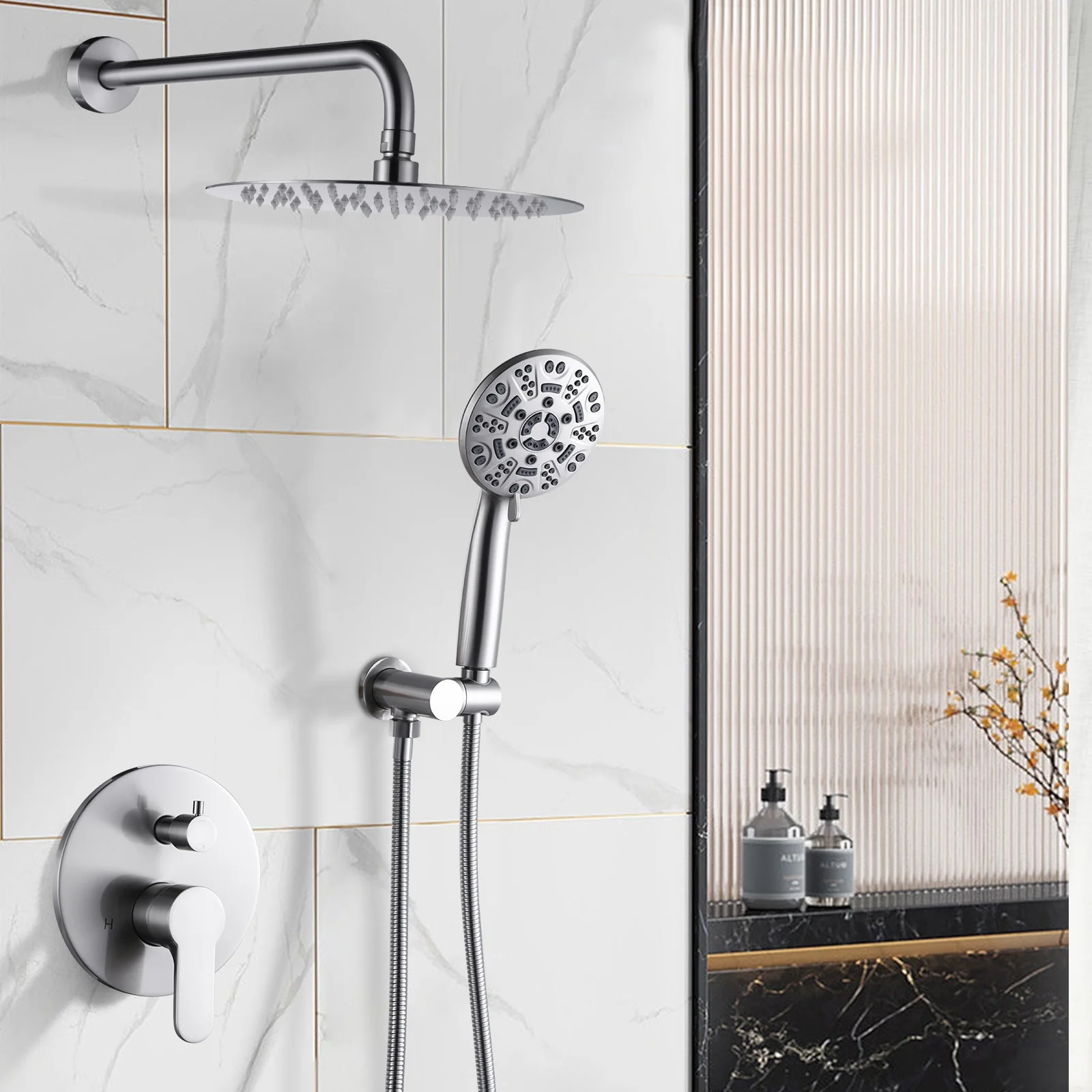 This shower set includes a fixed showerhead (10 inches or 12 inches) and a 4.5-inch handheld shower with multiple spray modes. It features a wall-mounted installation, allowing the water to cascade down elegantly, enhancing the luxurious feel of your shower experience.