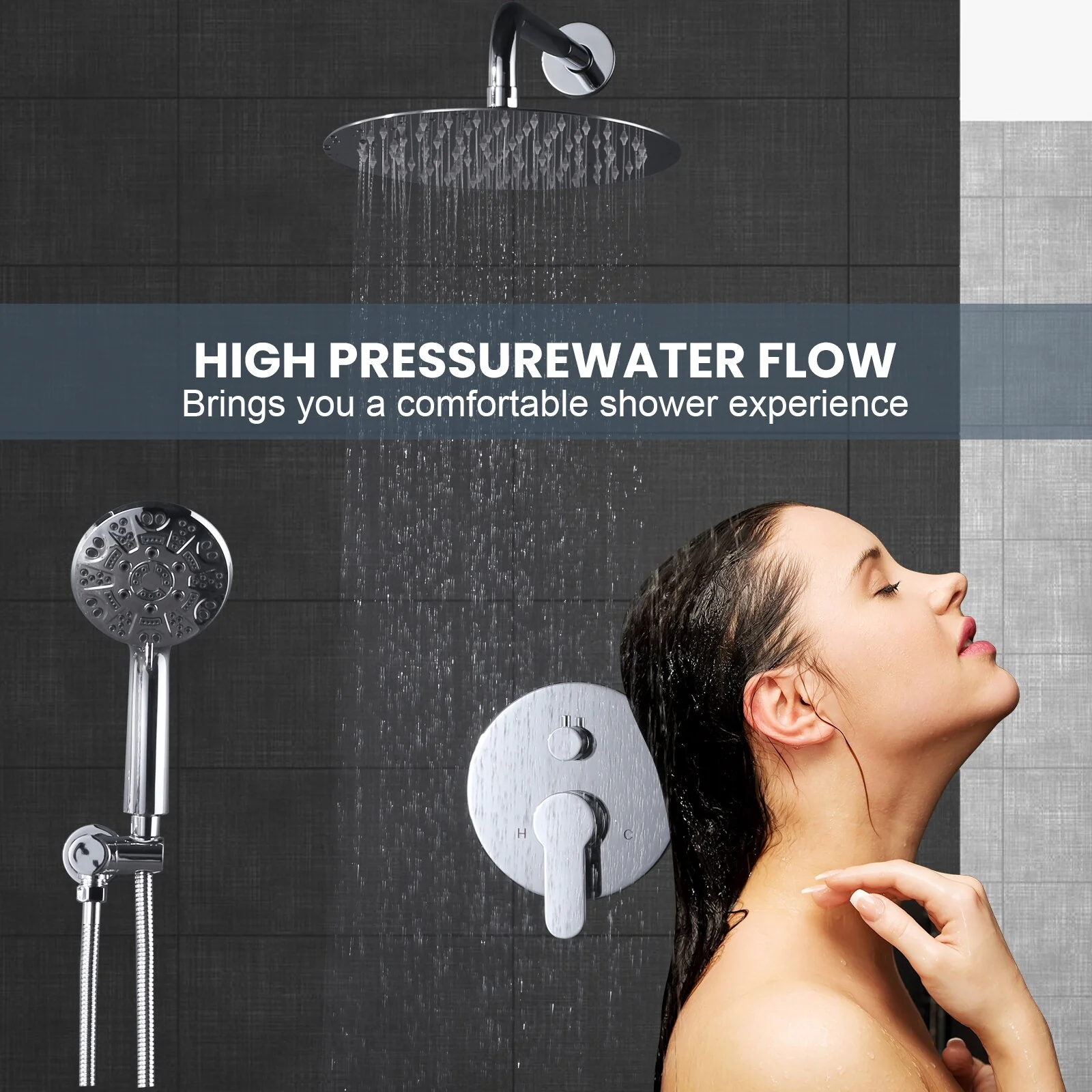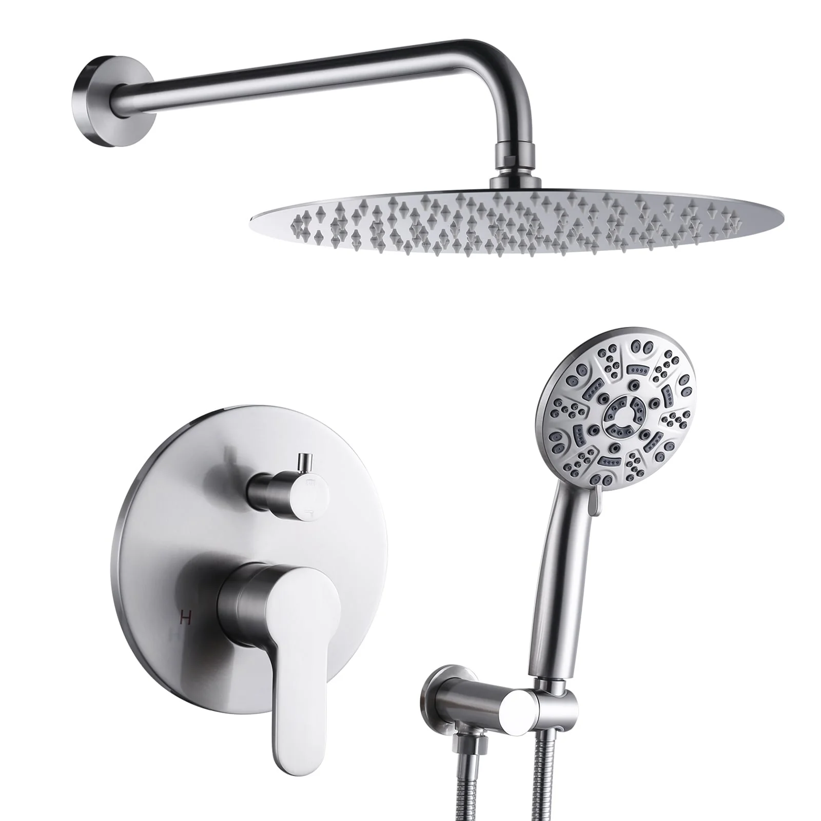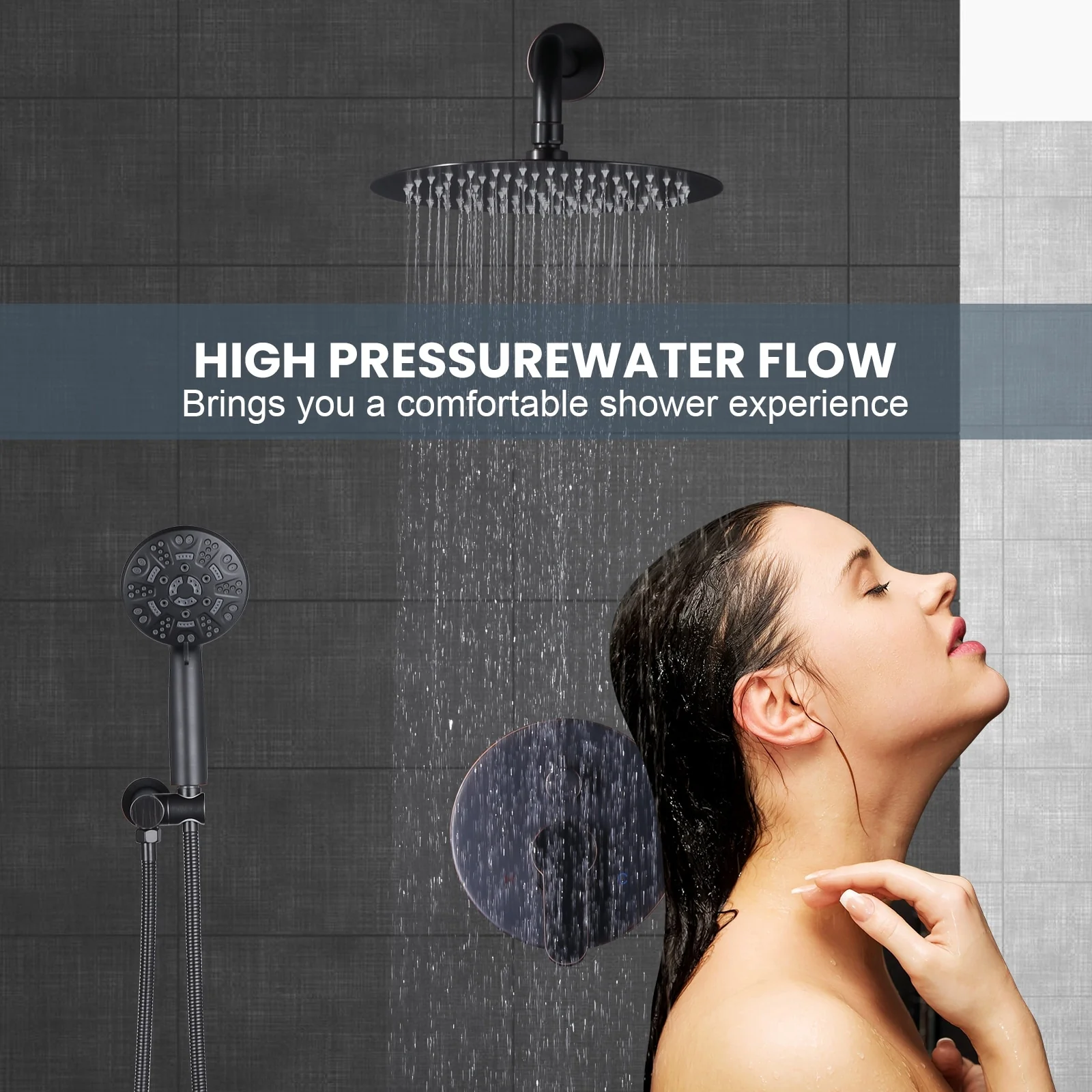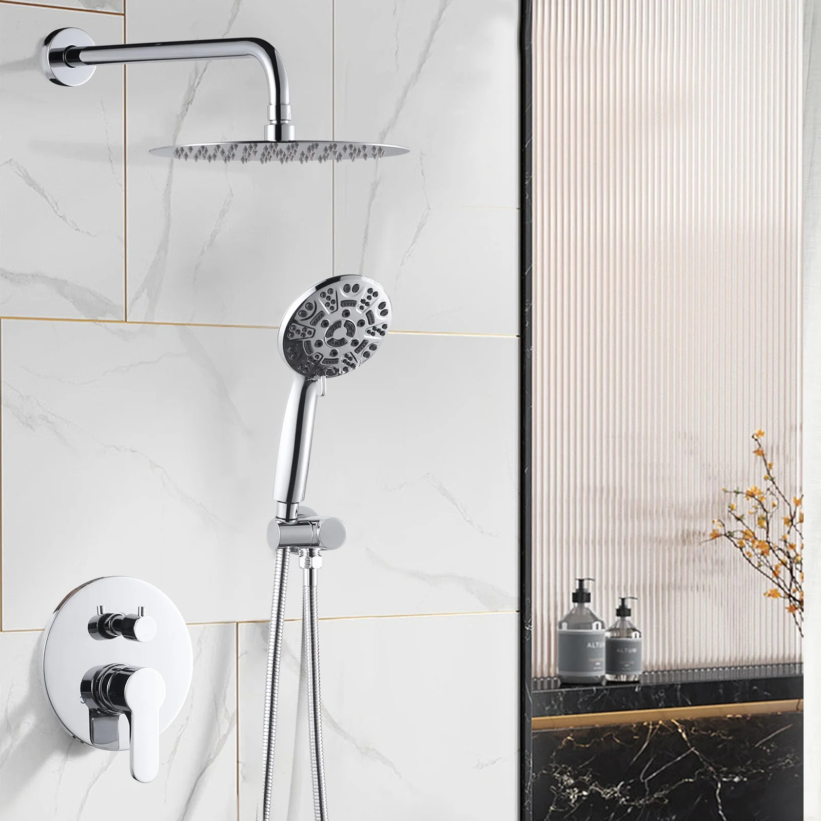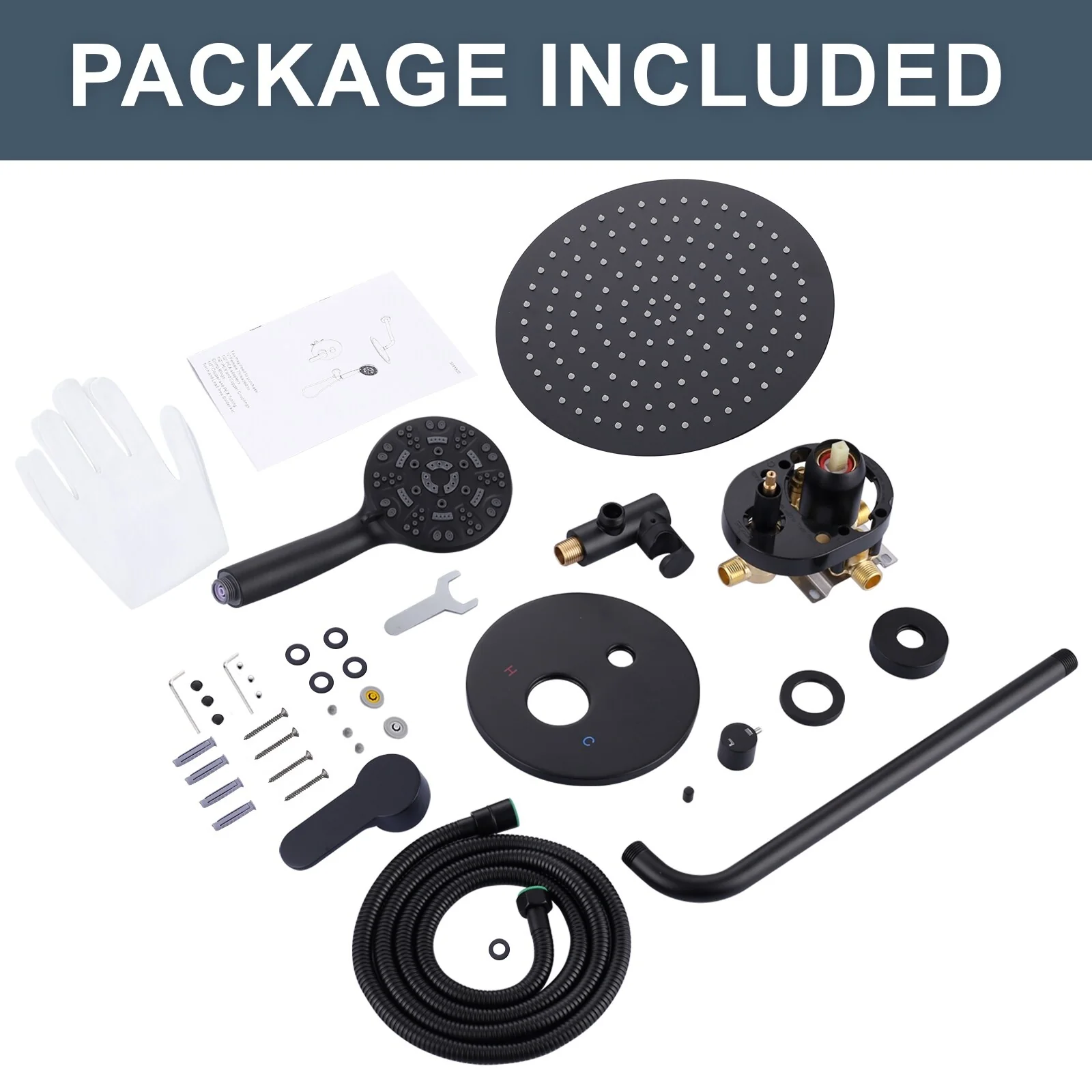 This shower set includes a fixed showerhead (10 inches or 12 inches) and a 4.5-inch handheld shower with multiple spray modes. It features a wall-mounted installation, allowing the water to cascade down elegantly, enhancing the luxurious feel of your shower experience.