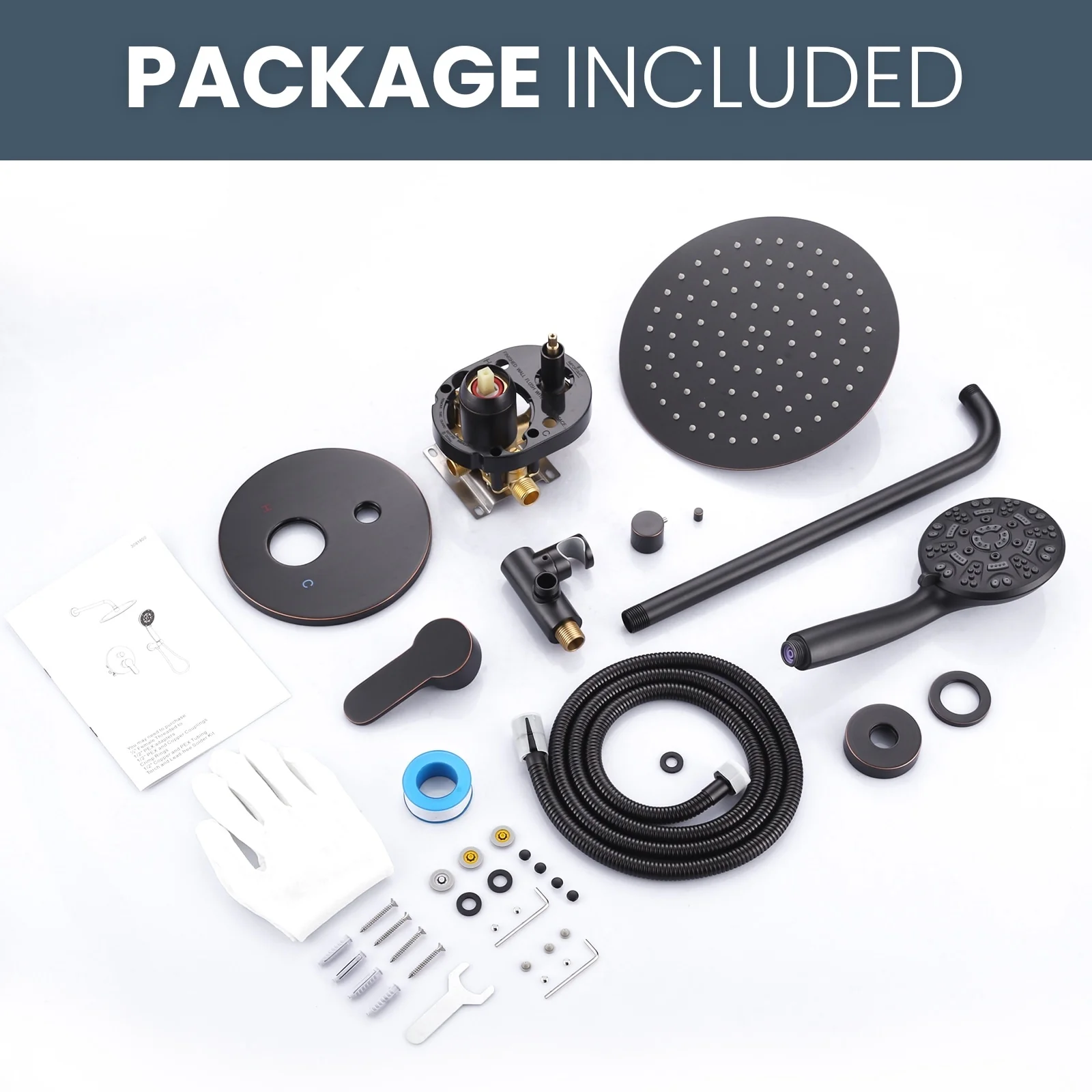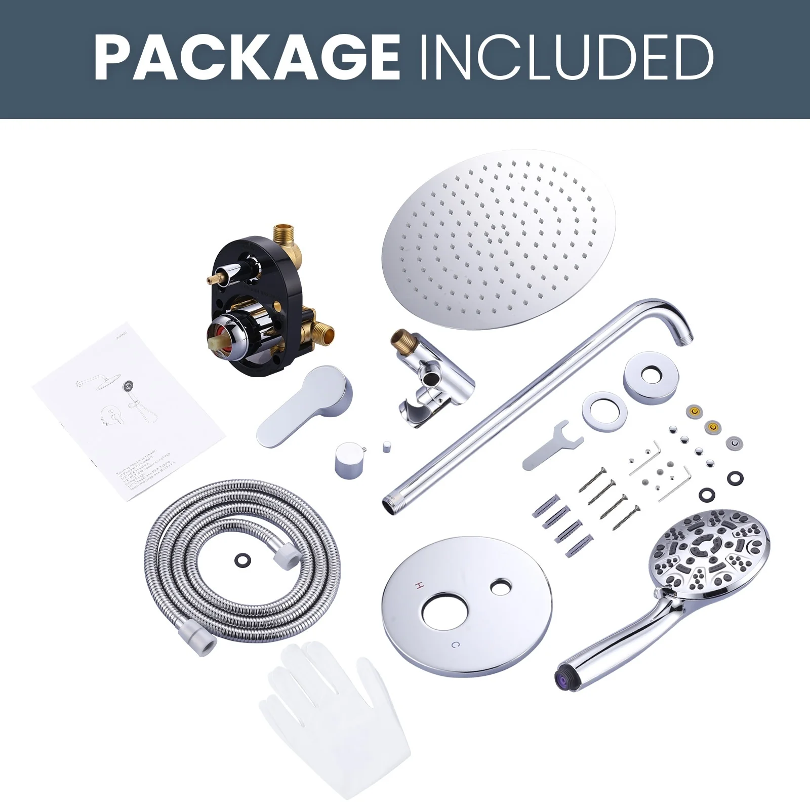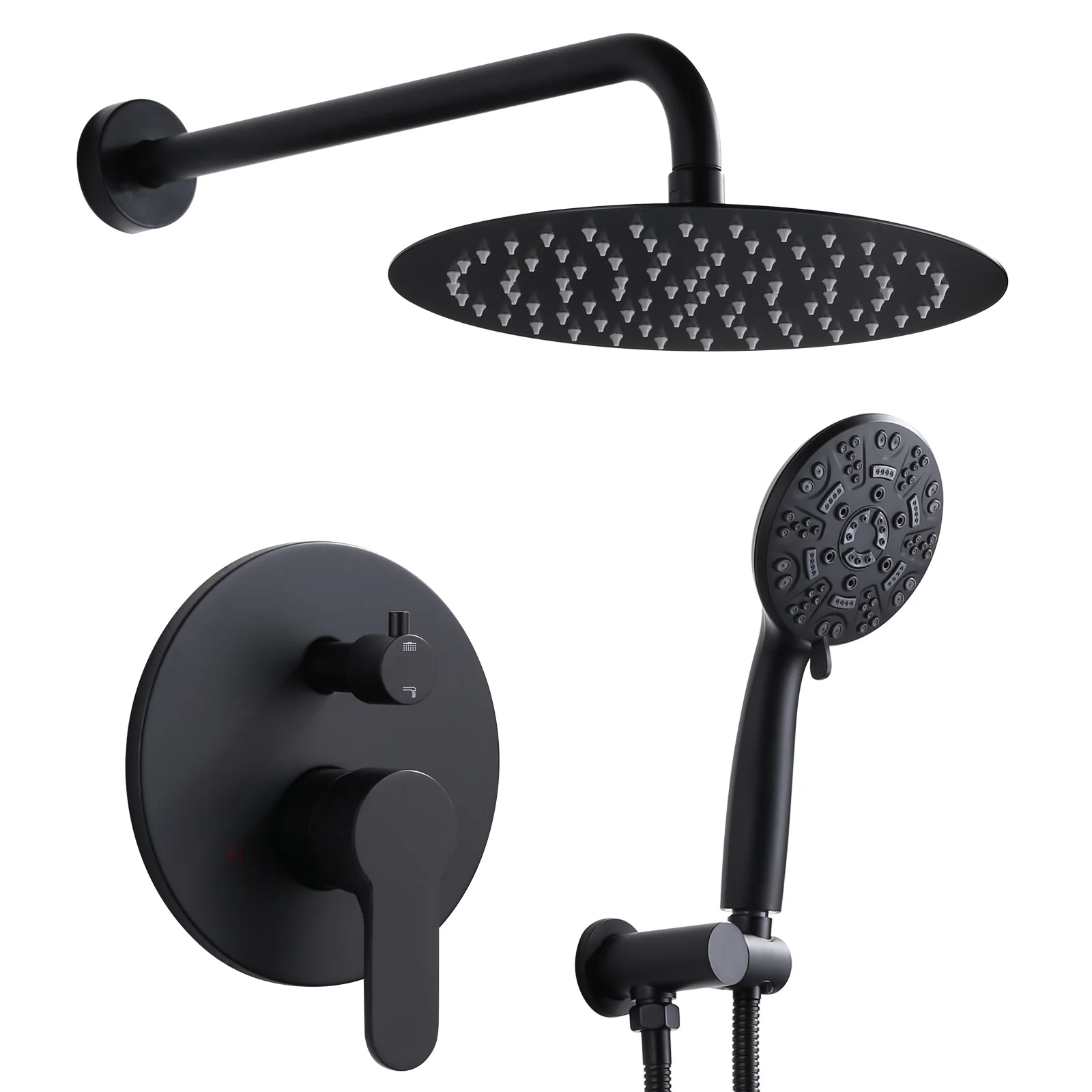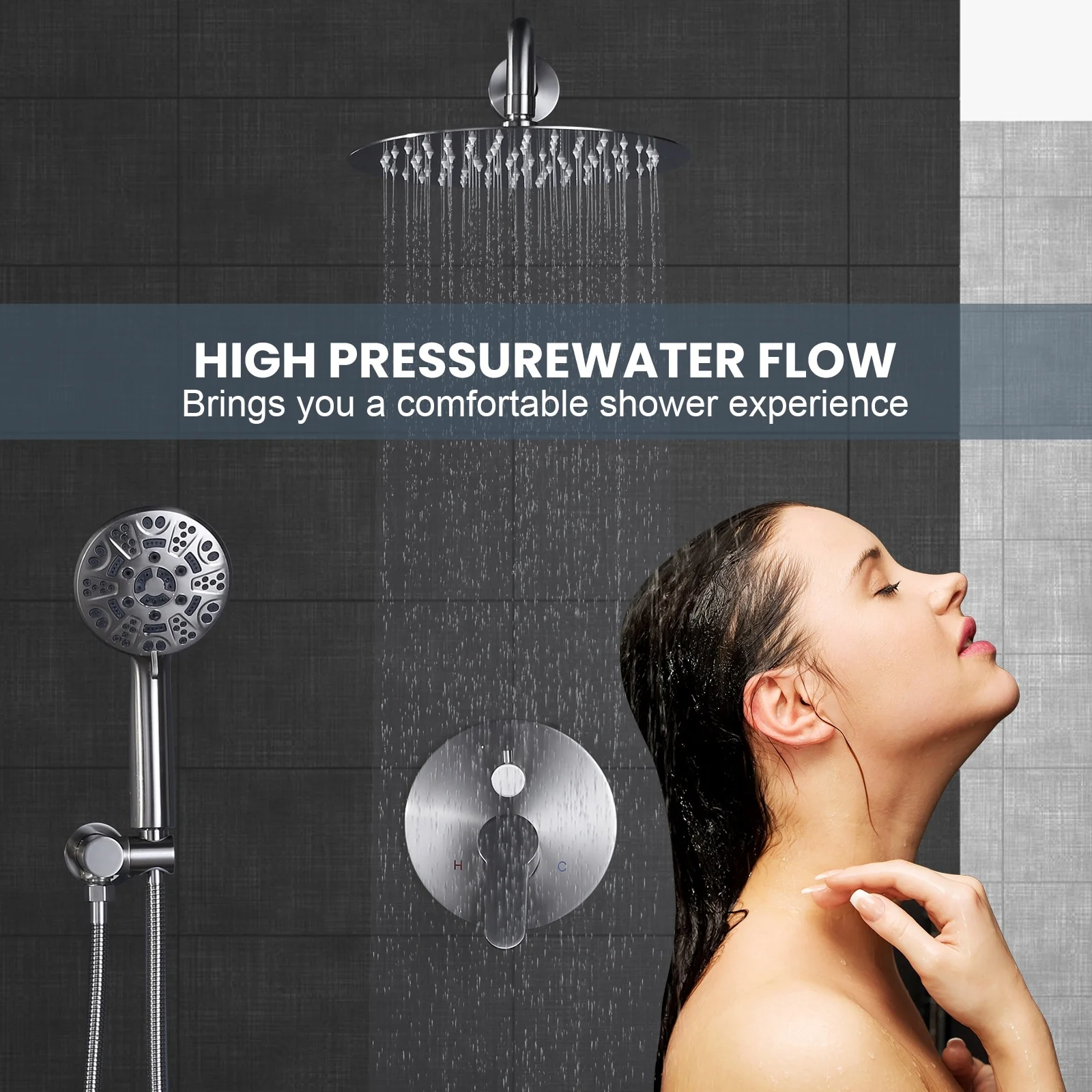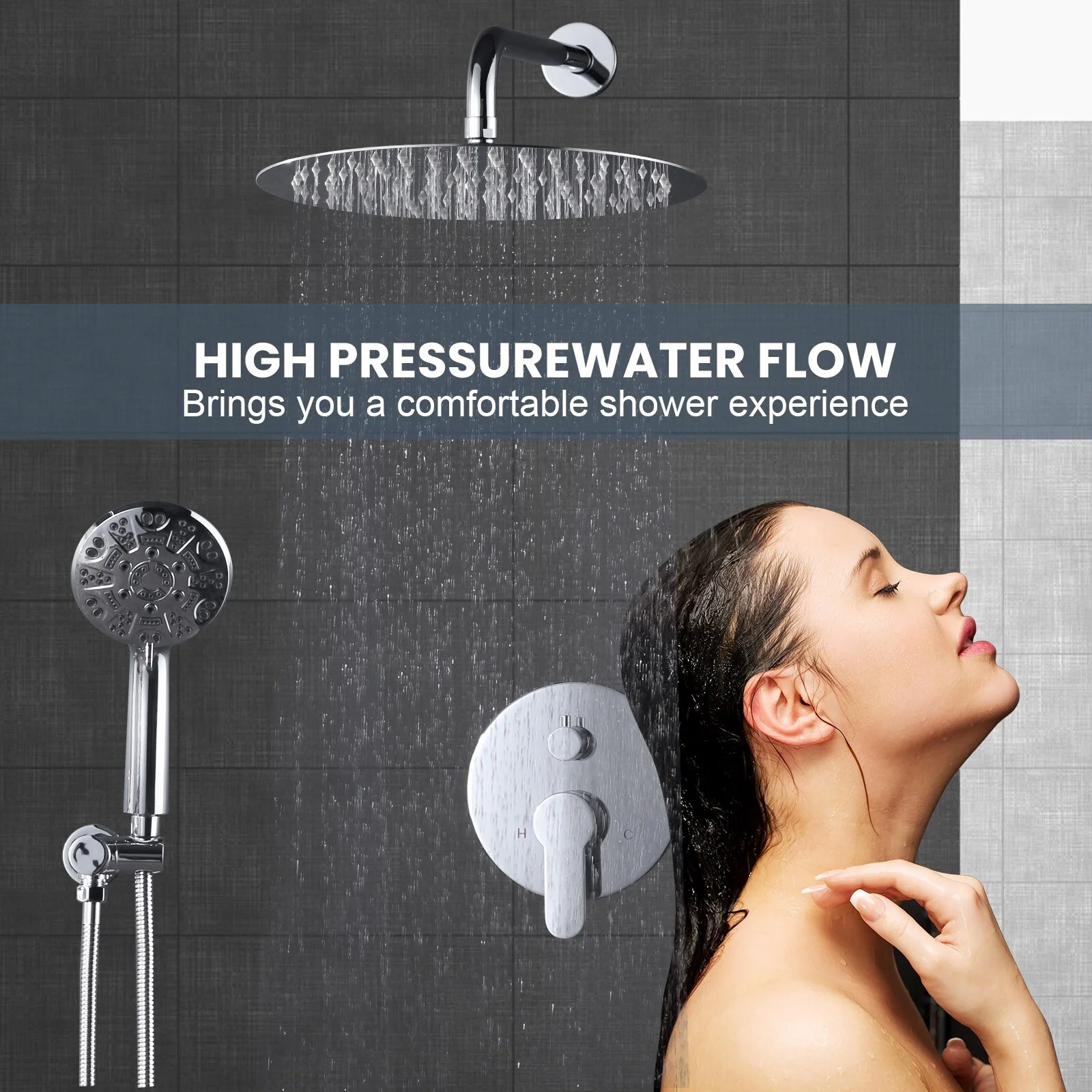 This shower set includes a fixed showerhead (10 inches or 12 inches) and a 4.5-inch handheld shower with multiple spray modes. It features a wall-mounted installation, allowing the water to cascade down elegantly, enhancing the luxurious feel of your shower experience.