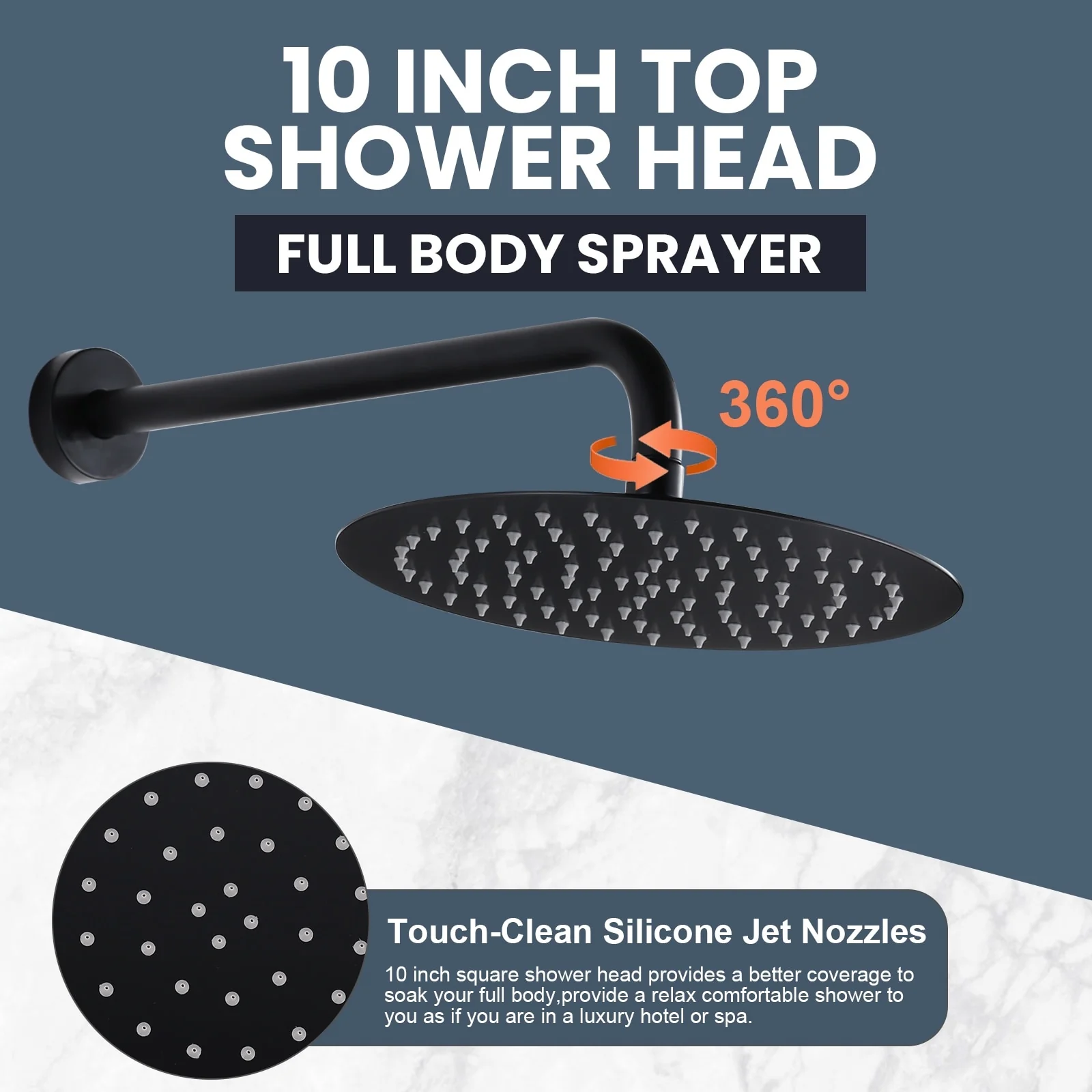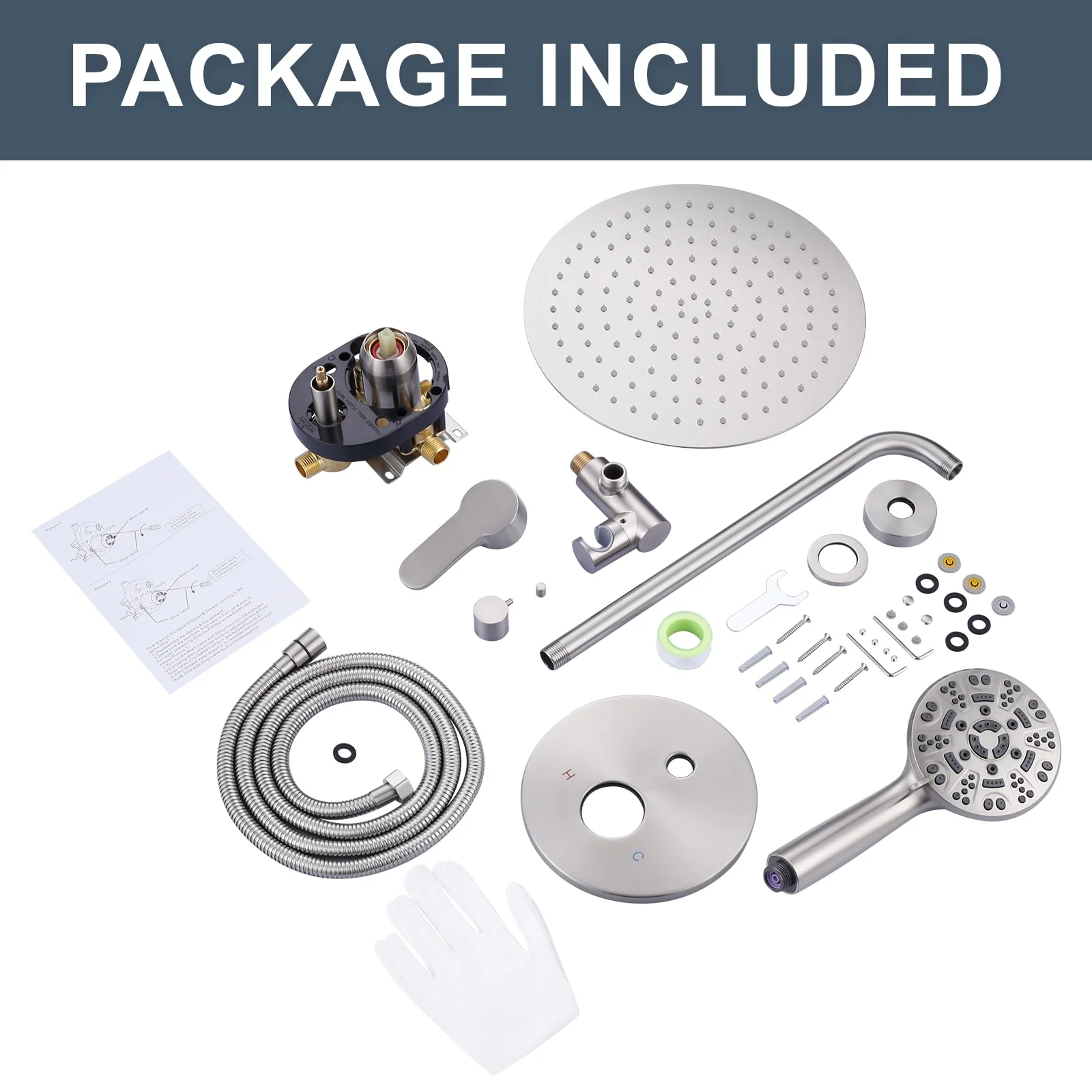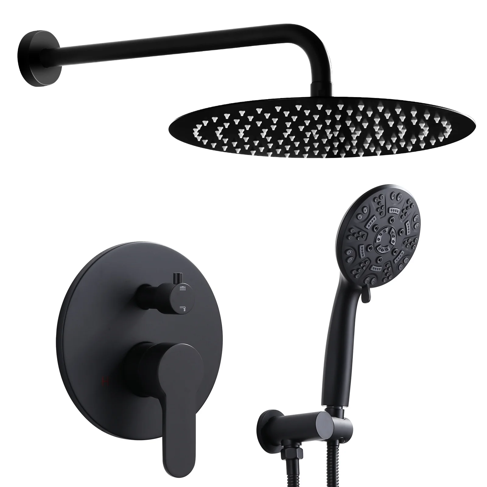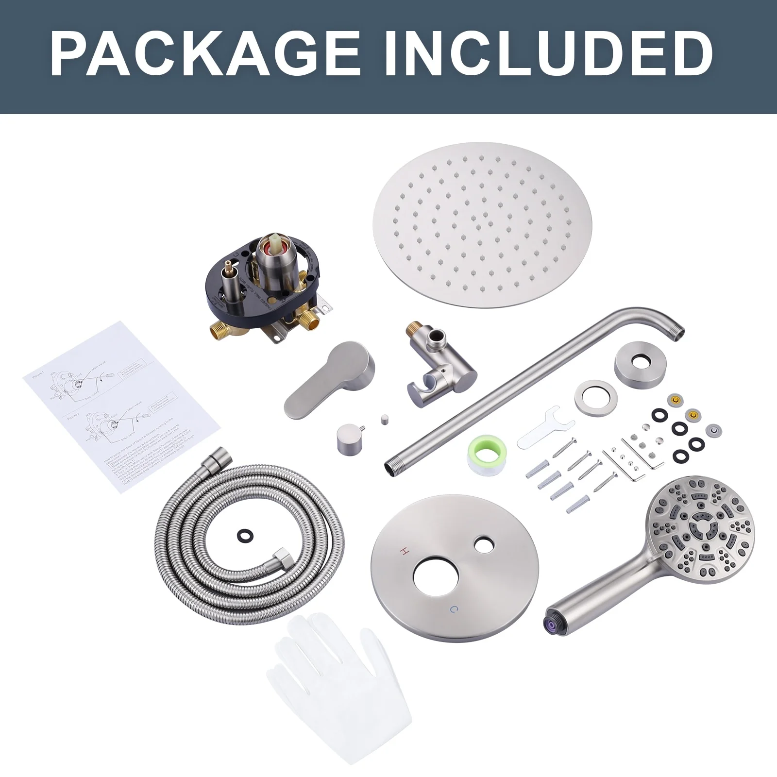 This shower set includes a fixed showerhead (10 inches or 12 inches) and a 4.5-inch handheld shower with multiple spray modes. It features a wall-mounted installation, allowing the water to cascade down elegantly, enhancing the luxurious feel of your shower experience.