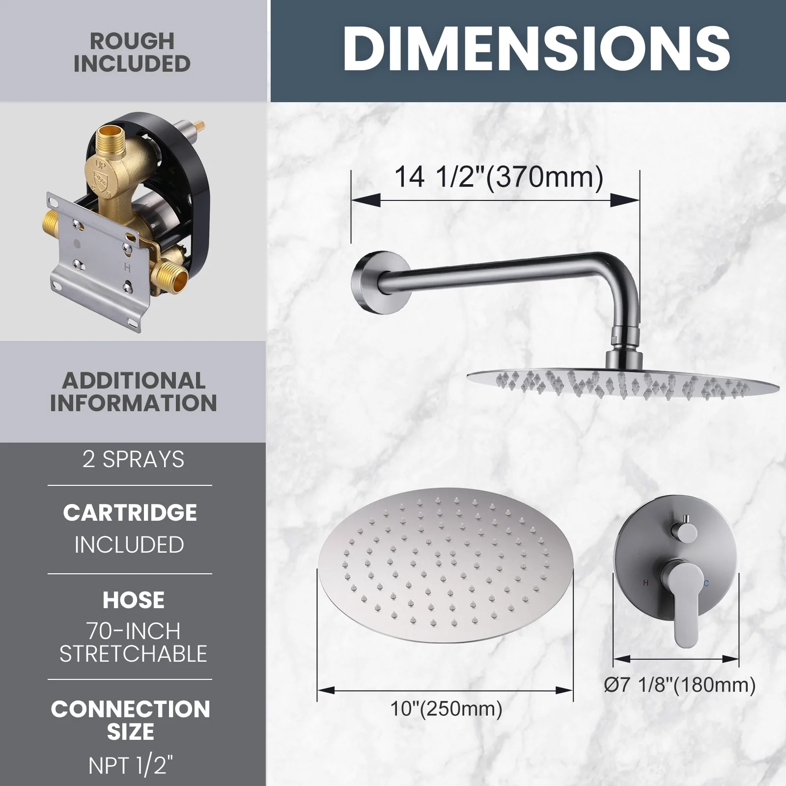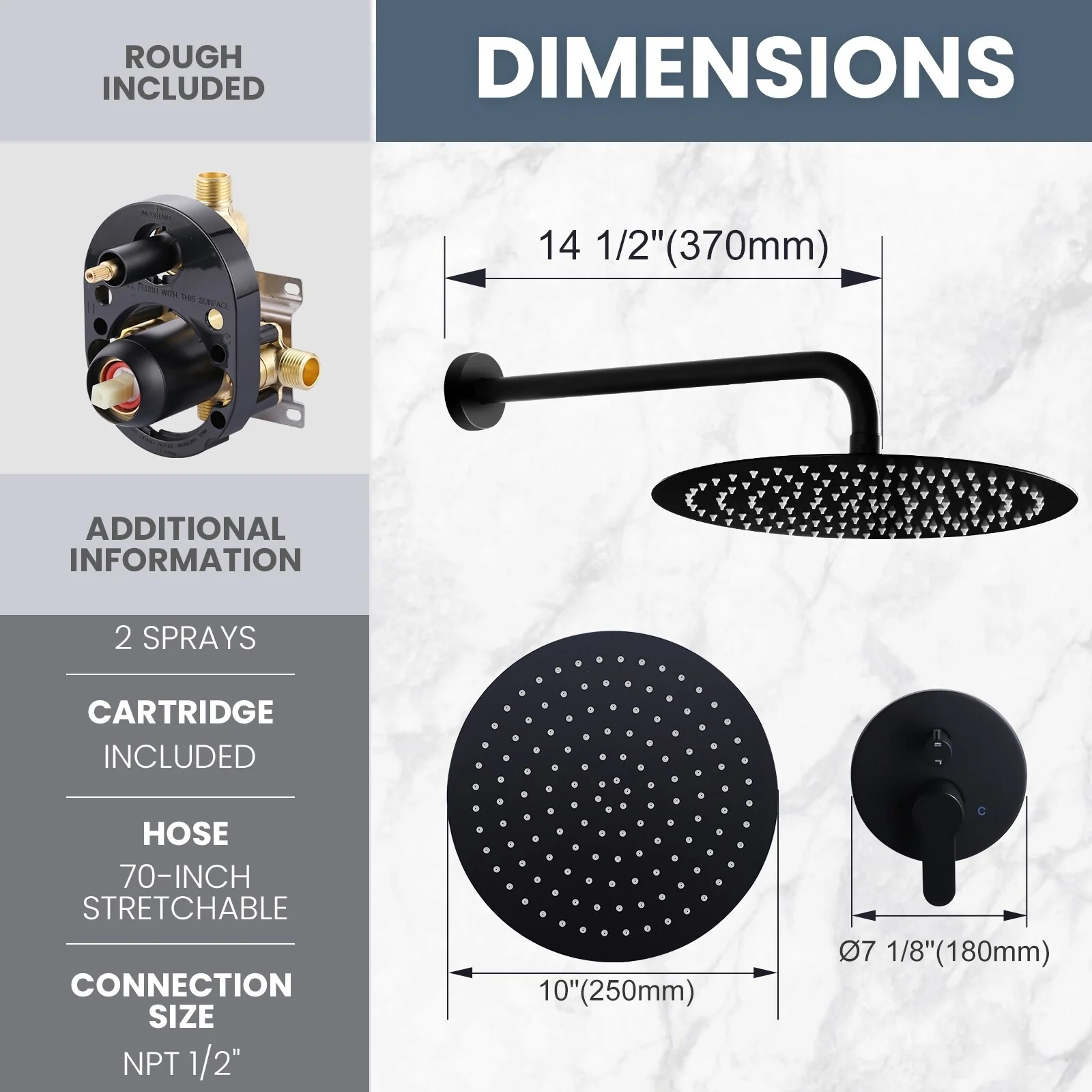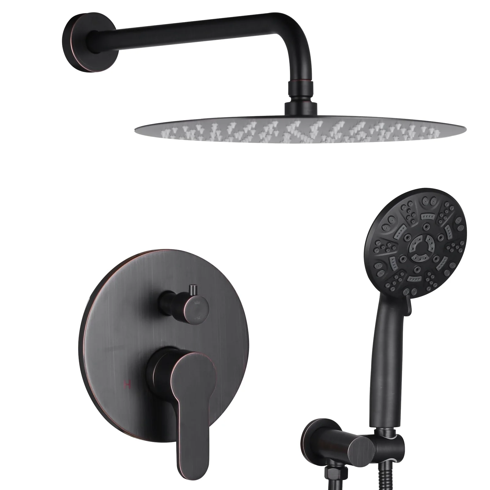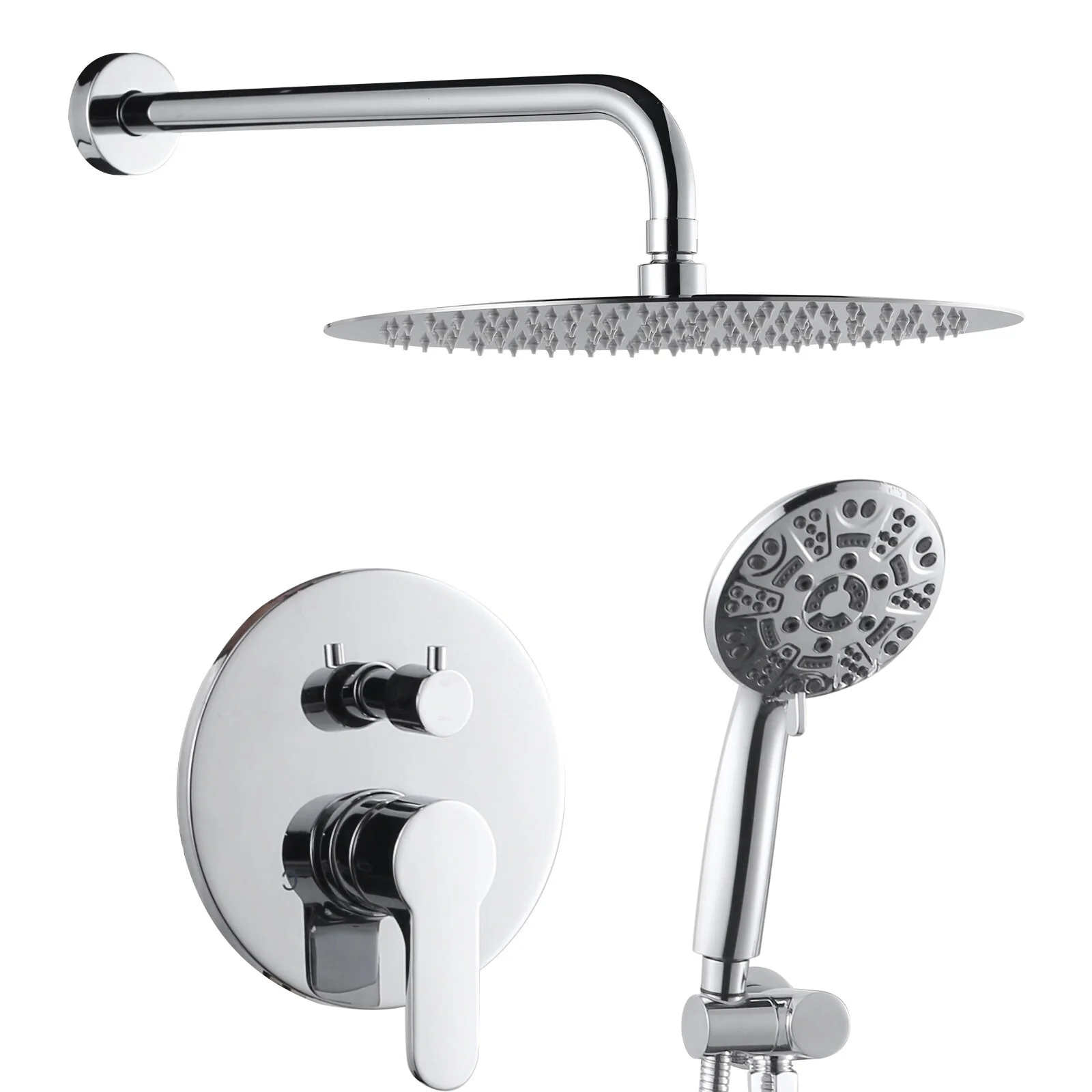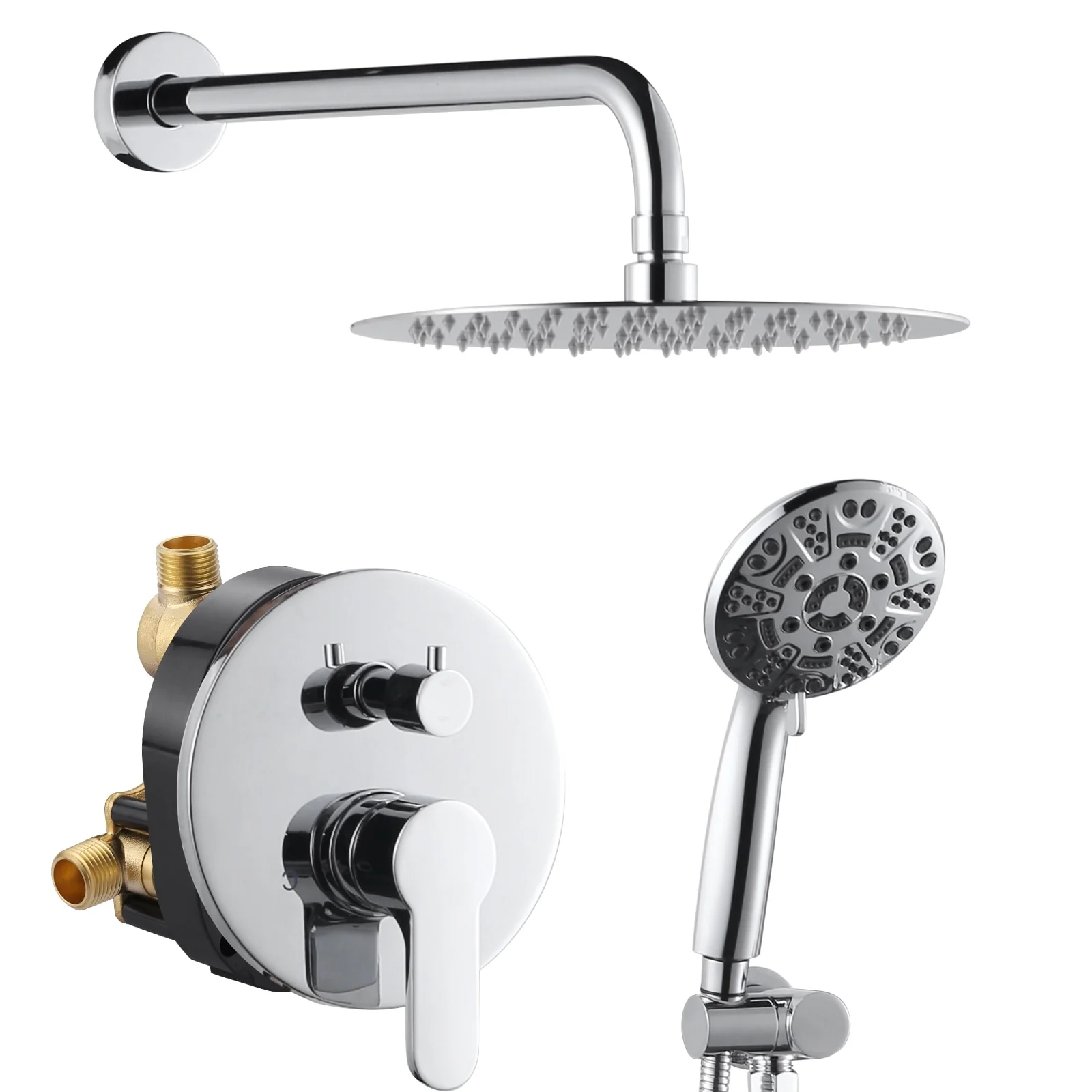 This shower set includes a fixed showerhead (10 inches or 12 inches) and a 4.5-inch handheld shower with multiple spray modes. It features a wall-mounted installation, allowing the water to cascade down elegantly, enhancing the luxurious feel of your shower experience.