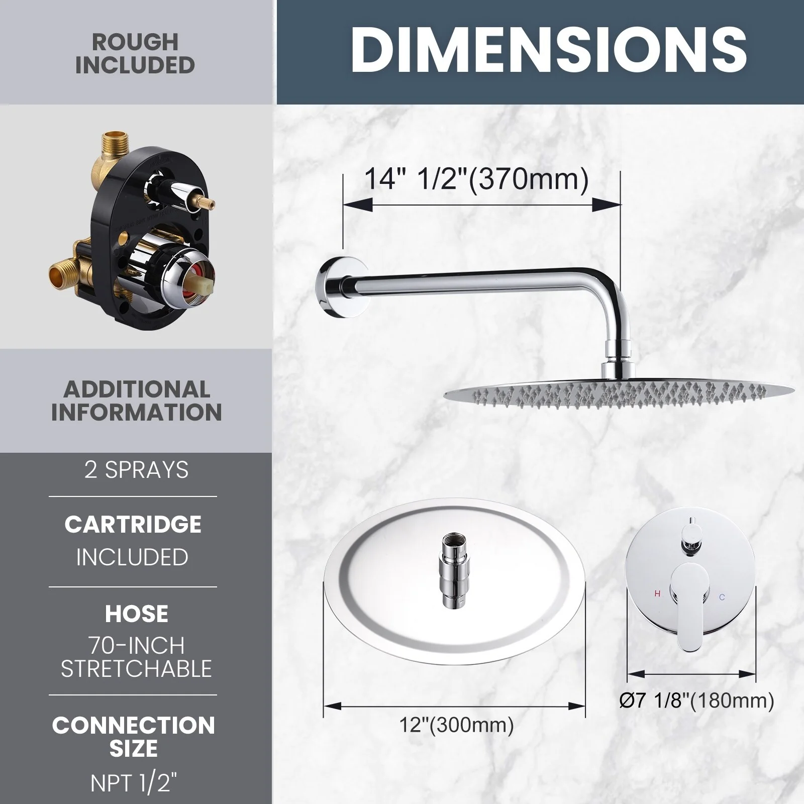 - Shower face, available in 10 or 12 inches, ensures the water almost covers the entire body, providing extreme comfort