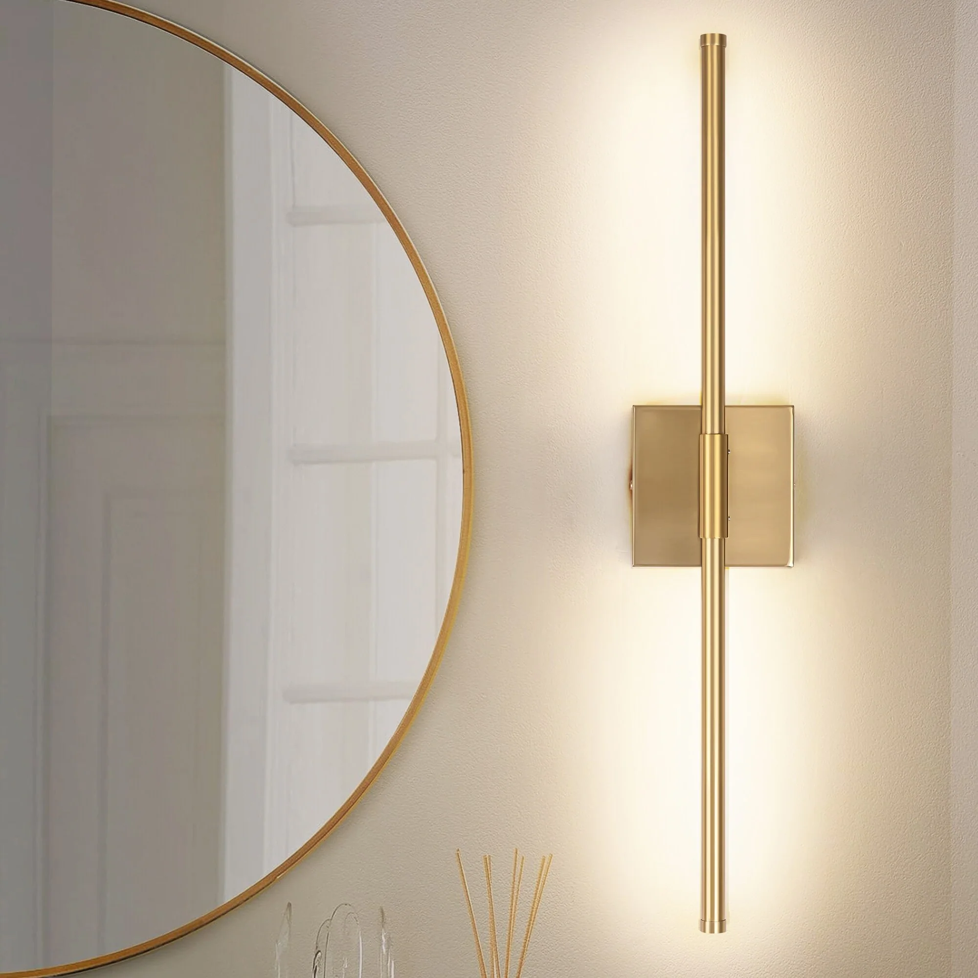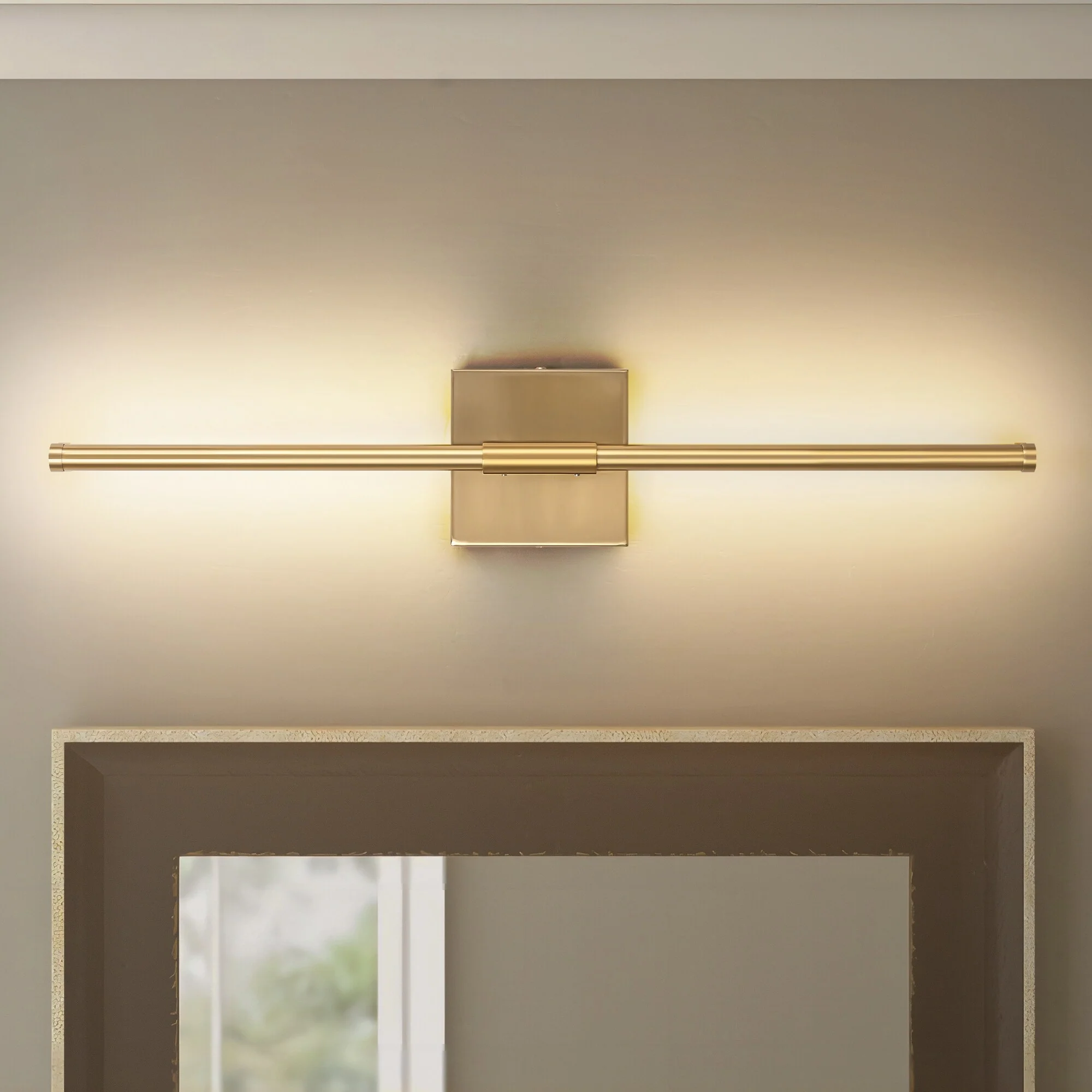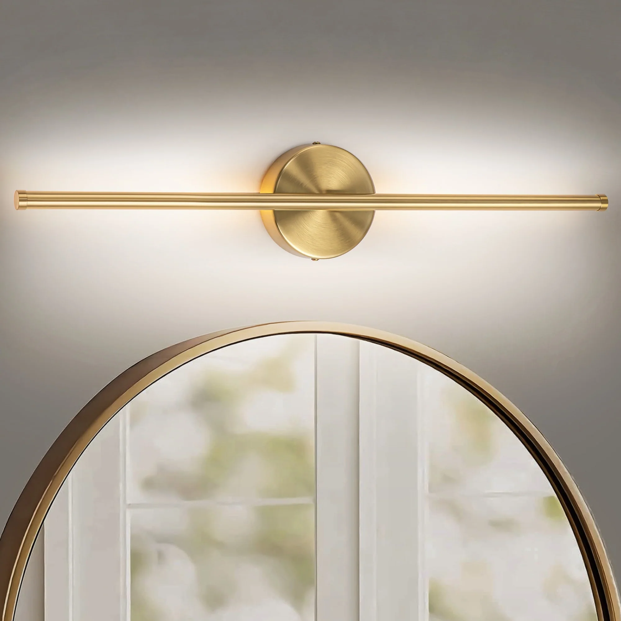 The minimalist but creative high-end design makes this integrated LED wall light the best choice for your bathroom area and mirror. A clean silhouetting shows sophisticated minimalism which brings chic transitional into your space. The gold/black/nickel finish makes it look luxurious and elegant, complementing with warm light to create a cozy and romantic vibe. The linear LED vanity light can installed vertically or horizontally.