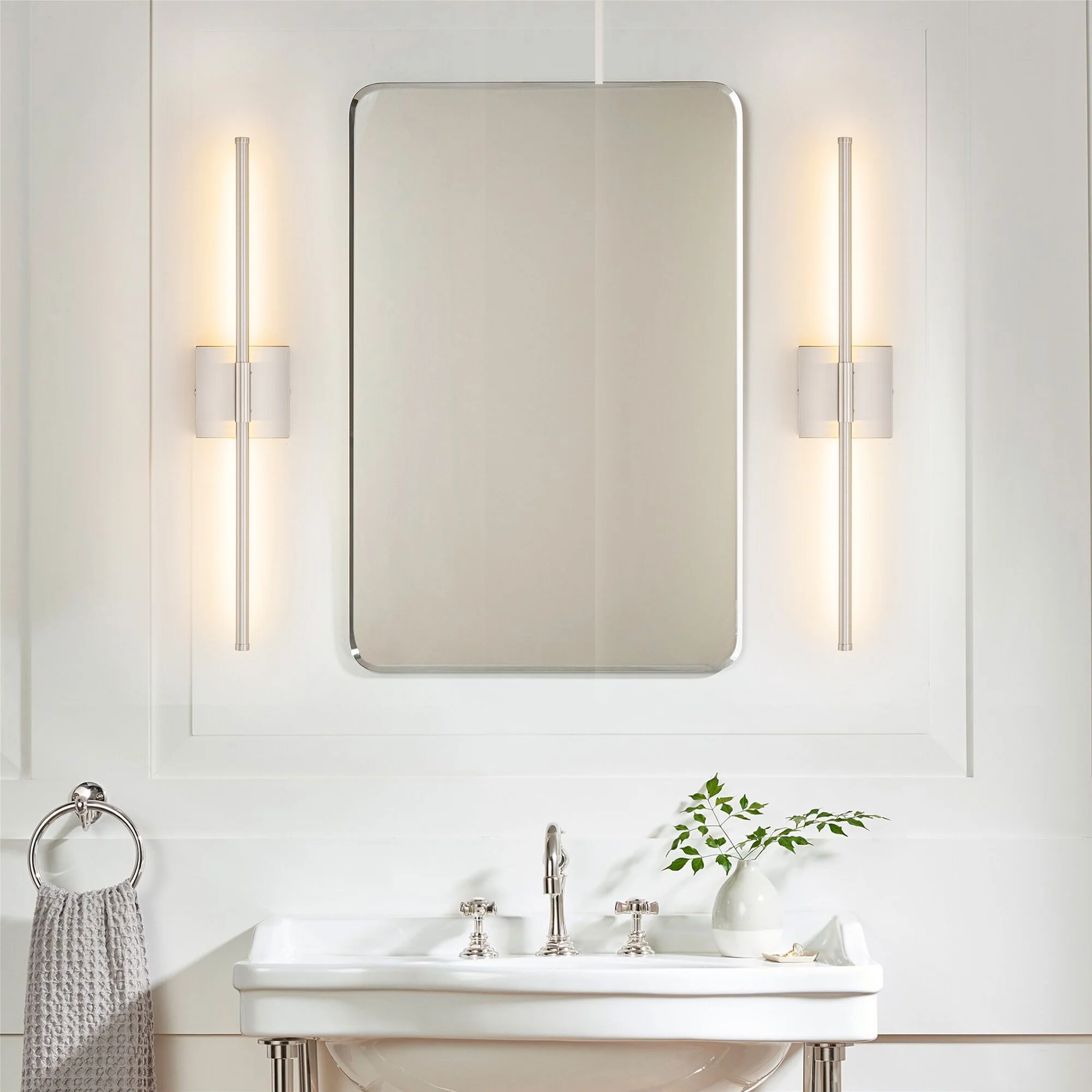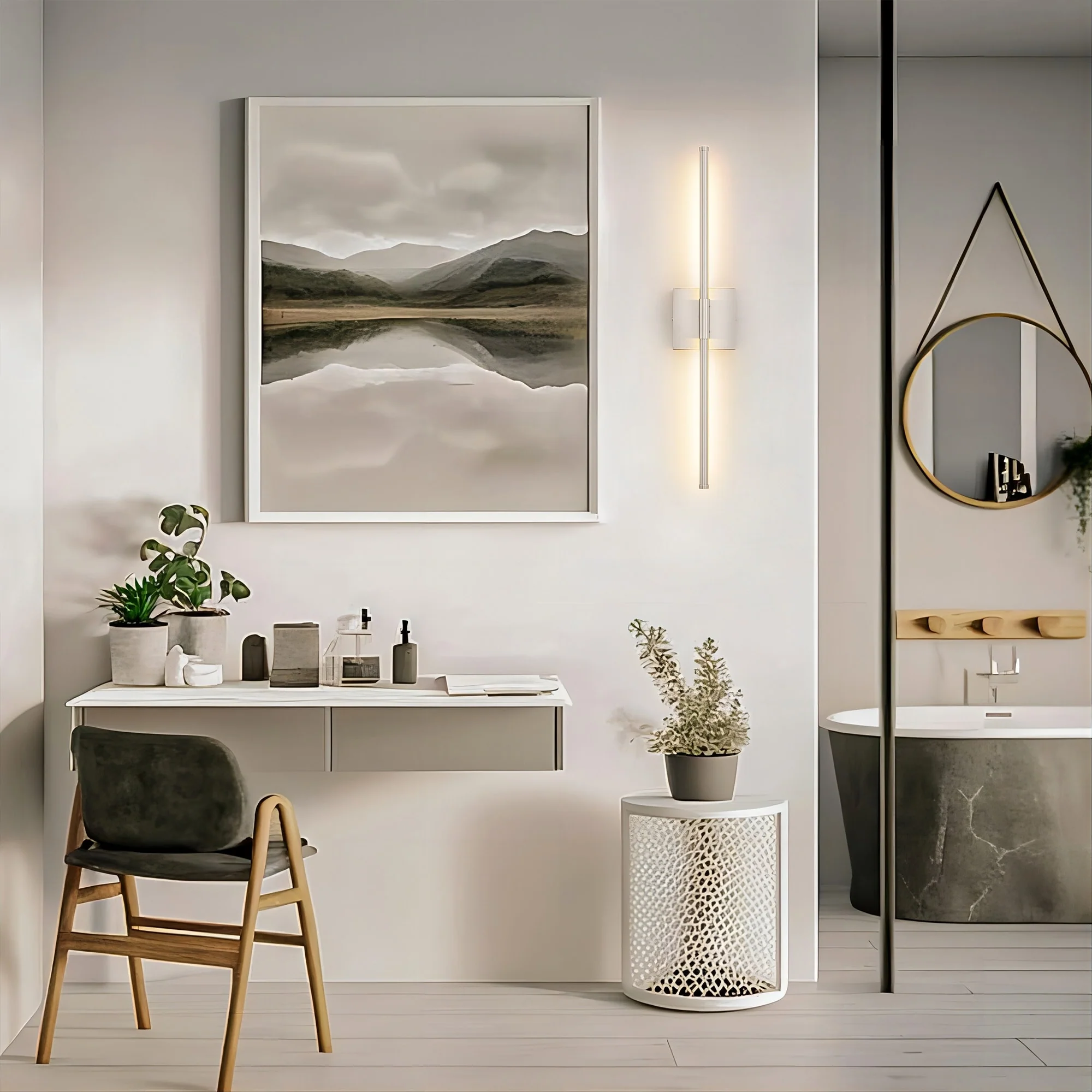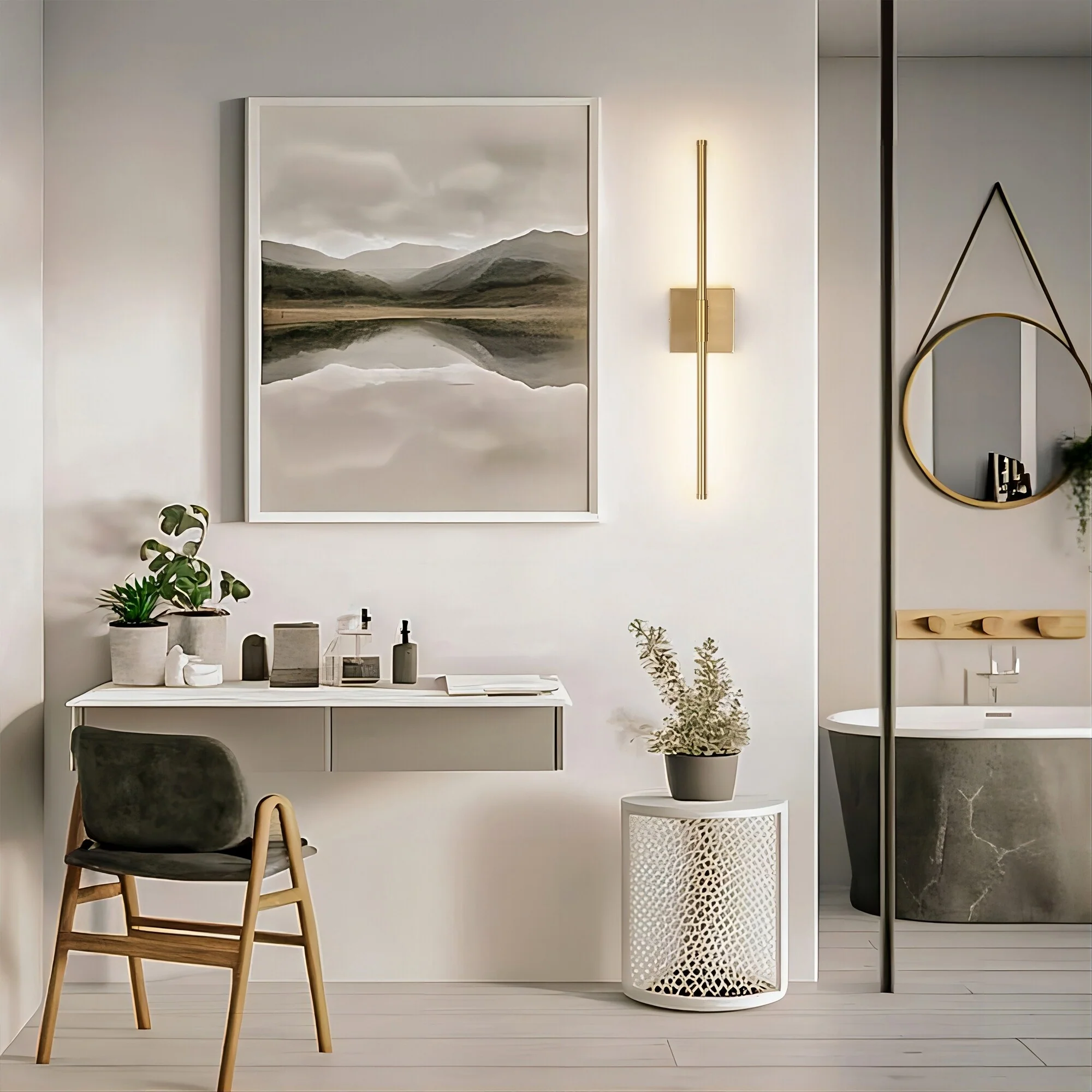 The minimalist but creative high-end design makes this integrated LED wall light the best choice for your bathroom area and mirror. A clean silhouetting shows sophisticated minimalism which brings chic transitional into your space. The gold/black/nickel finish makes it look luxurious and elegant, complementing with warm light to create a cozy and romantic vibe. The linear LED vanity light can installed vertically or horizontally.