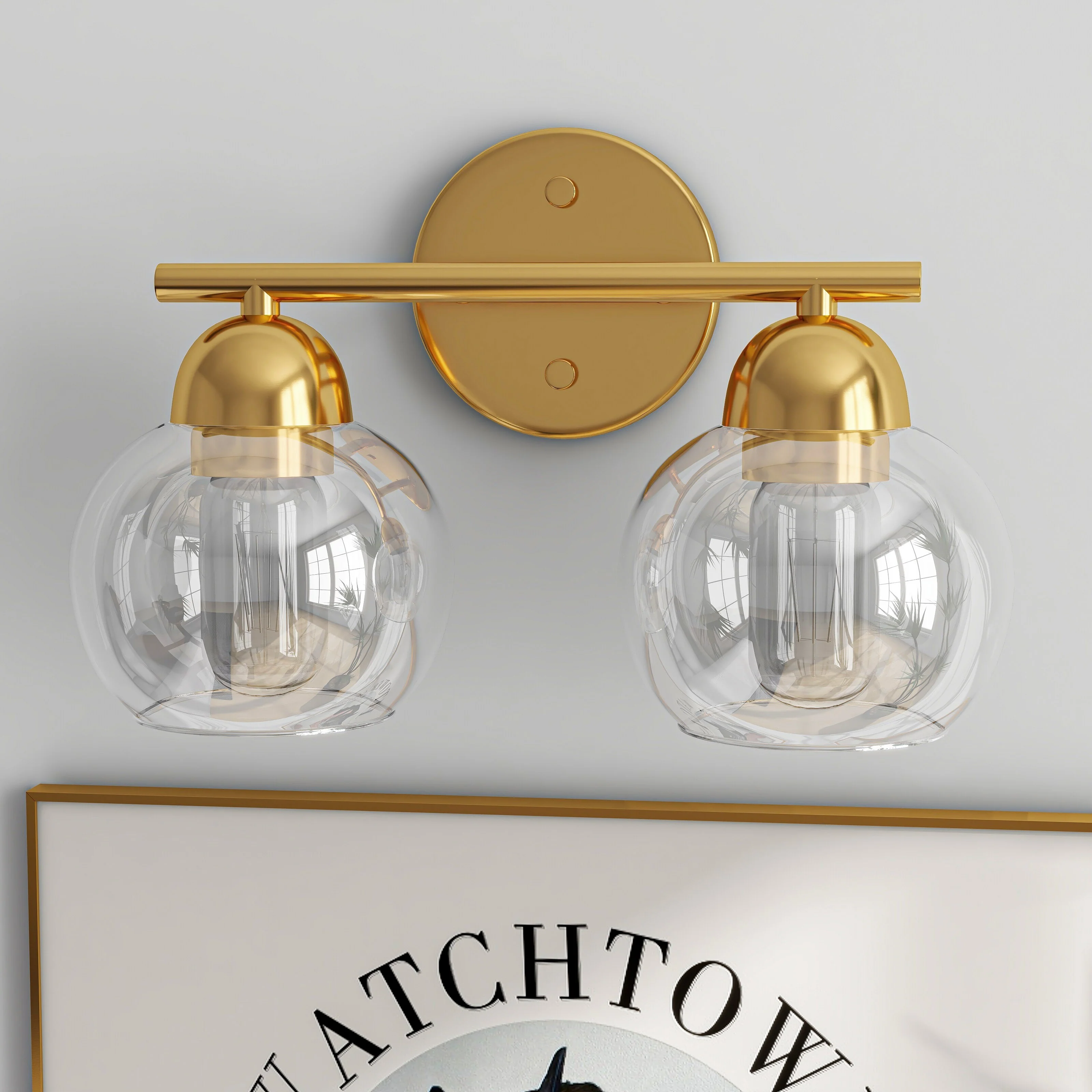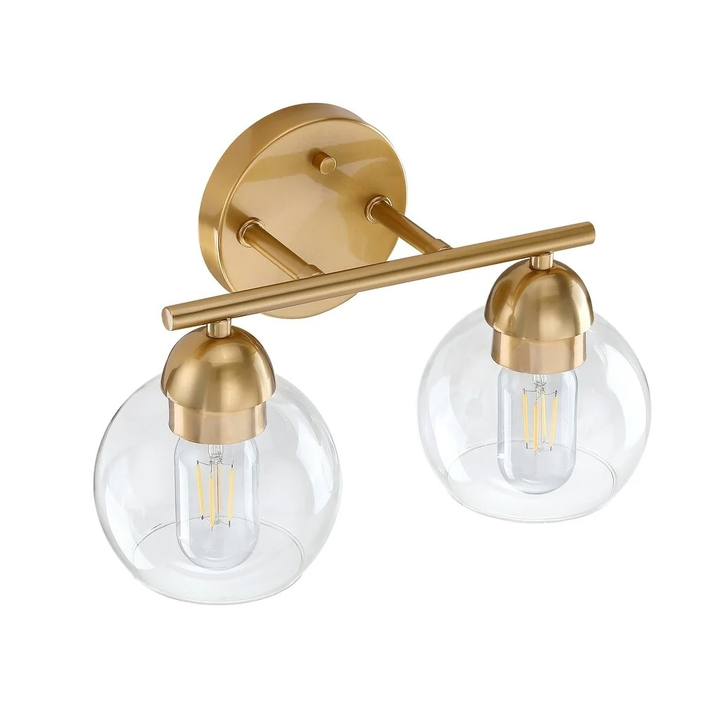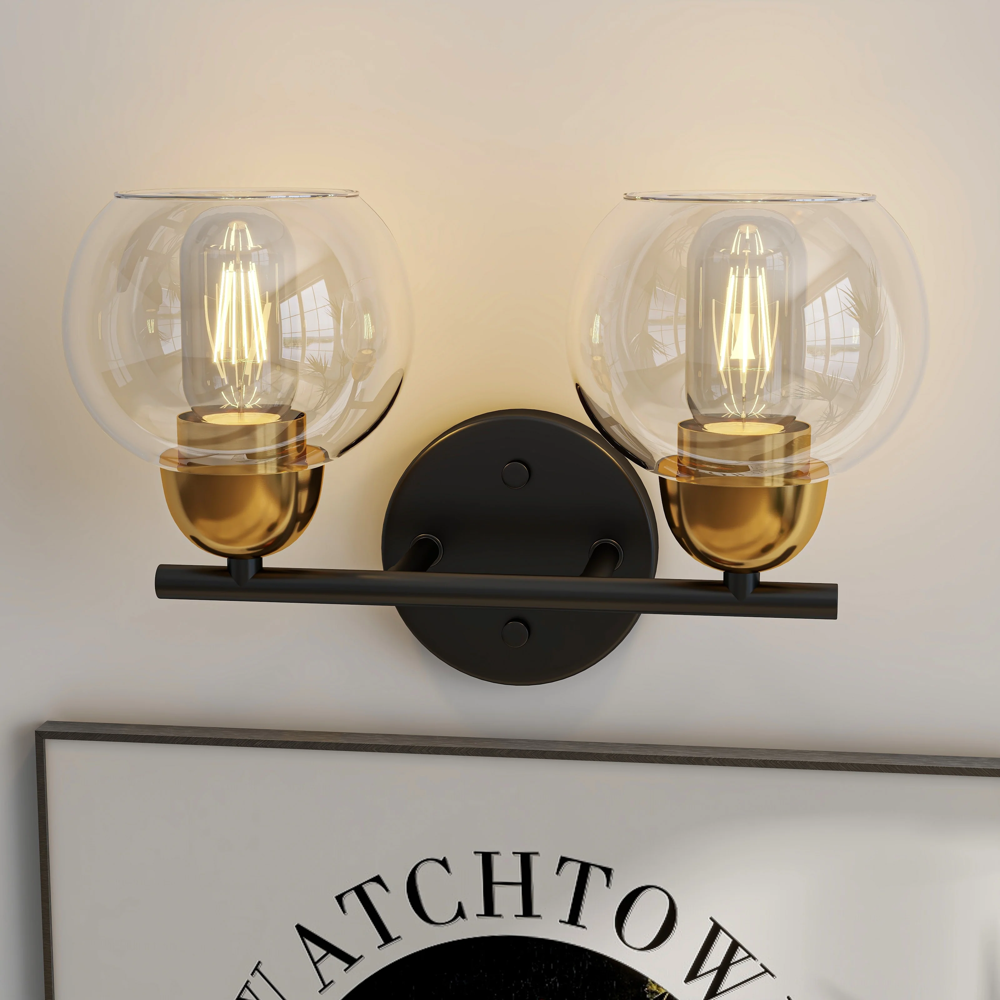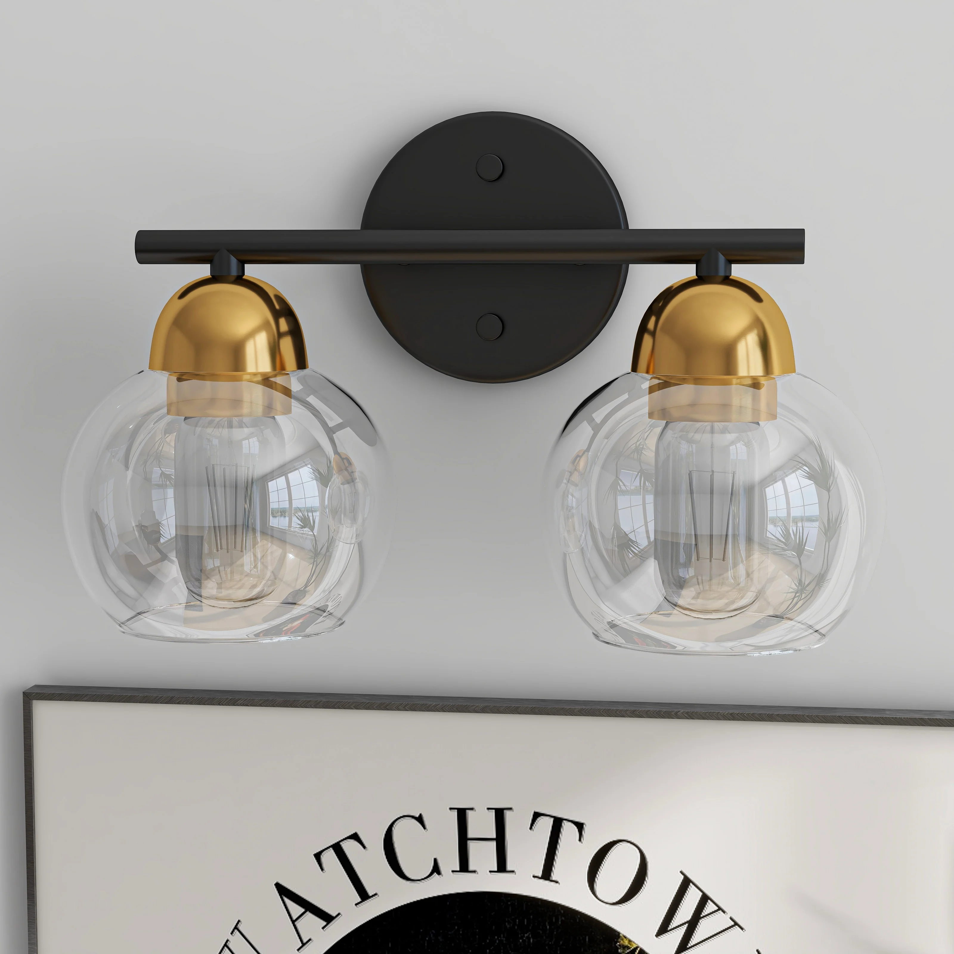 The Matte Black+Brass/Brass/Brushed Nickle/Matte Black finish lamp body head vanity lighting fixtures is made of high quality baking varnish metal,anti-rust and won't fade.Encased in attractive clear glass globe maximizes light output for an optimally bright ambience,and will add a modern chic element to your spaces with its gold hues. Combines modern and industrial style, the bathroom lights will absolutely bring an updated experience to your walls. The bathroom wall sconce lighting can be mounted in an up or down direction. Ideal as a living room sconces wall lighting, wall lights bedroom, porch light fixtures wall mount or bathroom vanity lights and so on.