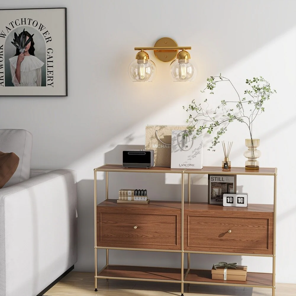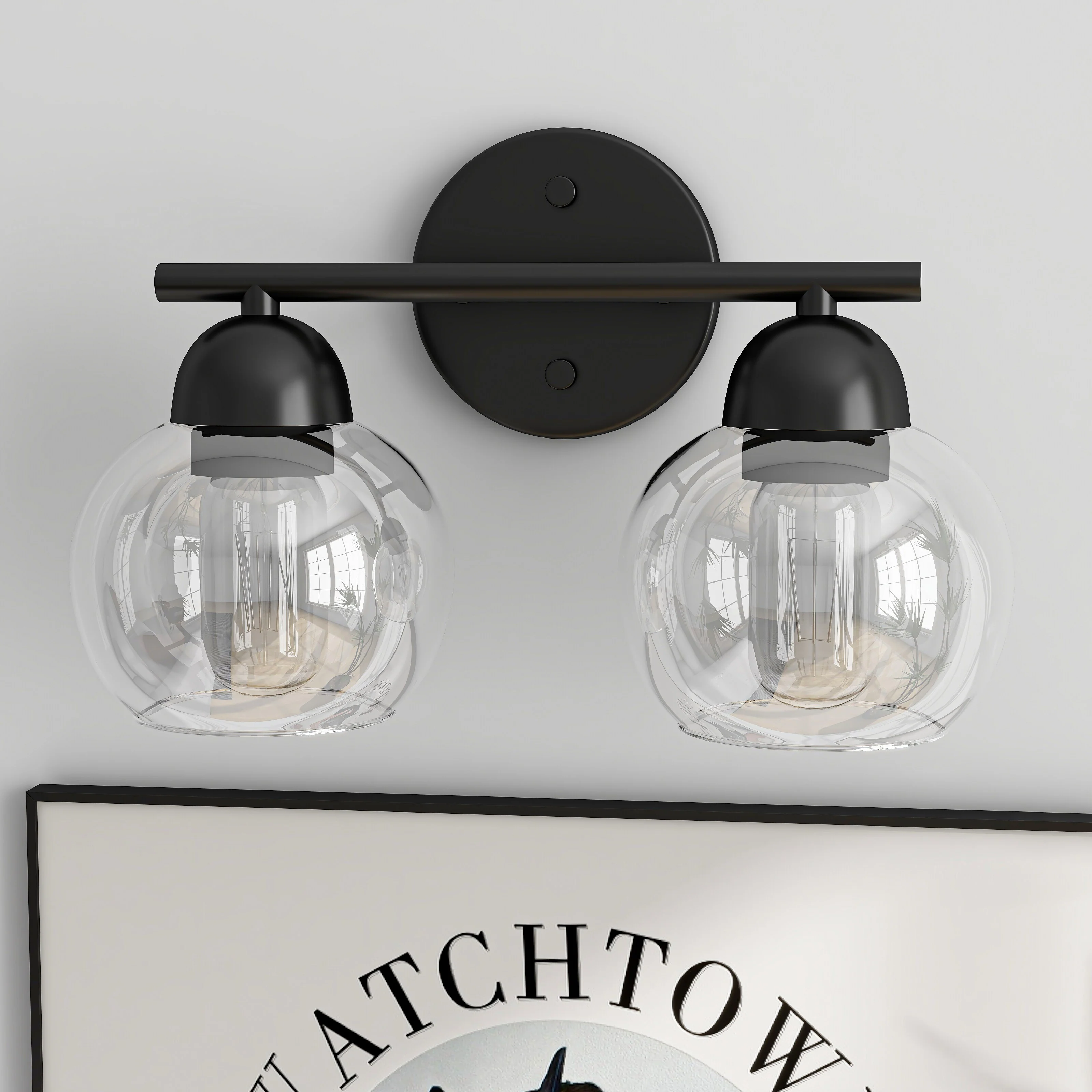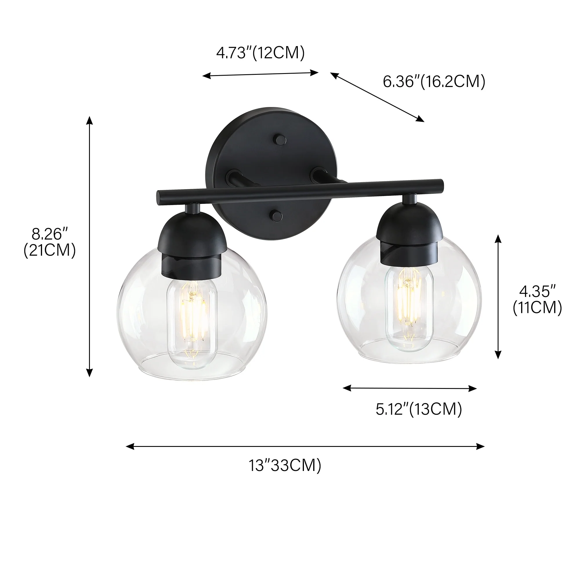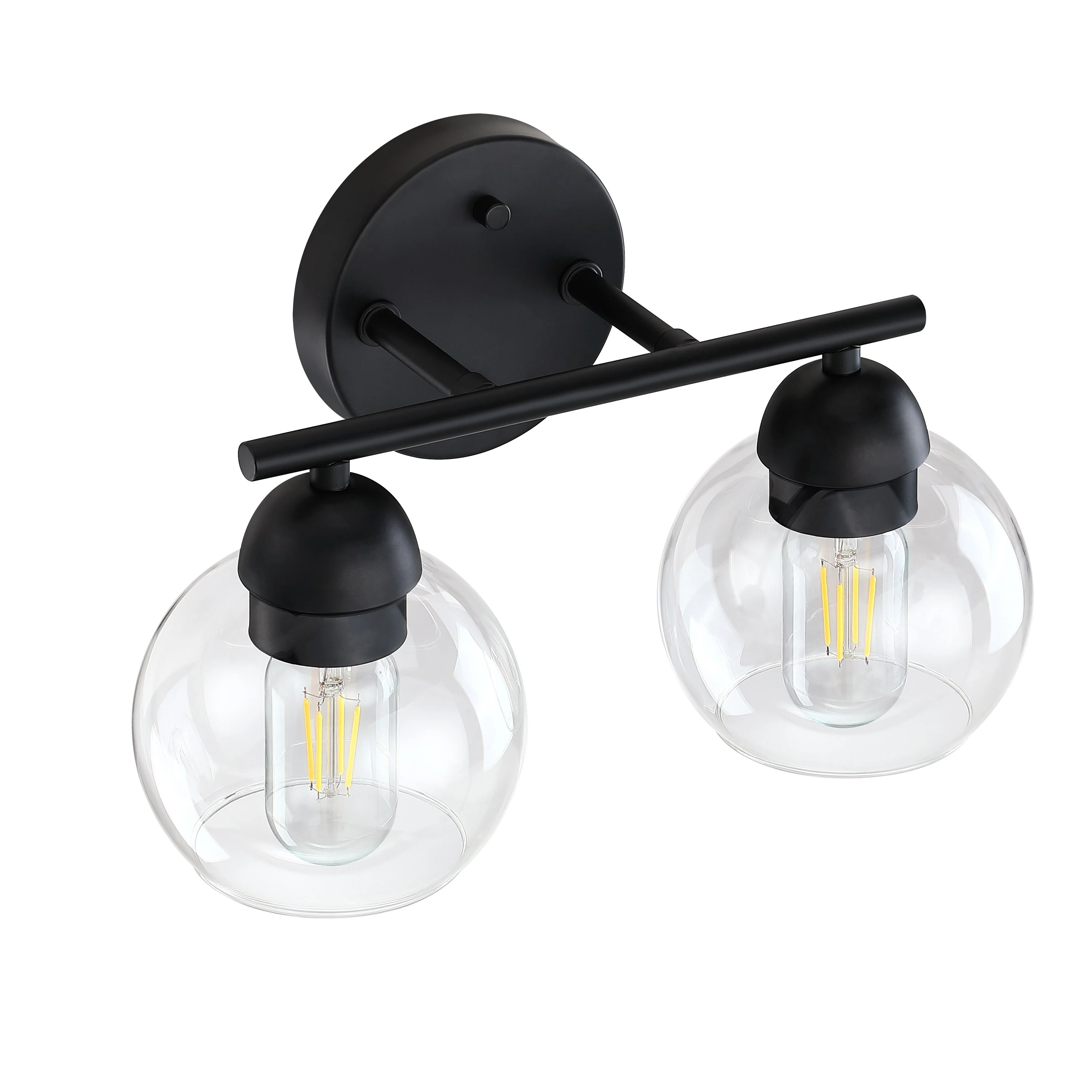 The Matte Black+Brass/Brass/Brushed Nickle/Matte Black finish lamp body head vanity lighting fixtures is made of high quality baking varnish metal,anti-rust and won't fade.Encased in attractive clear glass globe maximizes light output for an optimally bright ambience,and will add a modern chic element to your spaces with its gold hues. Combines modern and industrial style, the bathroom lights will absolutely bring an updated experience to your walls. The bathroom wall sconce lighting can be mounted in an up or down direction. Ideal as a living room sconces wall lighting, wall lights bedroom, porch light fixtures wall mount or bathroom vanity lights and so on.
