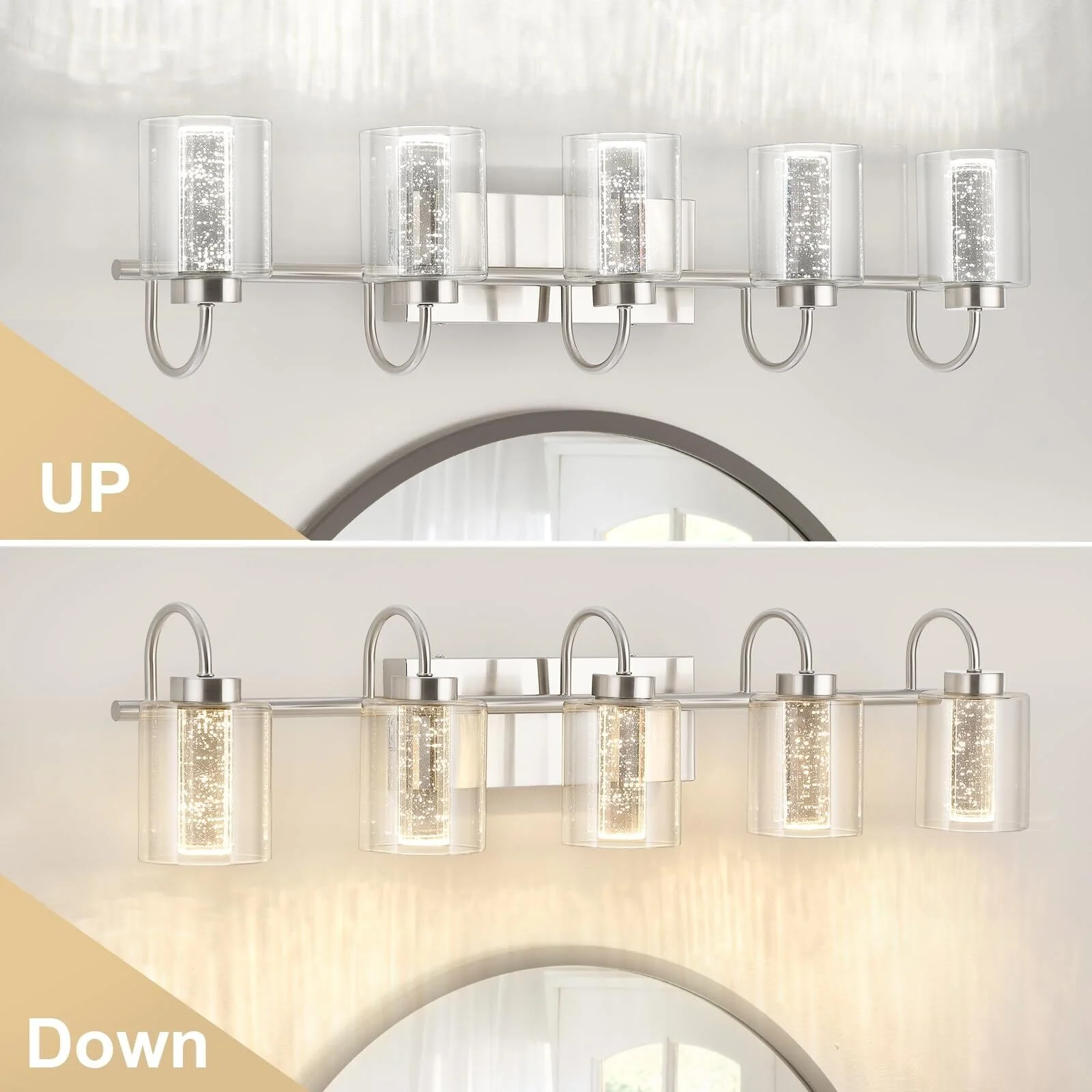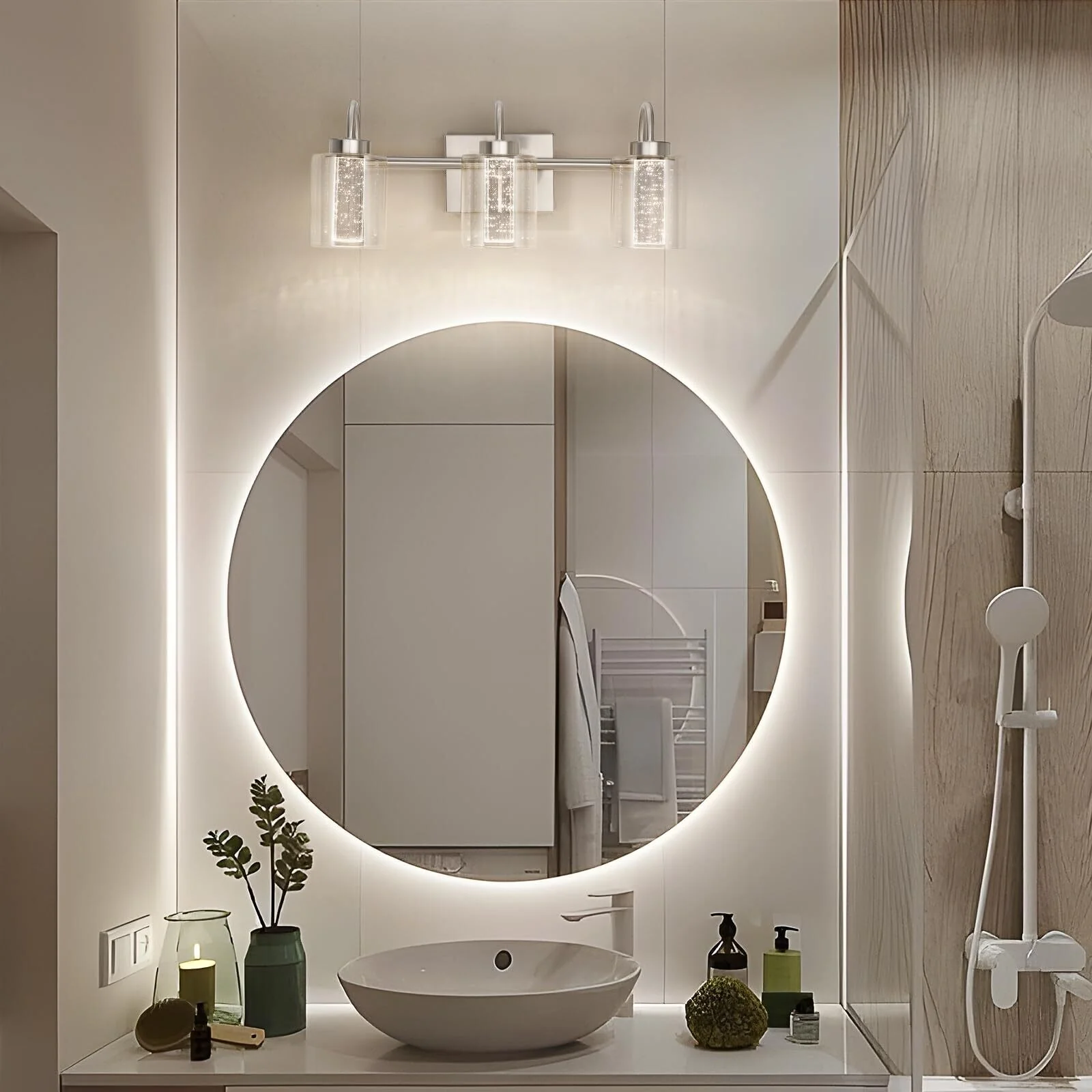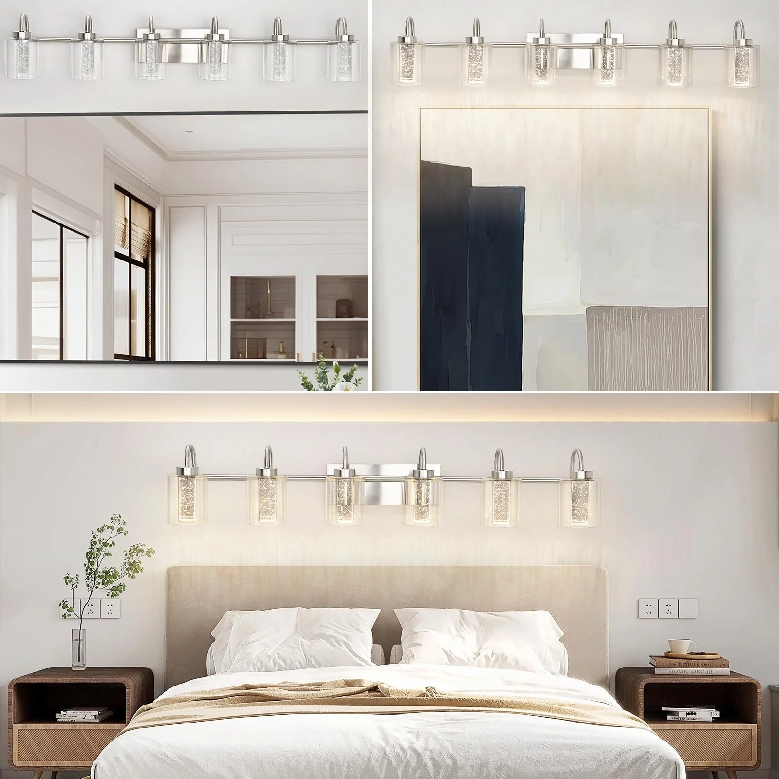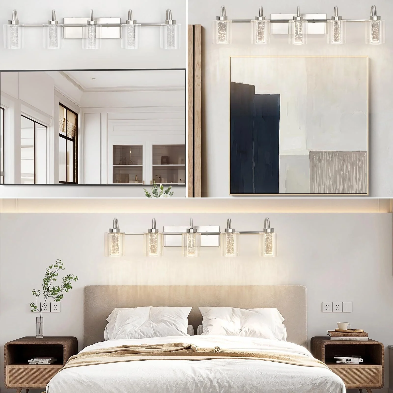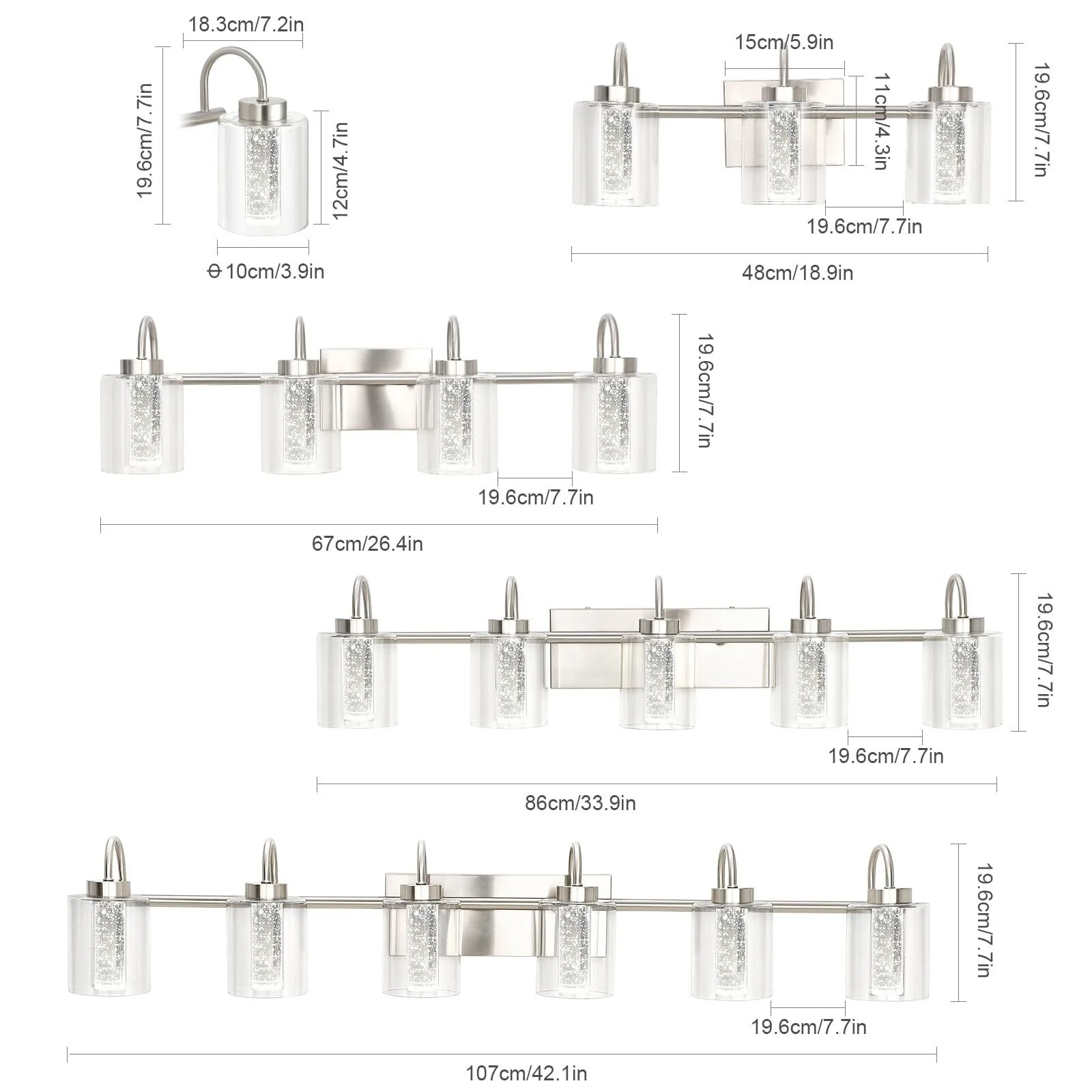 Vanity Light Fixture with Clear Crystal Bubble Glass: This bathroom vanity light is made of crystal glass technology, and the crystal glass emits a beautiful glow under refracted light, perfect for any decoration style like minimalist, modern, vintage, rural farmhouse or industrial.
