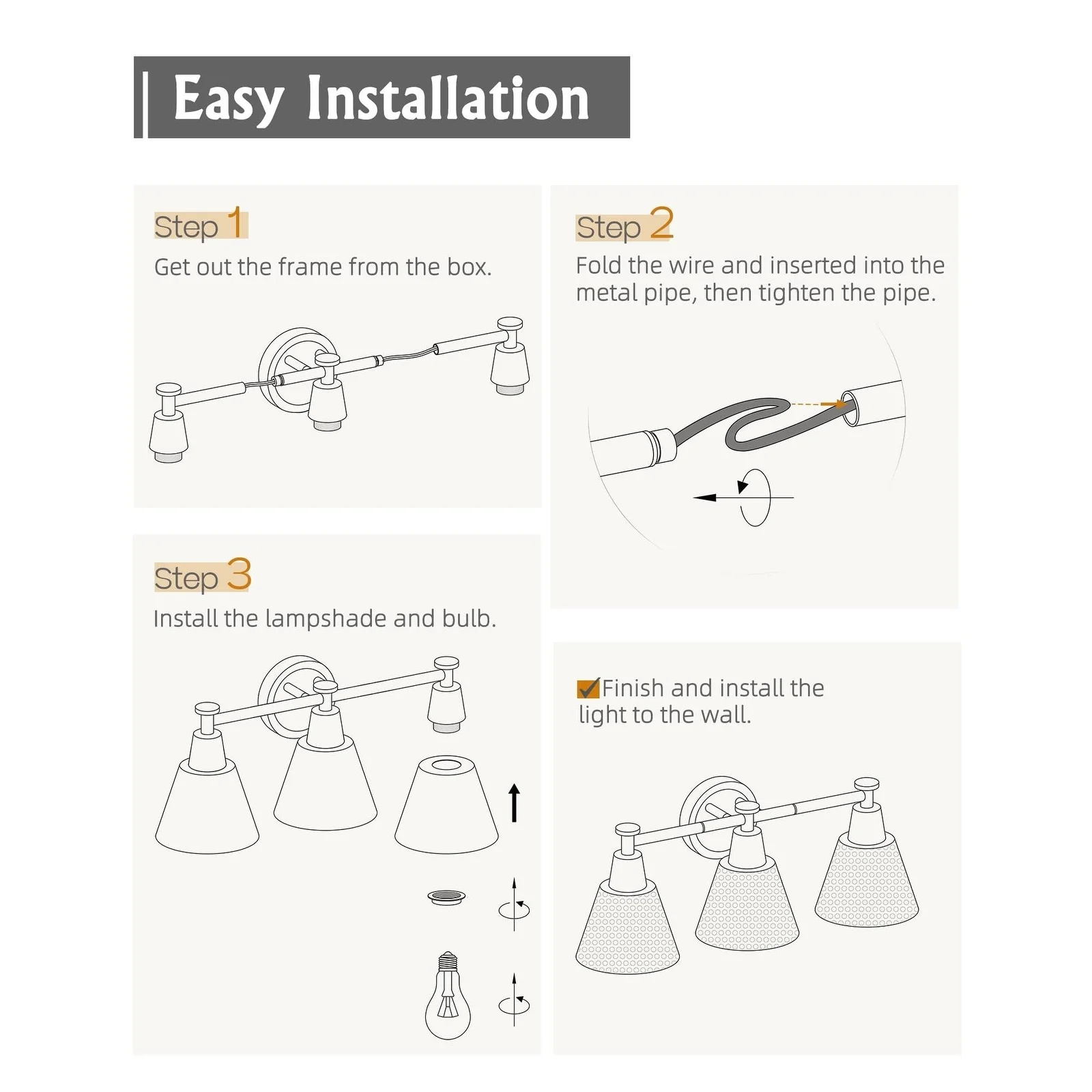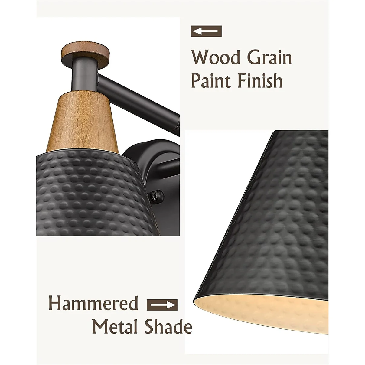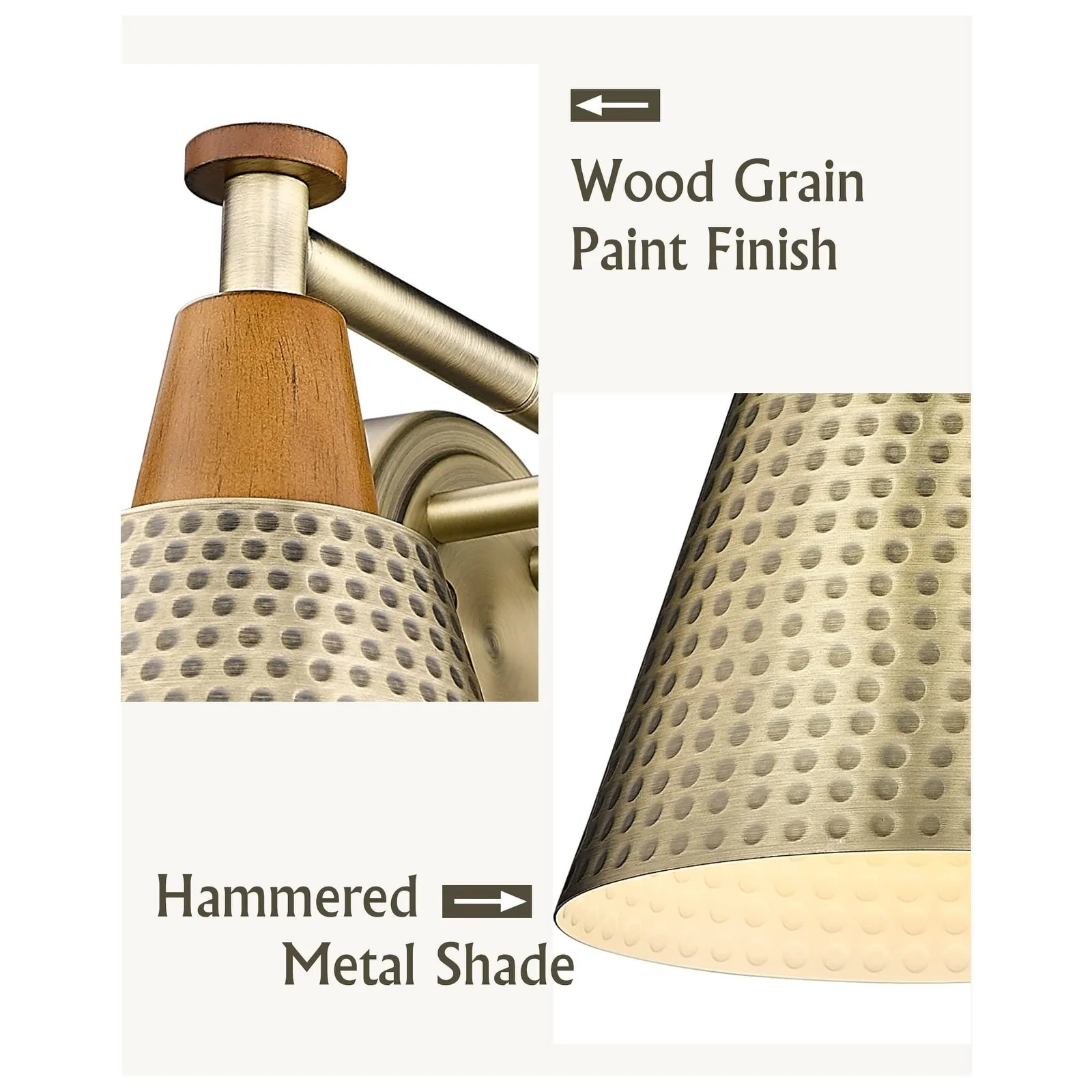 Hammered Metal Shade creates an high-end atmosphere to your space.Simple and elegant,beautiful in shape,exquisite in decoration and fine in workmanship.The modern wall vanity light is perfectly suitable for your bedroom,powder room,porch,over the mirror,over the sink and so on.Also,this light is easy installation.Purchase now and make a new lighting experience.