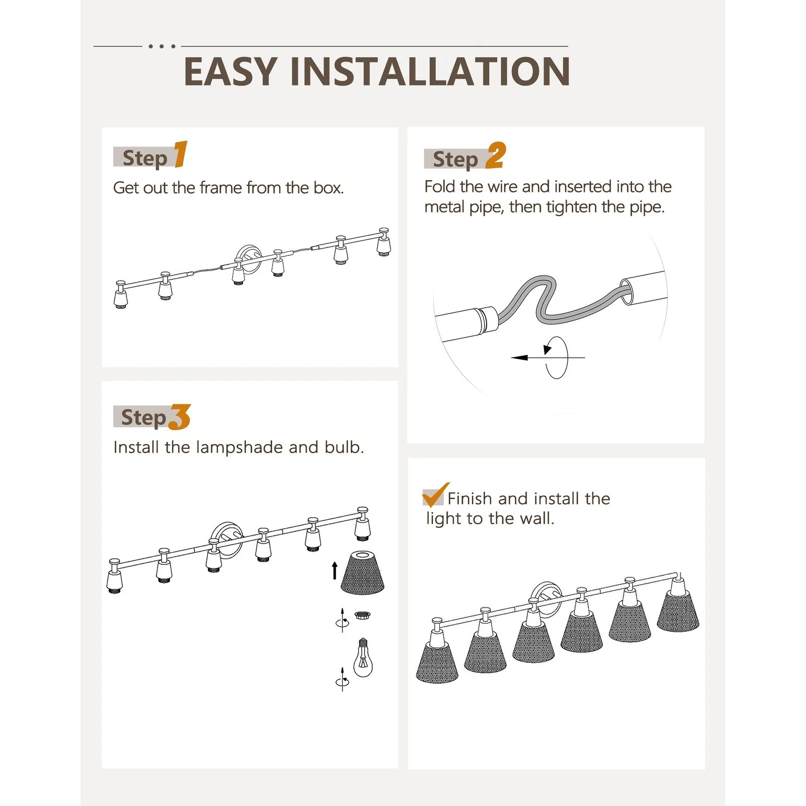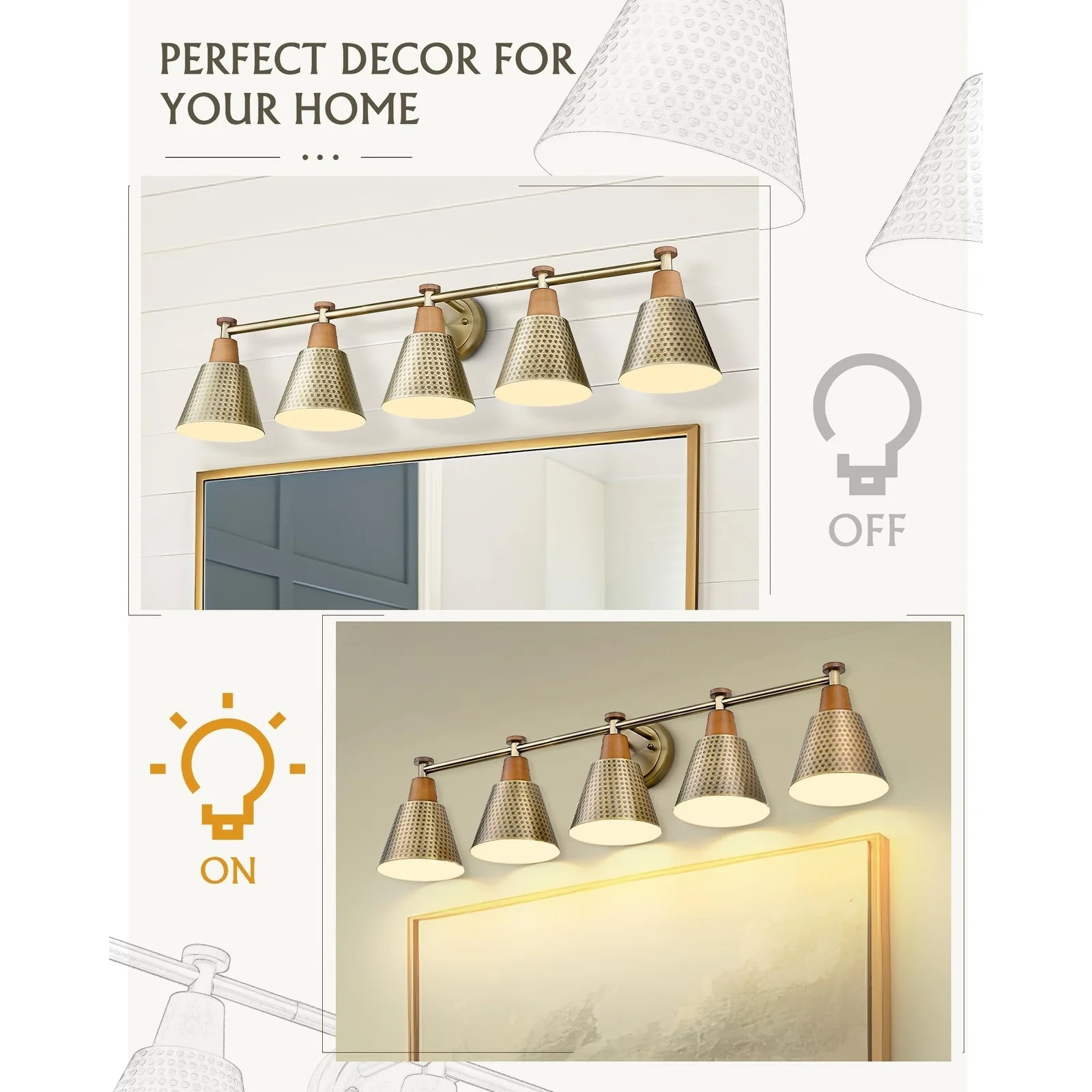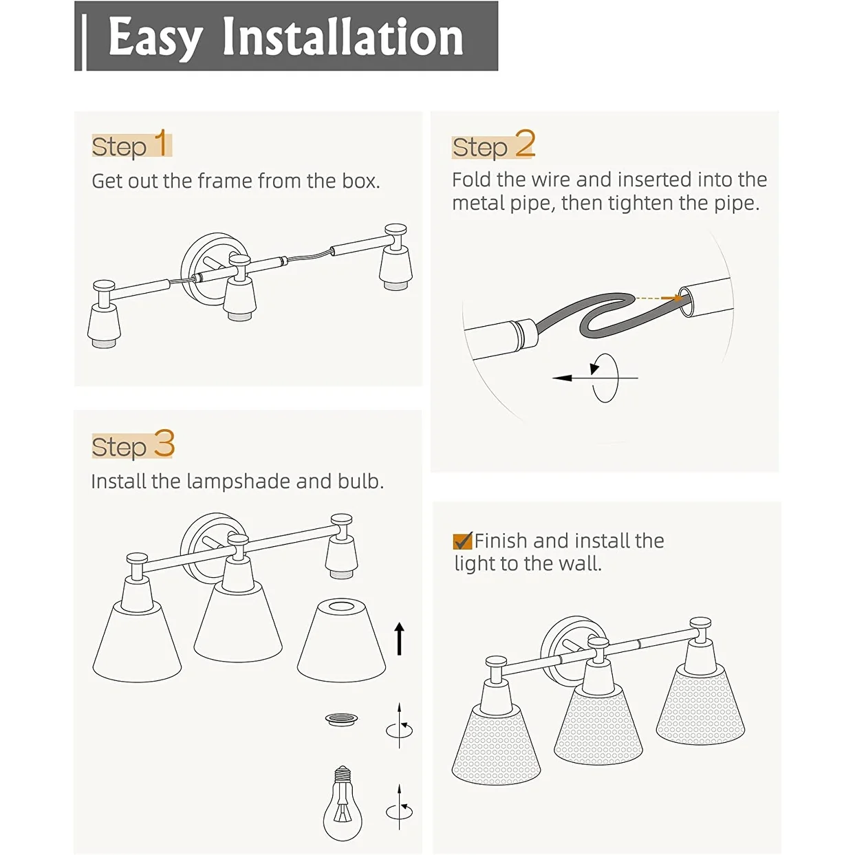 Hammered Metal Shade creates an high-end atmosphere to your space.Simple and elegant,beautiful in shape,exquisite in decoration and fine in workmanship.The modern wall vanity light is perfectly suitable for your bedroom,powder room,porch,over the mirror,over the sink and so on.Also,this light is easy installation.Purchase now and make a new lighting experience.
