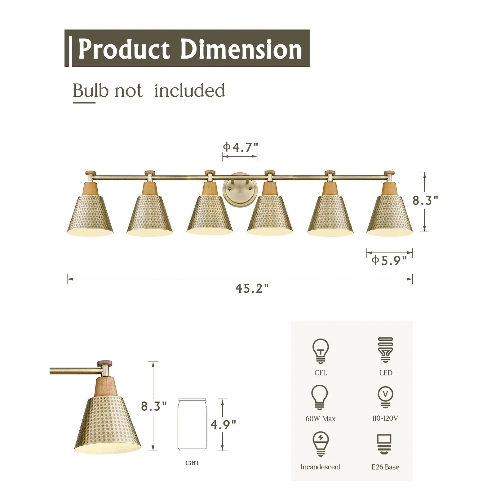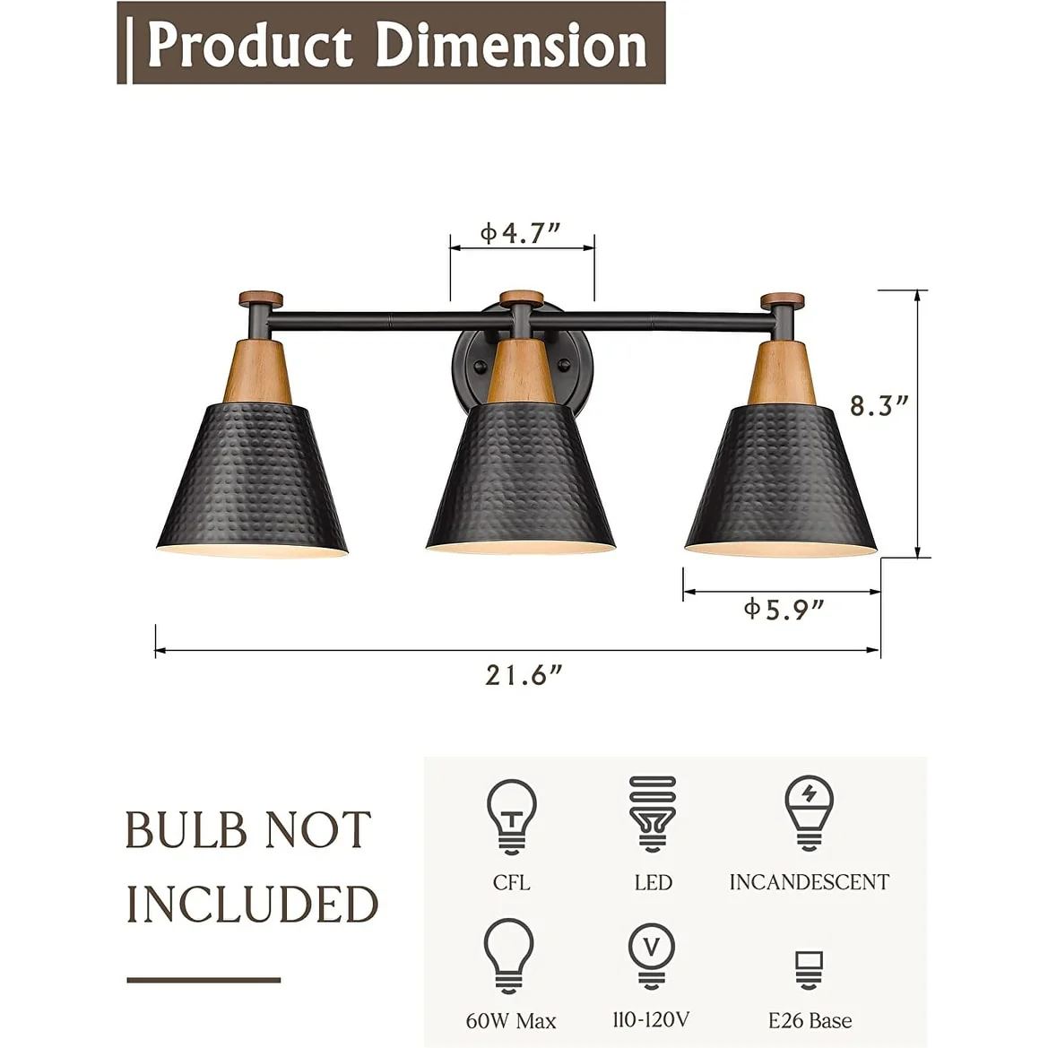 - Light Source Type:Edison bulbs, incandescent bulbs, CFLs, LED bulbs