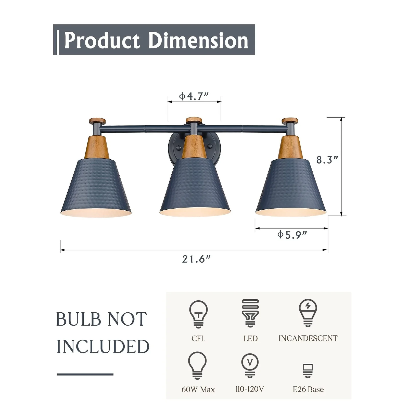 - Requires E26 base bulb(Max.60W)