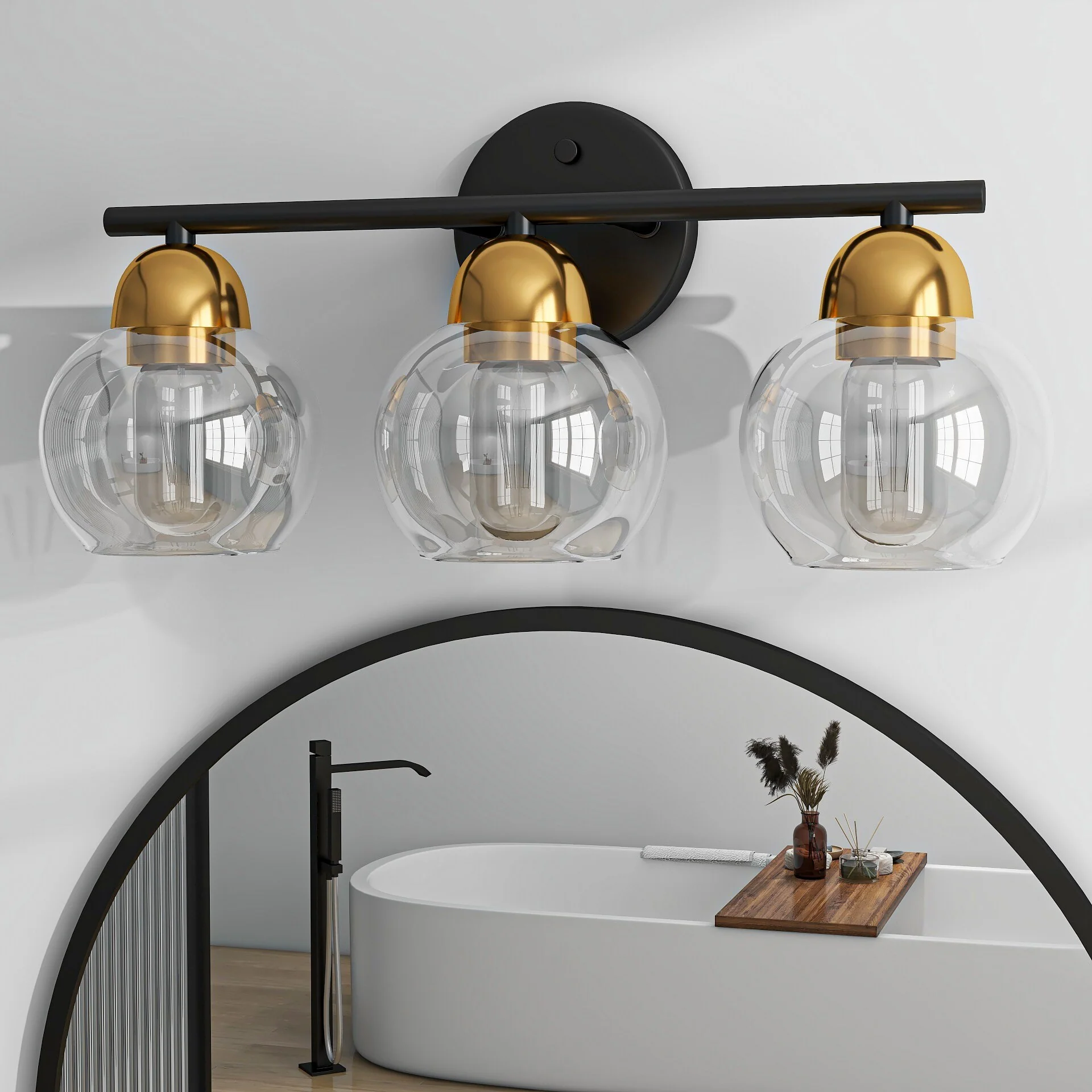 The vanity wall mounted light is made of high-quality metal and baking paint in Brass/Brushed Nickle/Matte Black/Matte Black+Brass finish, which makes this bathroom vanity lighting anti-rust, anti-corrosion and anti-faded. That means this mirror wall lamp will maintain its retro stylish looking for years. The 3-light over mirror bathroom lighting features a streamlined silhouette, the design of the mirror vanity light fixture allows for this sconce to be installed in an upward or downward position which casts unique shadows on the wall when lighting, adding retro appeals to your bathroom, vanity, mirror cabinets, dressing table, art display, kitchen, foyer, living room, bedroom, wall or window of the study room, basement, workshop, farmhouse and so on.