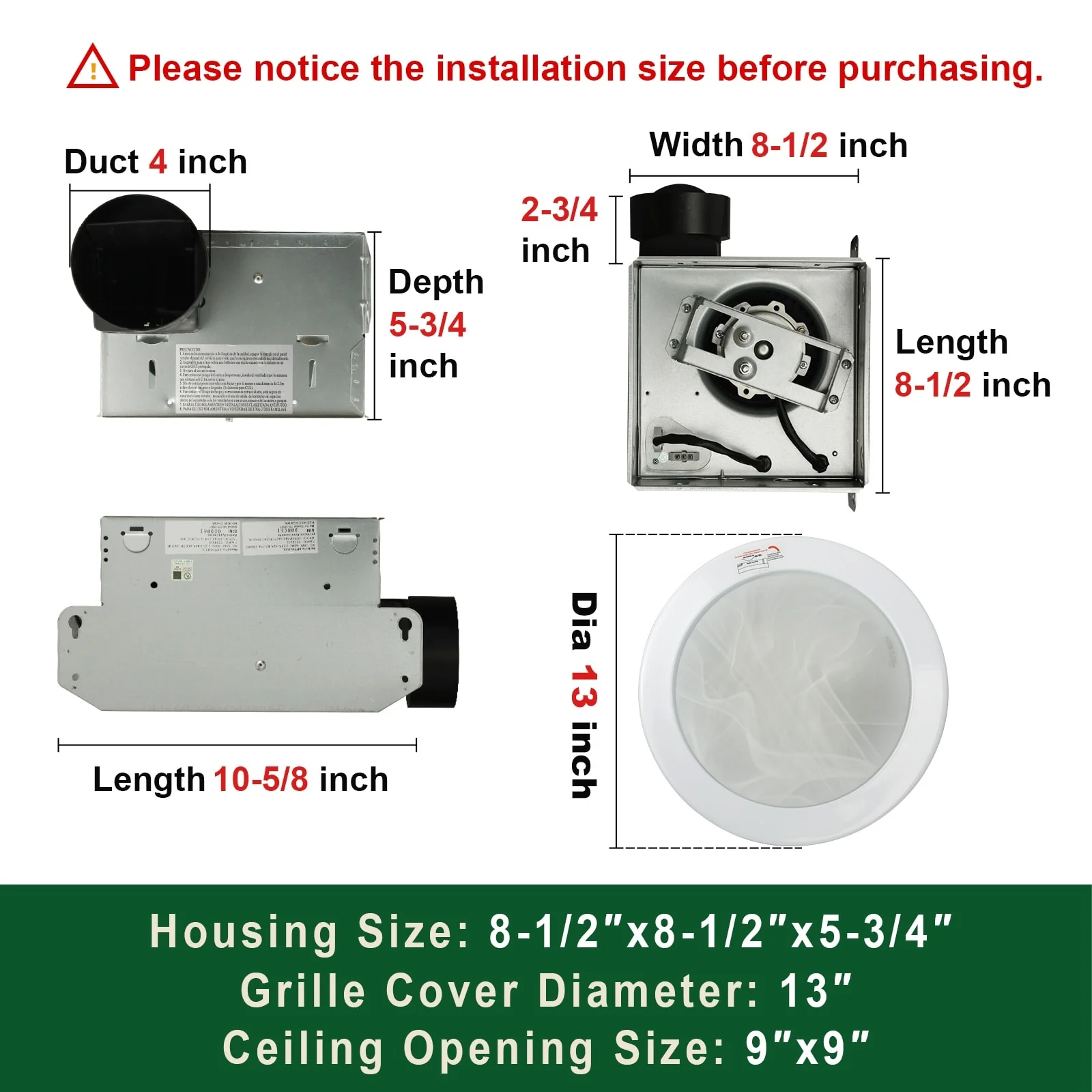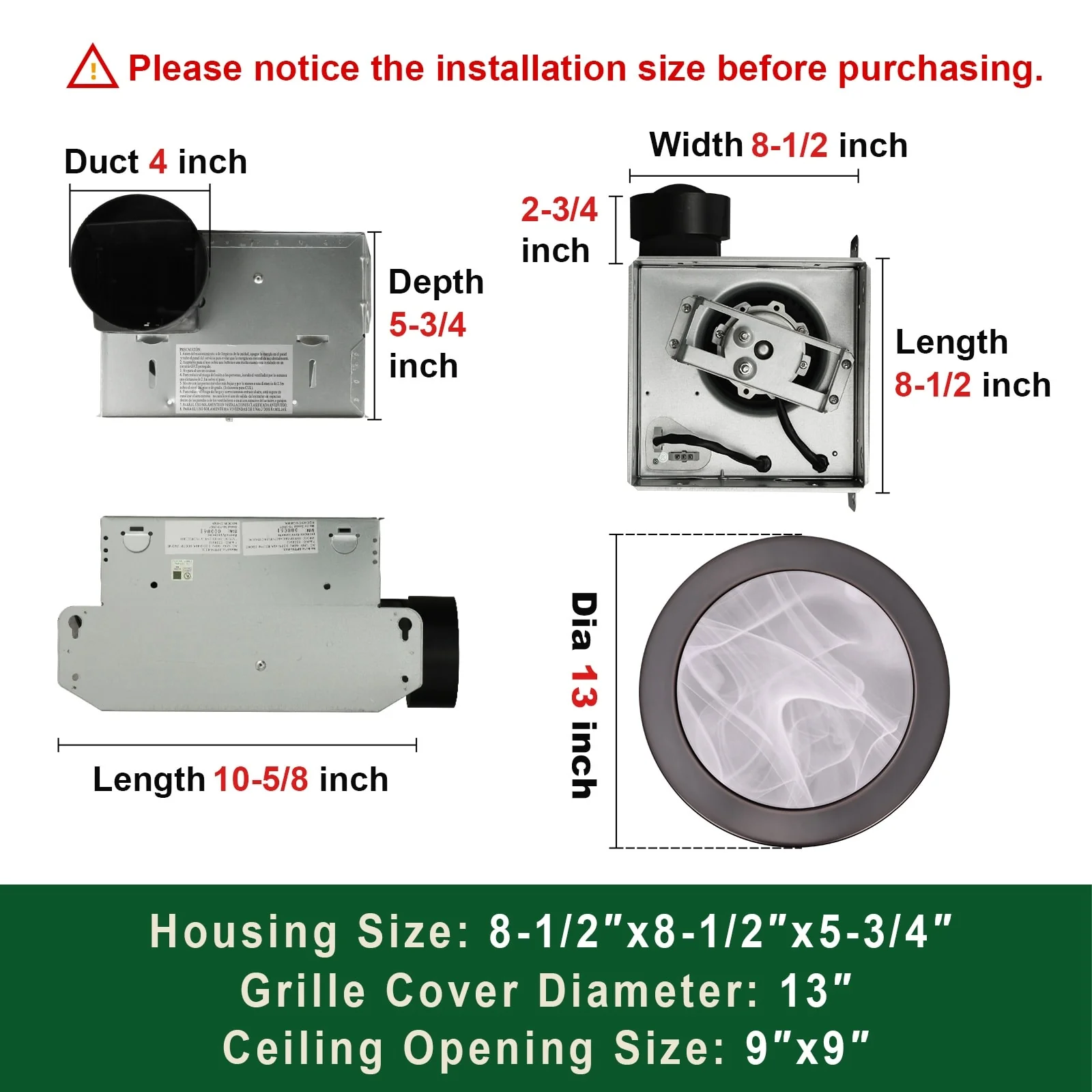 - Diameter of Grille: 13 in.