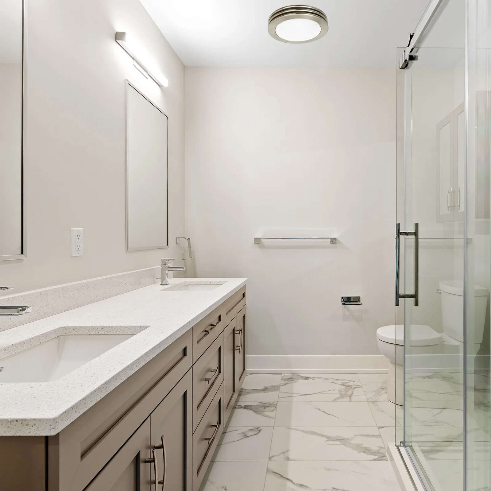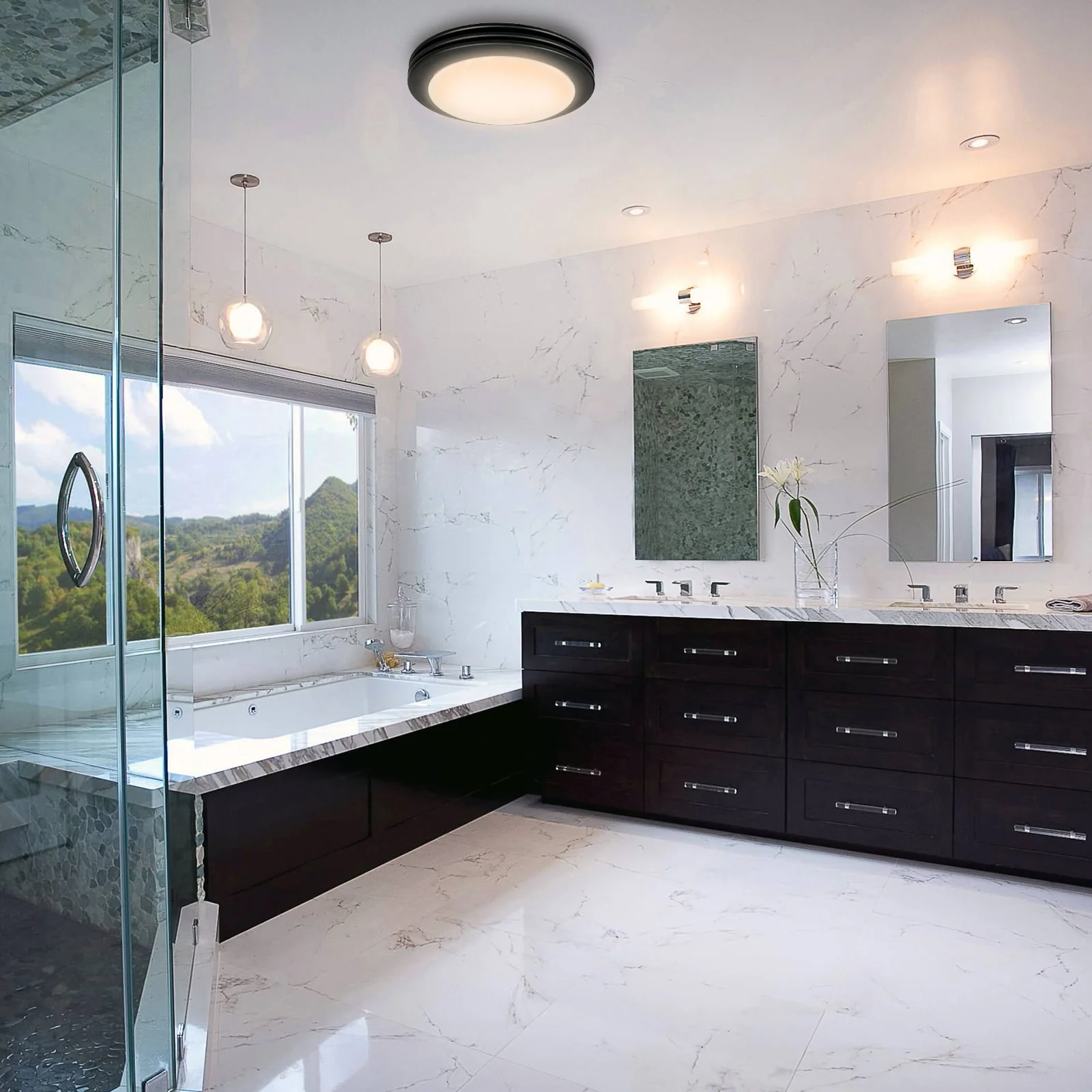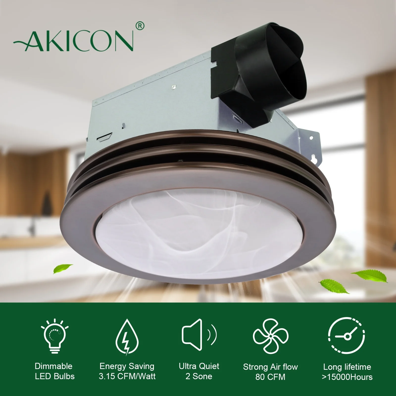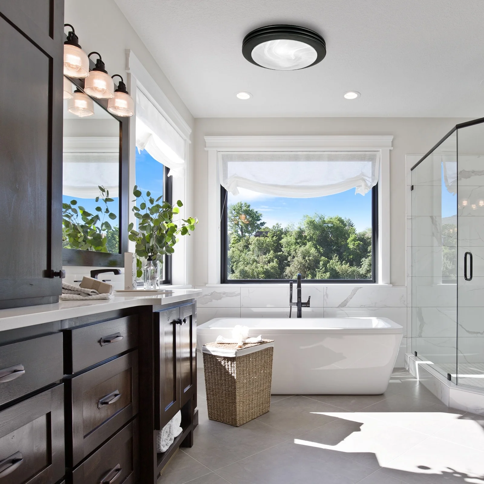- Energy-Efficient: Dimmable 9W LED bulbs x 2pcs included, bright enough for your bathroom. Light and fan can be combined or individually wired to wall switches.