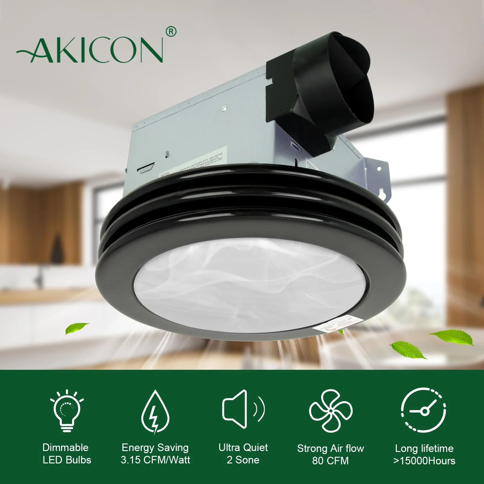 Don't let humidity and odors linger any longer! This bathroom fan offers ultimate solution for reducing moisture and eliminating unwanted odors in the laundry or exercise room. With a refreshing airflow of 80 CFM, this sleek and functional exhaust fan effortlessly whisks away moisture after your shower or bath. Operating at a noise level of only 1.5 sones, it ensures a peaceful and tranquil environment in your home. This ventilation fan provides 3 color temperature options, allowing you to customize the lighting in your space to create the perfect ambiance for your bathroom. Its minimalist design and variety of color choices make it easy to seamlessly integrate into any decor style, adding both functionality and aesthetic appeal to your space. Upgrade to our bathroom fan for a fresh and comfortable environment.