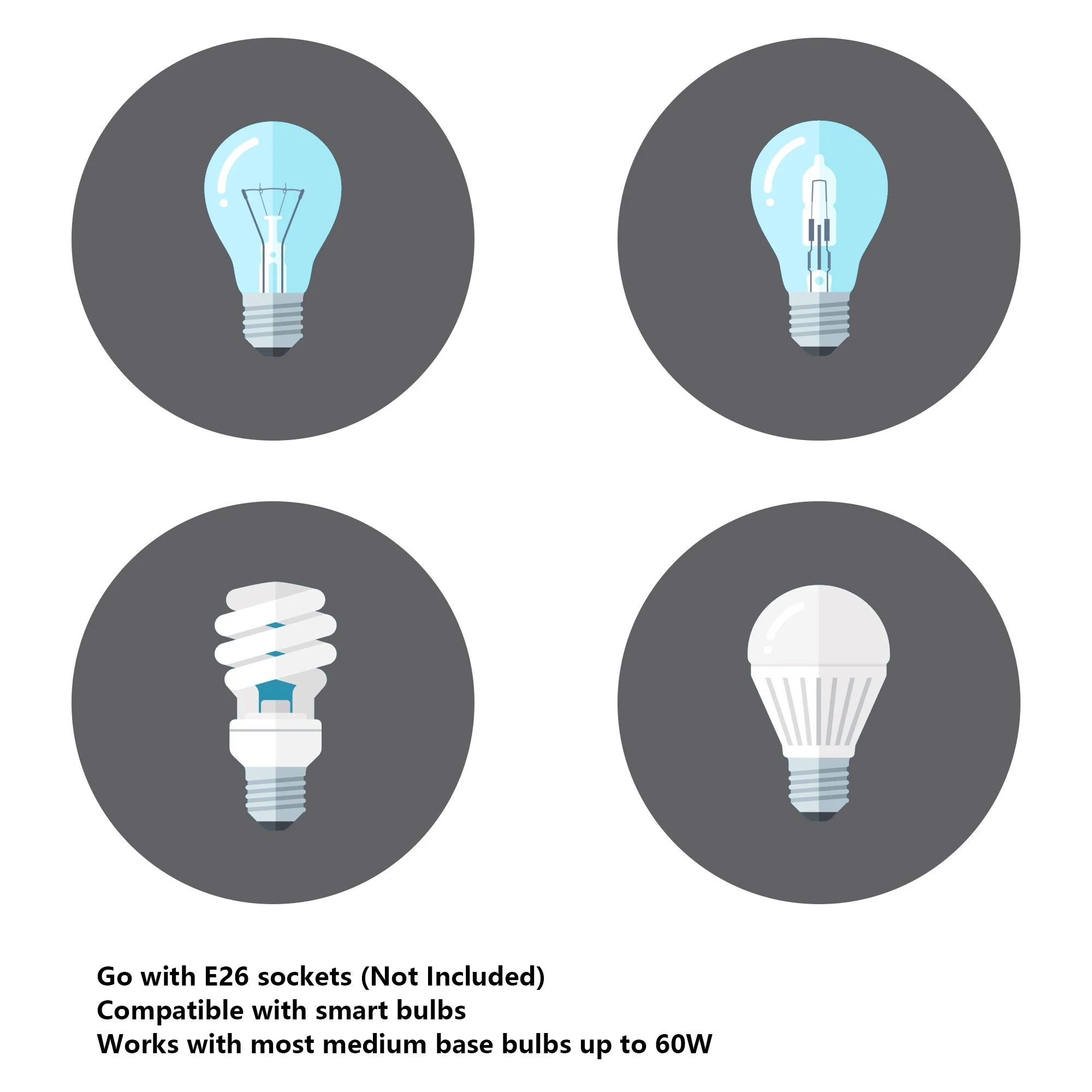- LIGHT SOURCE: E26 US Standard Socket. Max 60W, Compatible with any E26 base LED bulb, Halogen, Incandescent, Energy Saving Bulb. (Note: Bulbs are not included.)