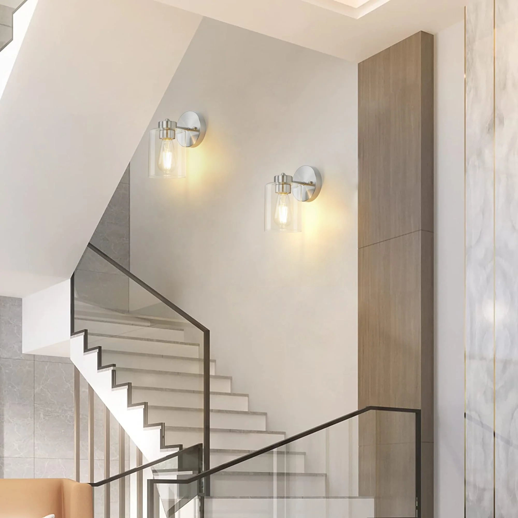 - This dual sconce is damp-rated and is an ideal choice for bathroom light fixtures, vanity lights, bedside lamps, and fireplace wall sconces, it's also perfect for the foyer, corridor, stairway, porch, and other places you need.