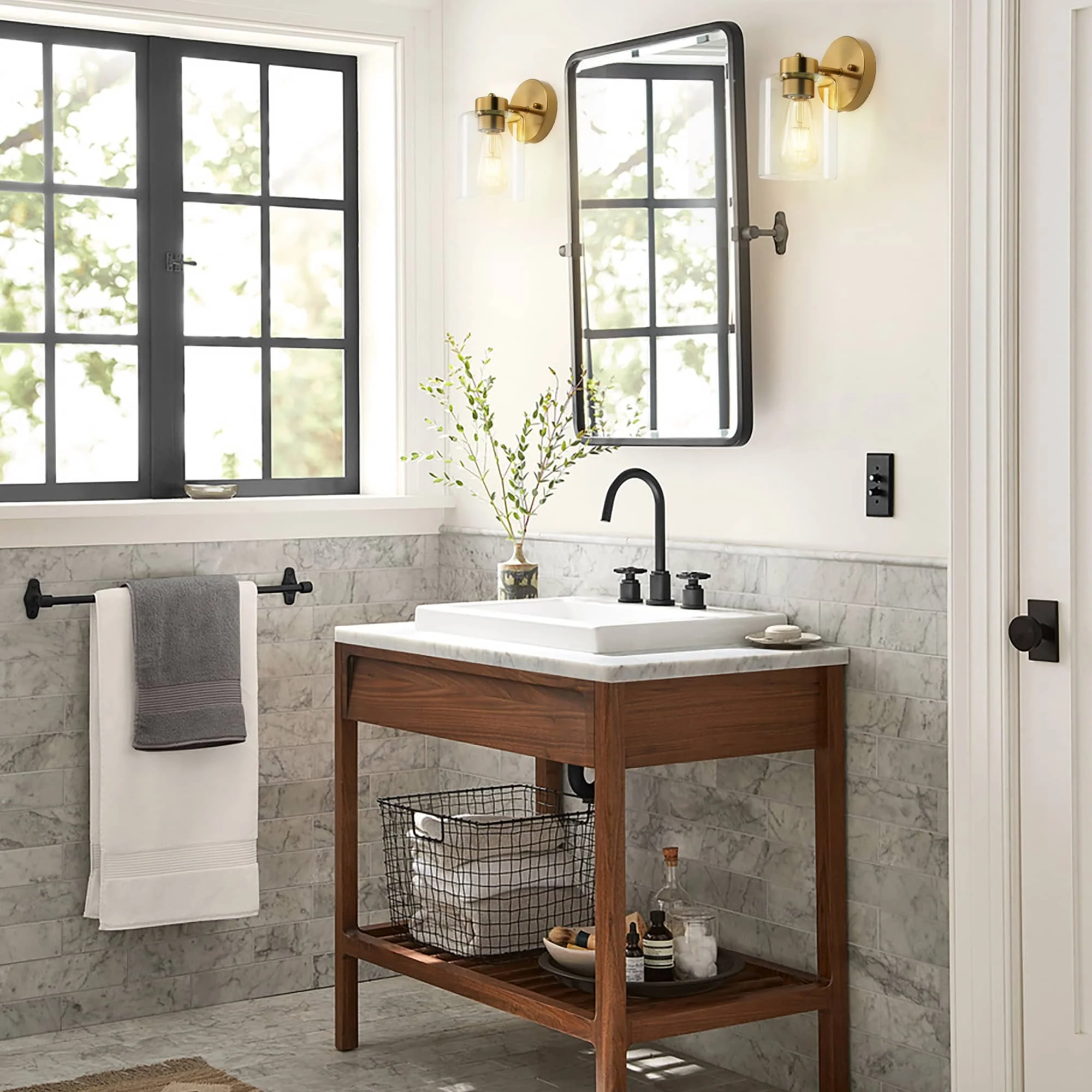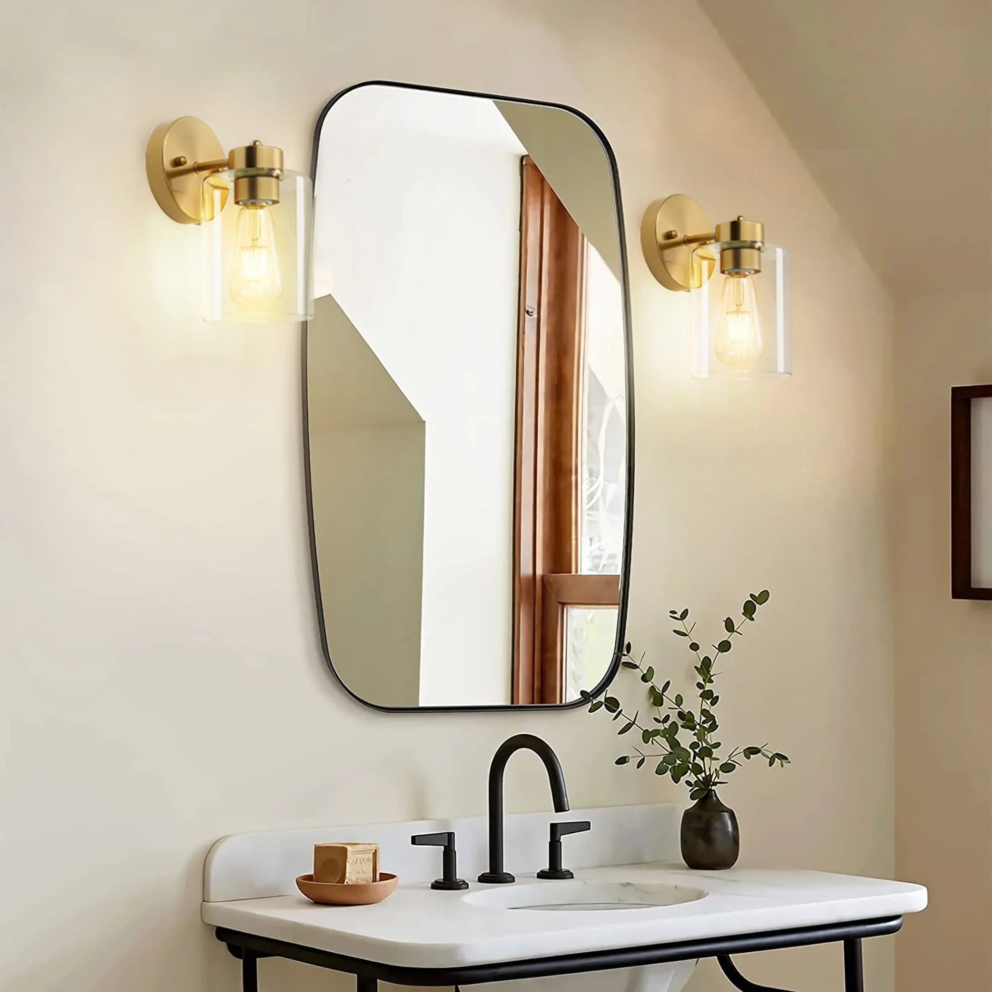 - The wall lamp has an antique brass gold finish that adds a sophisticated touch, while the clear shade adds contrast, making this sconce wall lighting combine modern, fashionable, and elegant