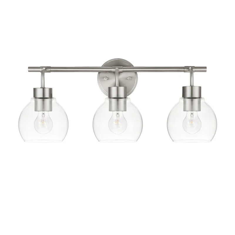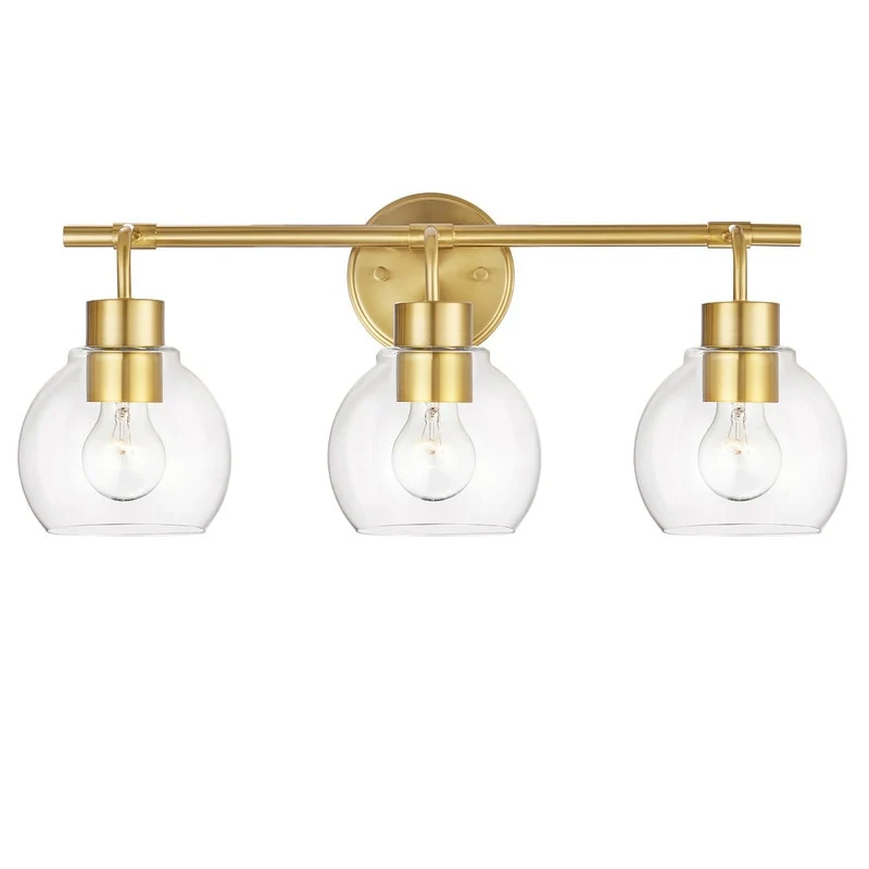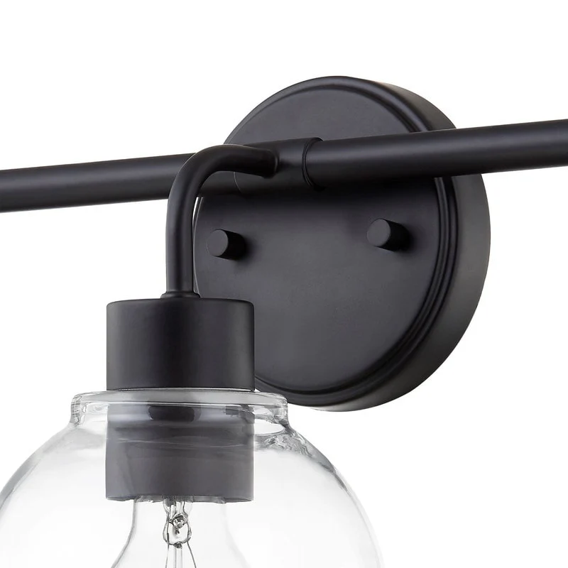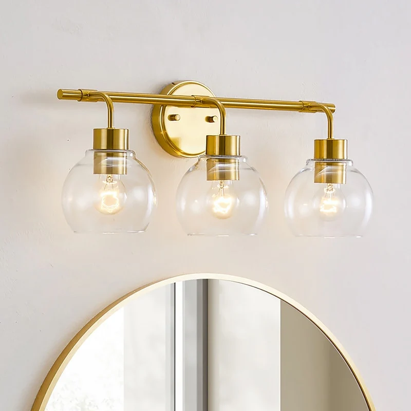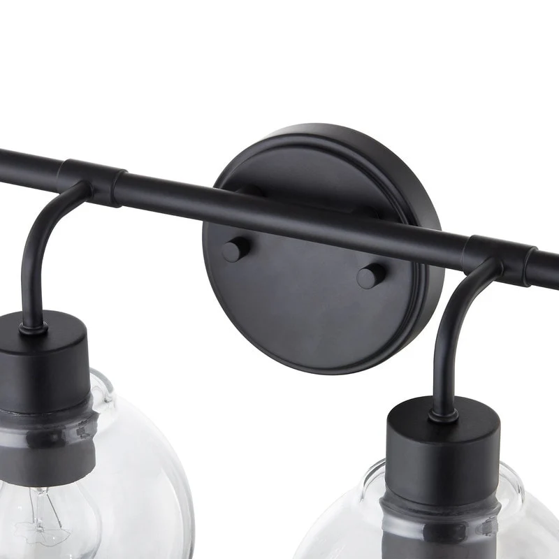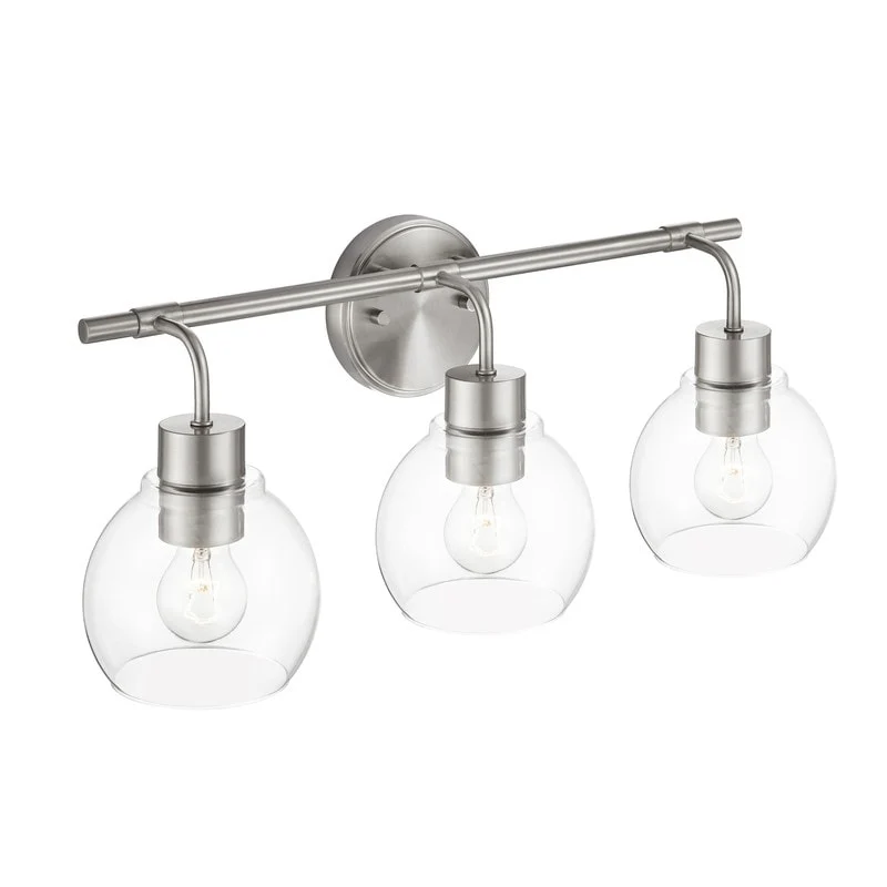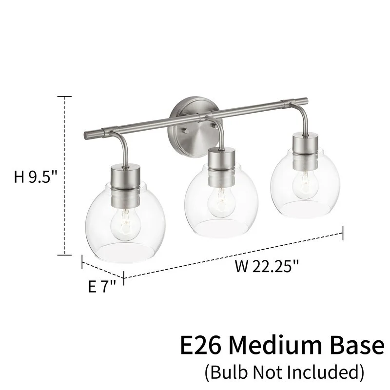 This bathroom vanity light adds a classic mid-century charm to your home. Keeping a bit of vintage touch with the simple back plate and clear glass globes, the light provides a modern and transitional feel. This wall-mounted light is designed for easy installation in damp locations such as bathrooms and powder rooms, or other needing nooks. Diffusing light upward or downward to your space with an ample and warm glow.