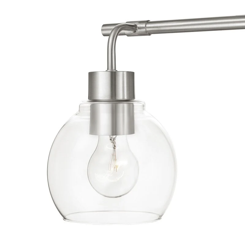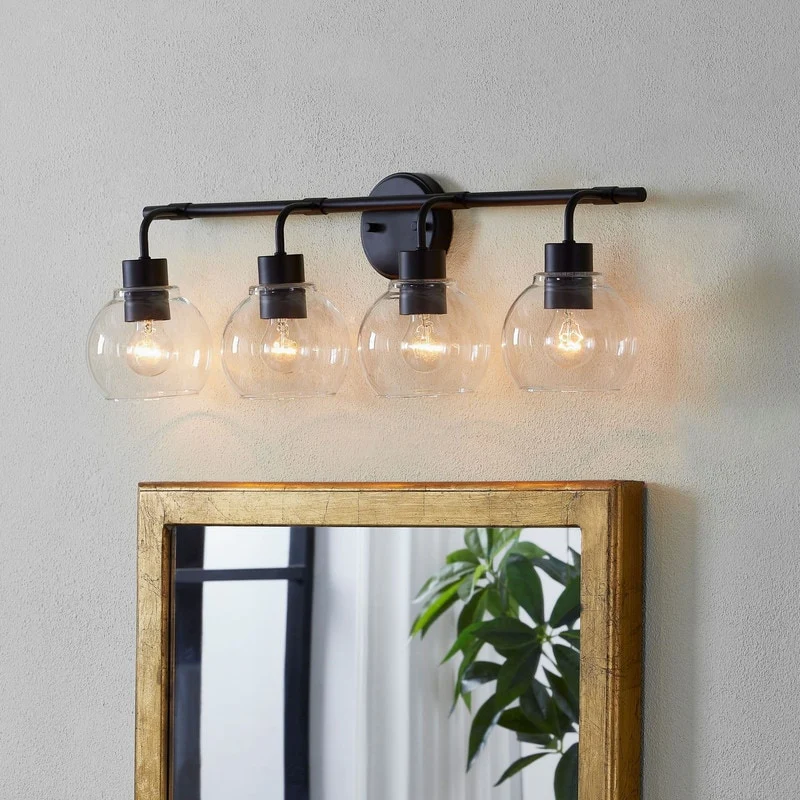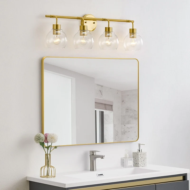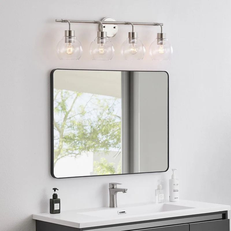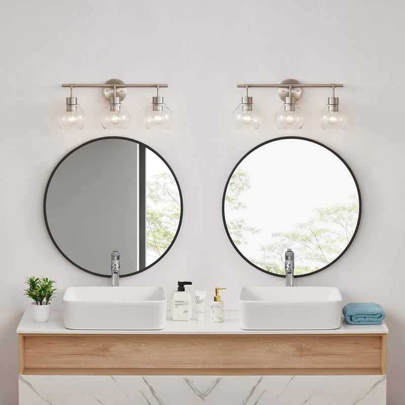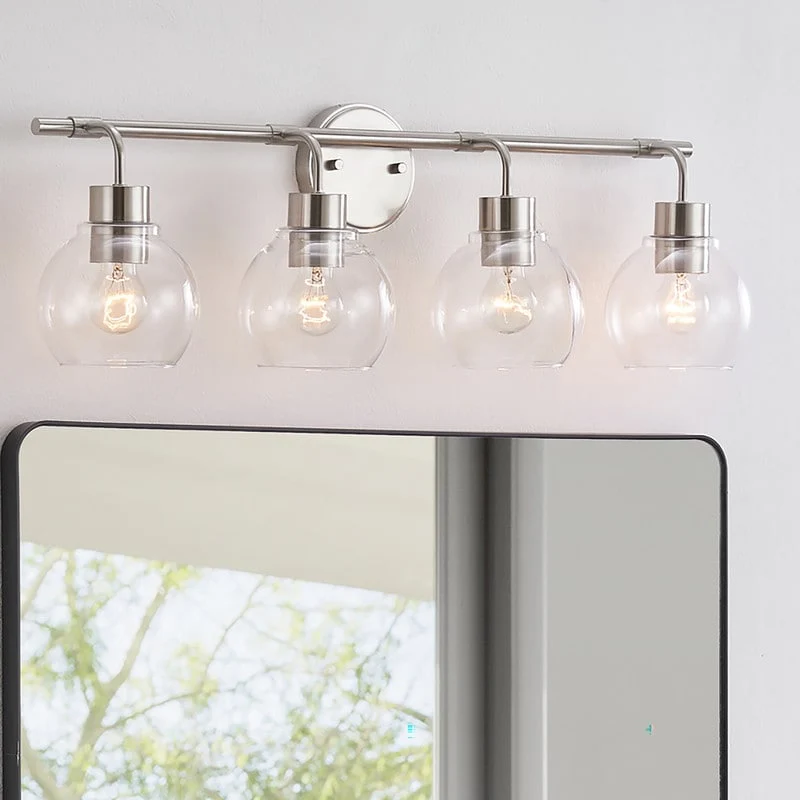 This bathroom vanity light adds a classic mid-century charm to your home. Keeping a bit of vintage touch with the simple back plate and clear glass globes, the light provides a modern and transitional feel. This wall-mounted light is designed for easy installation in damp locations such as bathrooms and powder rooms, or other needing nooks. Diffusing light upward or downward to your space with an ample and warm glow.