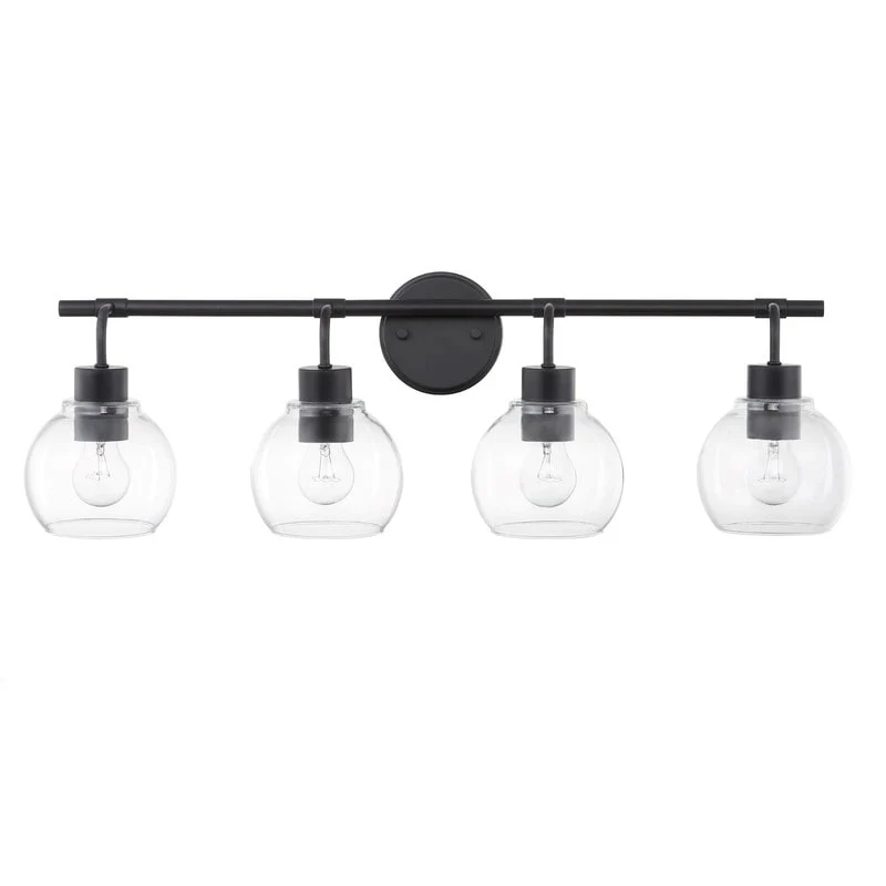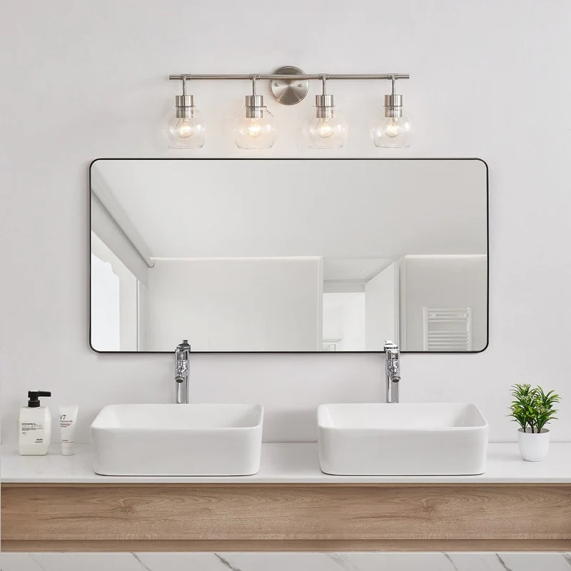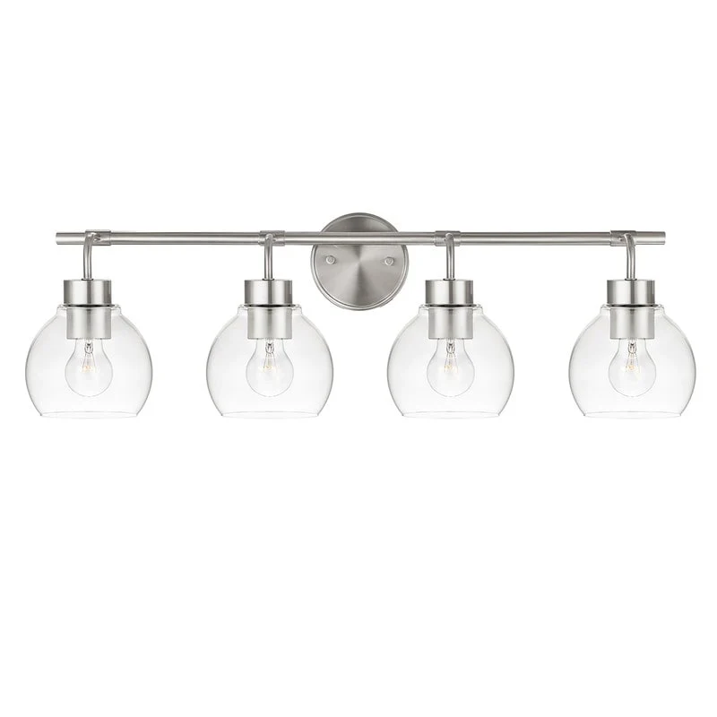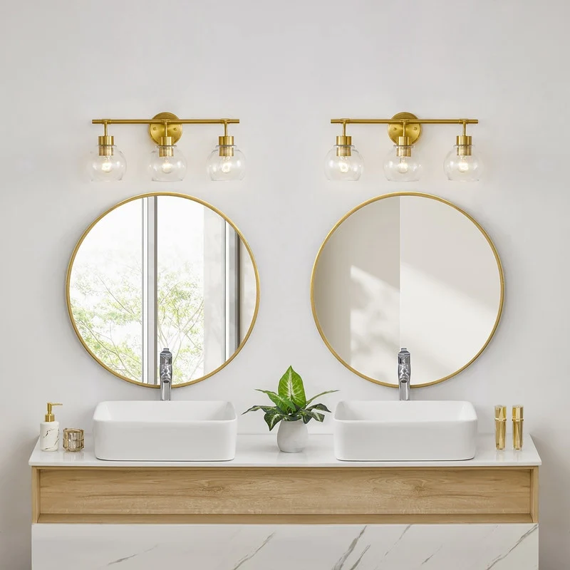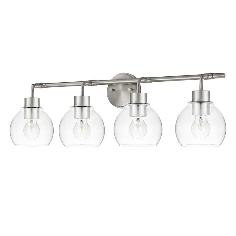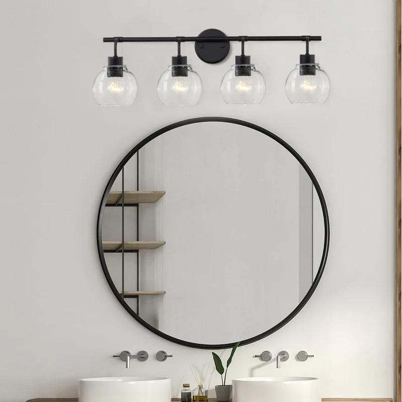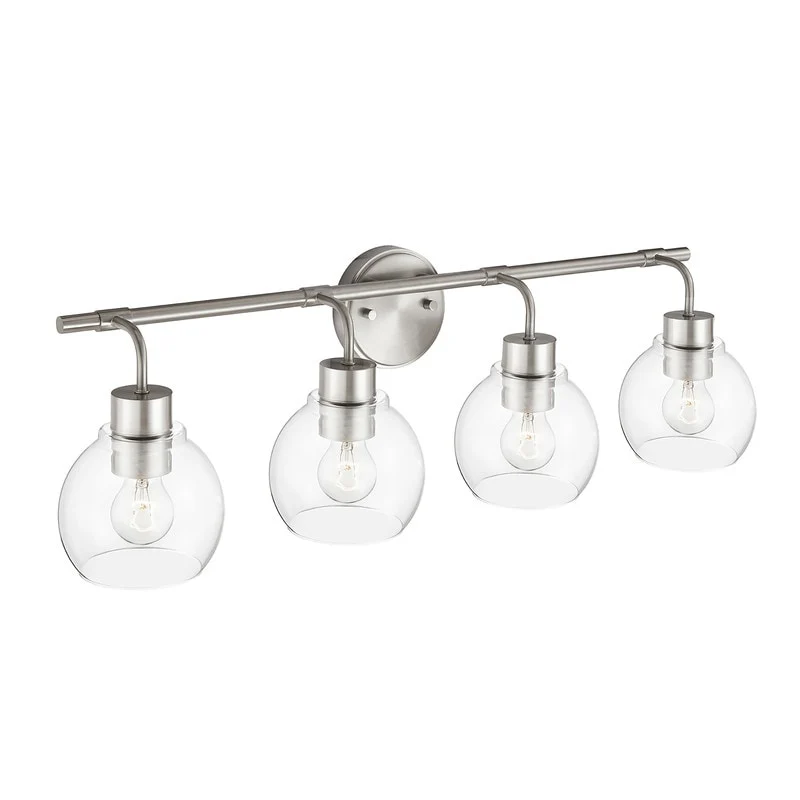 This bathroom vanity light adds a classic mid-century charm to your home. Keeping a bit of vintage touch with the simple back plate and clear glass globes, the light provides a modern and transitional feel. This wall-mounted light is designed for easy installation in damp locations such as bathrooms and powder rooms, or other needing nooks. Diffusing light upward or downward to your space with an ample and warm glow.