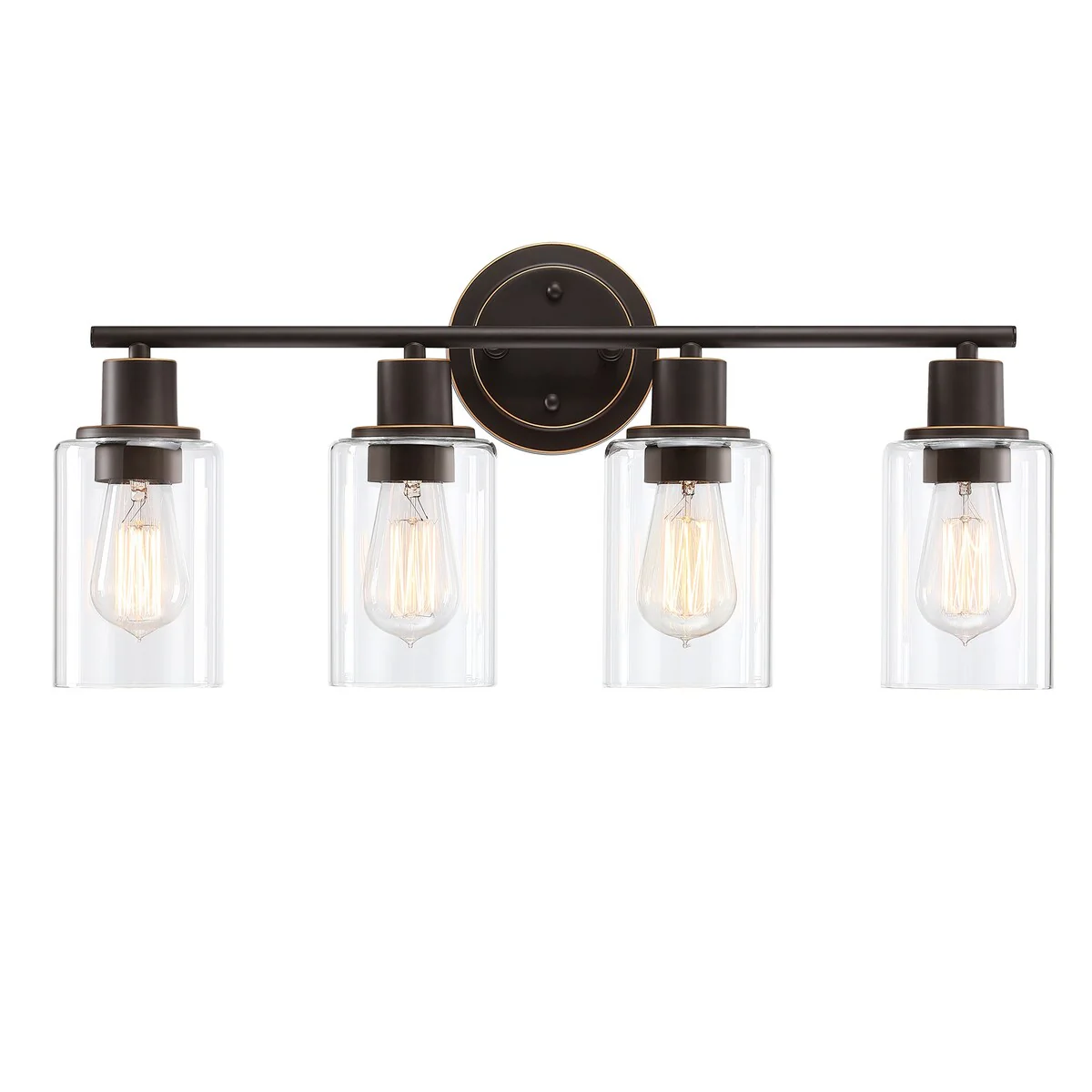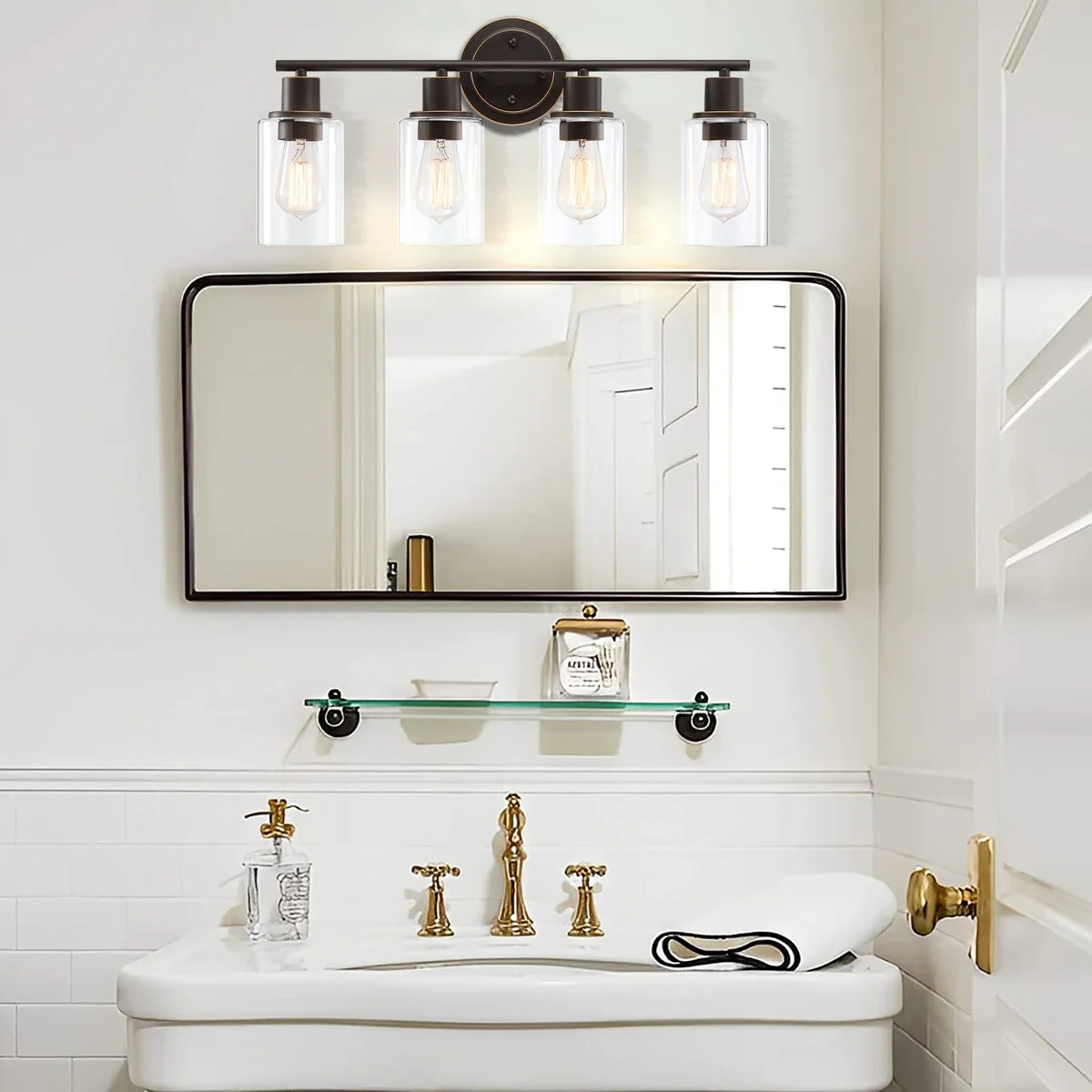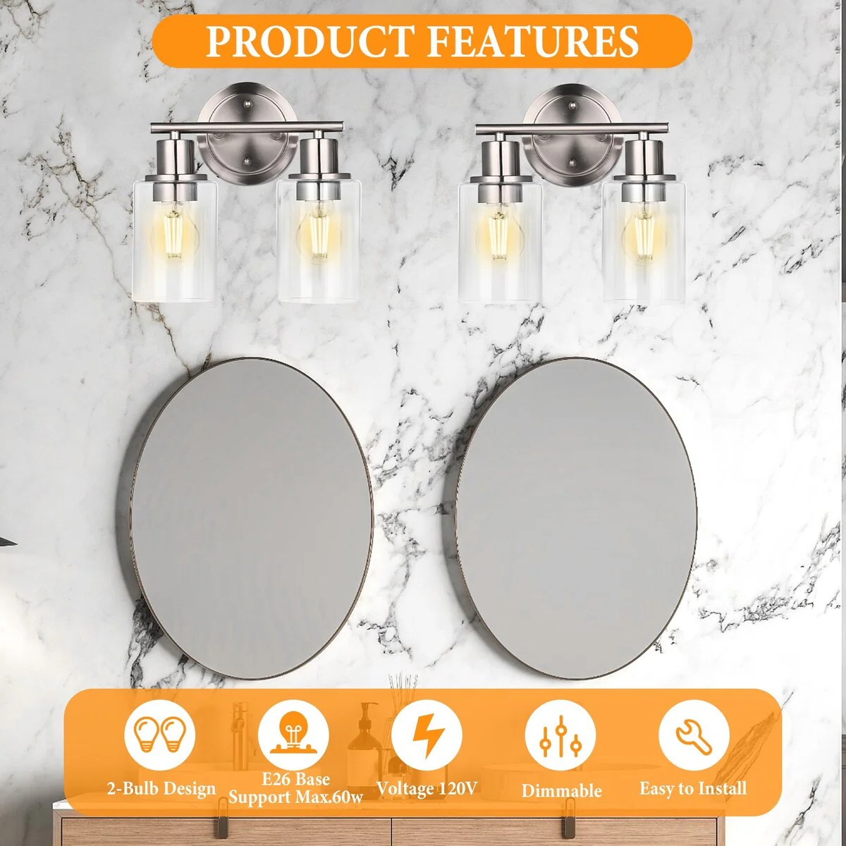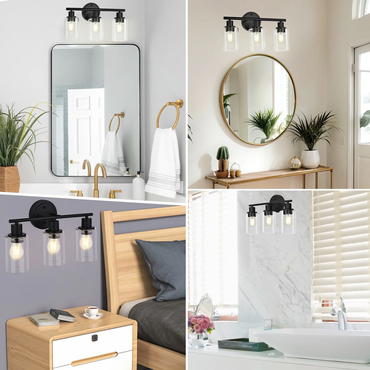 This retro elegant wall sconce light can perfectly blend to modern, farmhouse, or any other home decor styles. This wall sconce with a round bracket design, consisting of metal frame and clear glass shade. The wall light is a perfect addition to your house, it is ideal for updating your bathroom, vanity, bedroom, kitchen, living room, doorway, entrance or staircase, etc.
