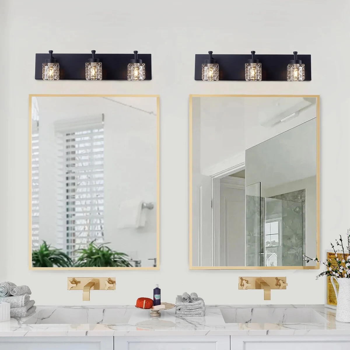 Material and design: Exquisite clear grain glass design and black finish make this attractive vanity light a welcome addition to any room.