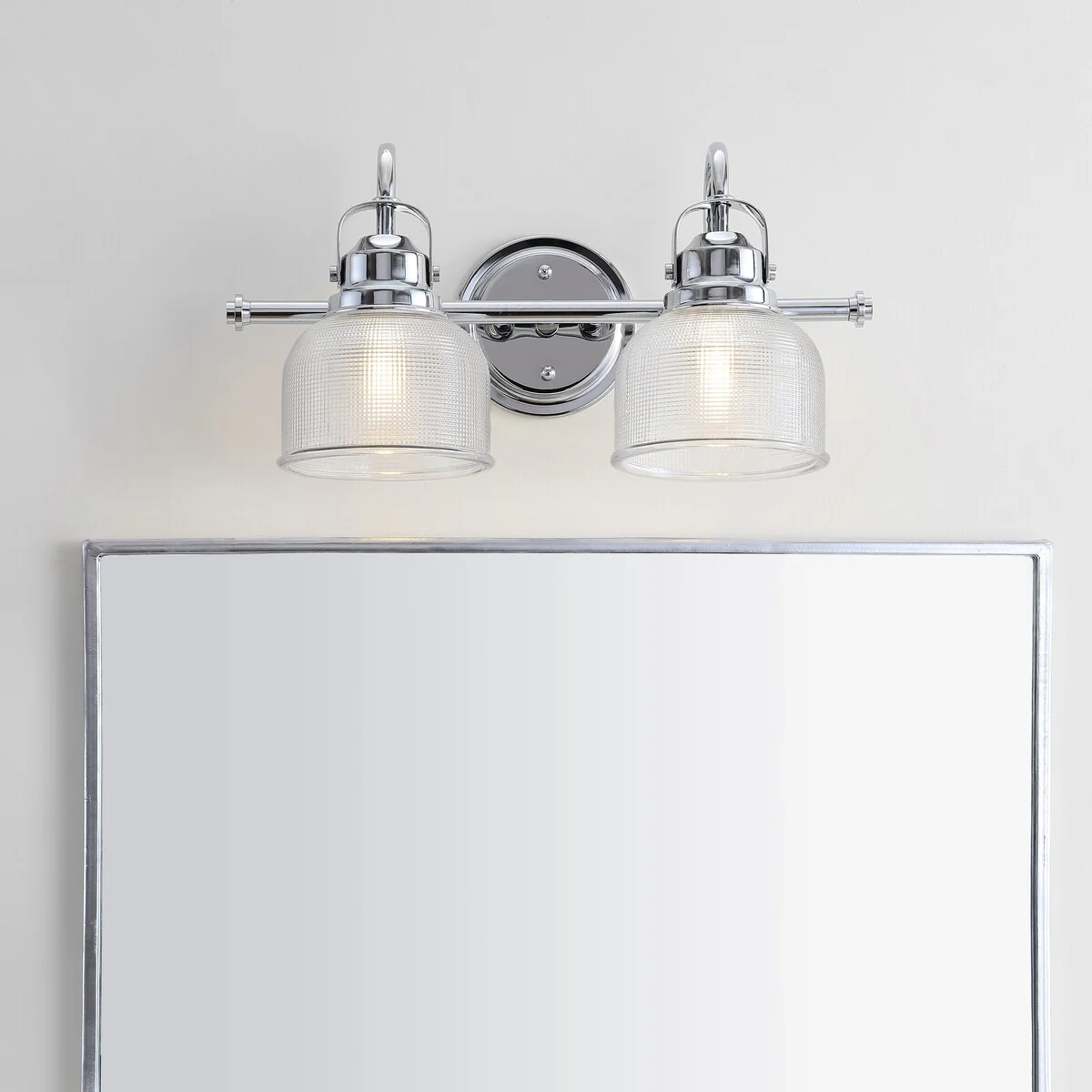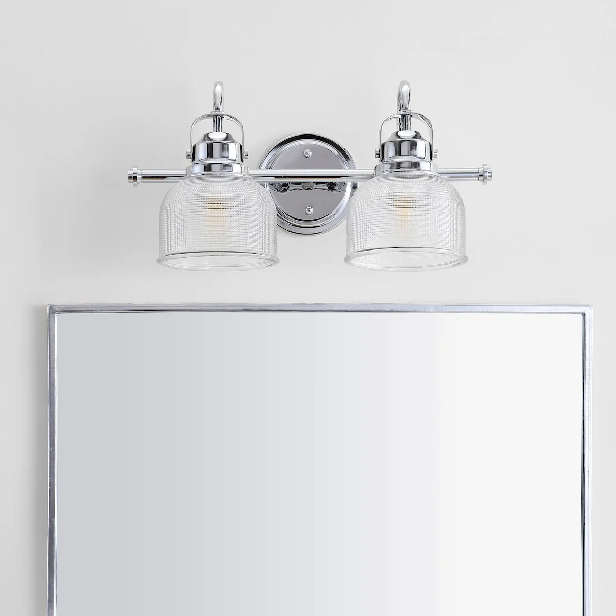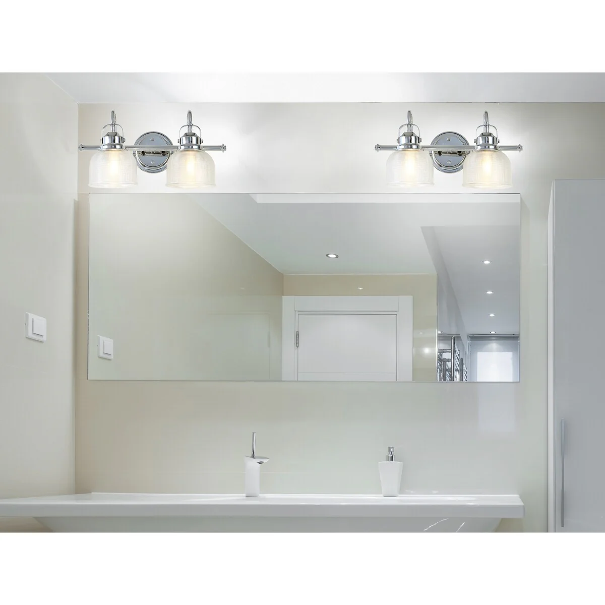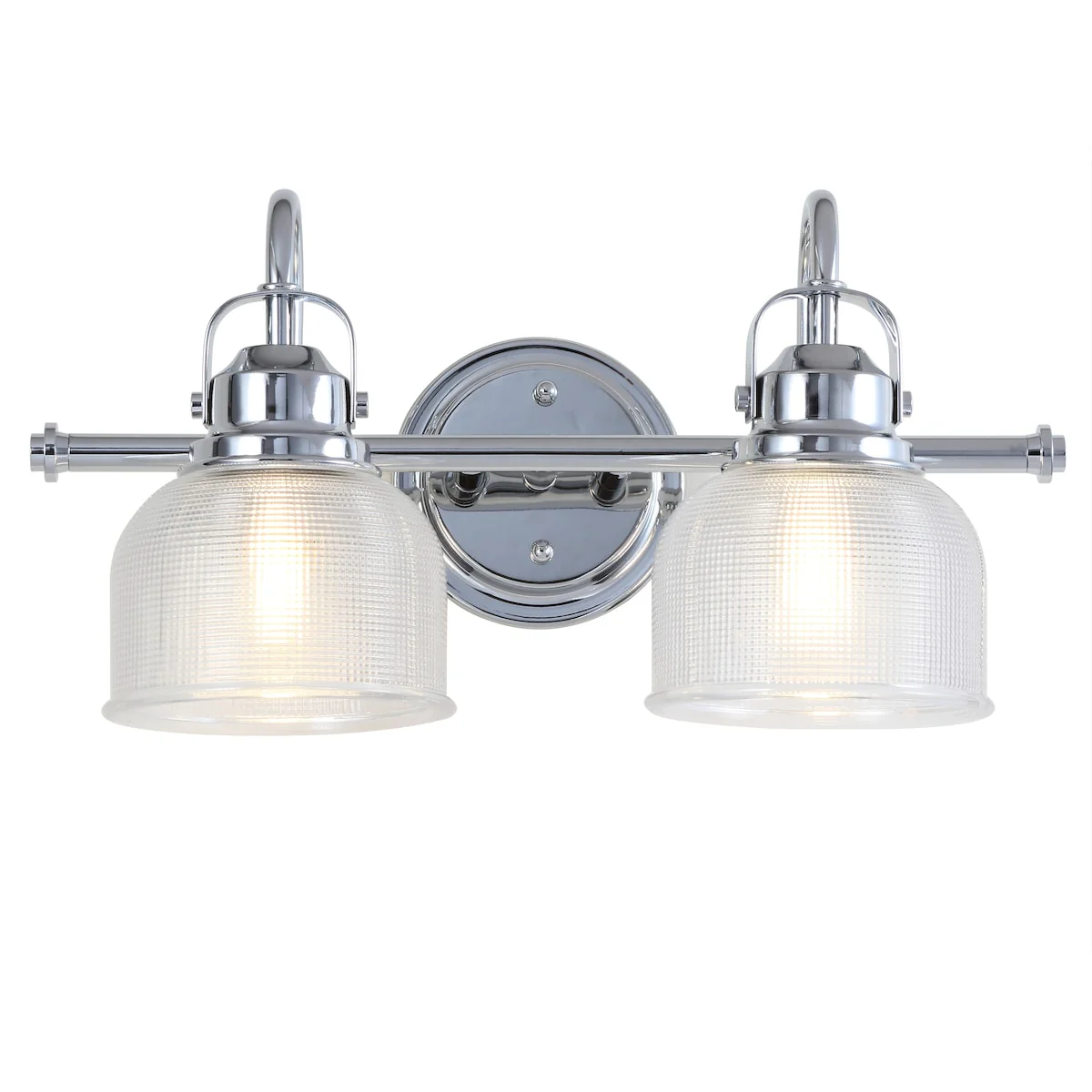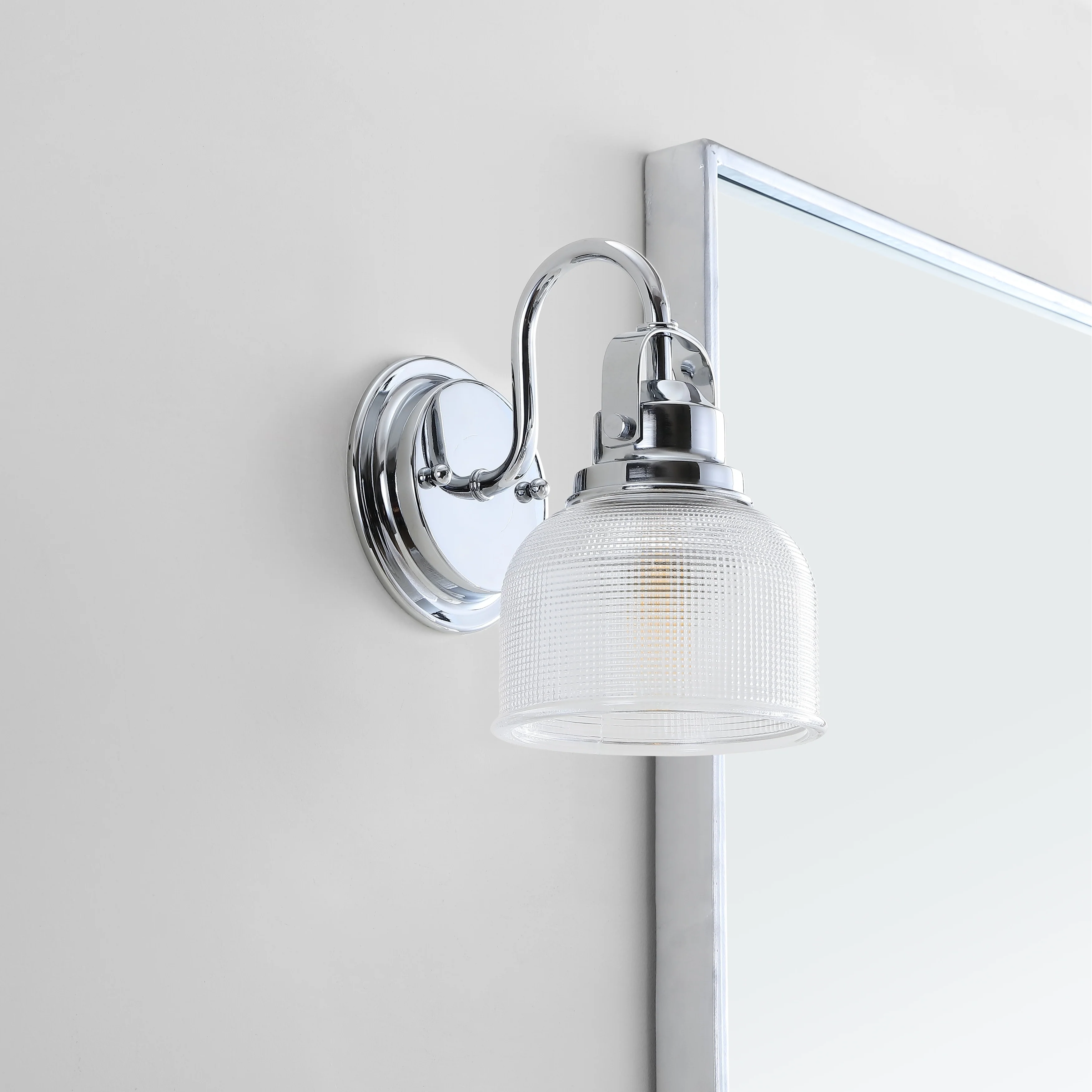 - Textured glass and polished chrome come together to create a chic, classic combination for this sconce