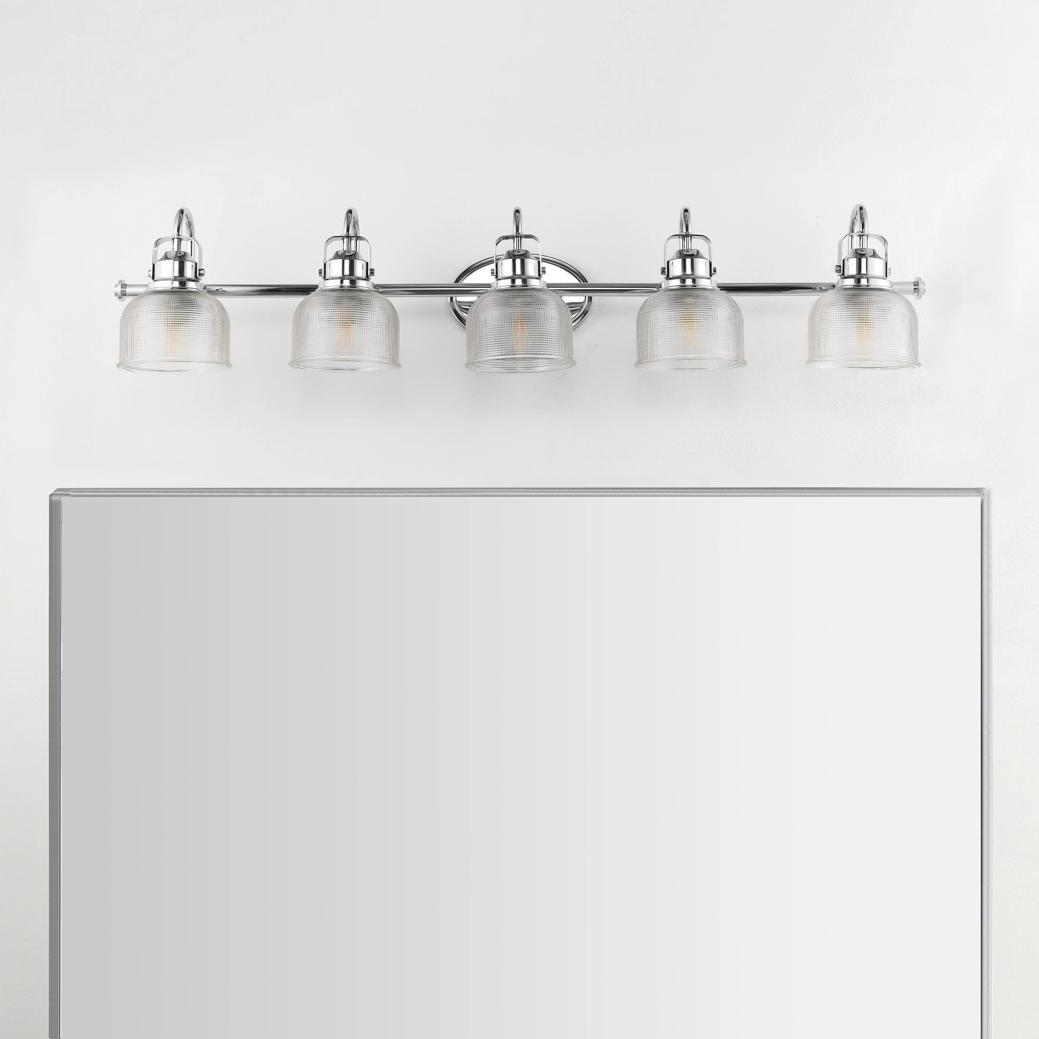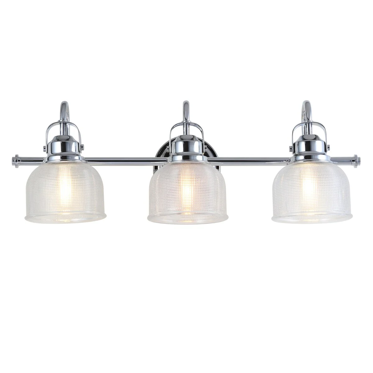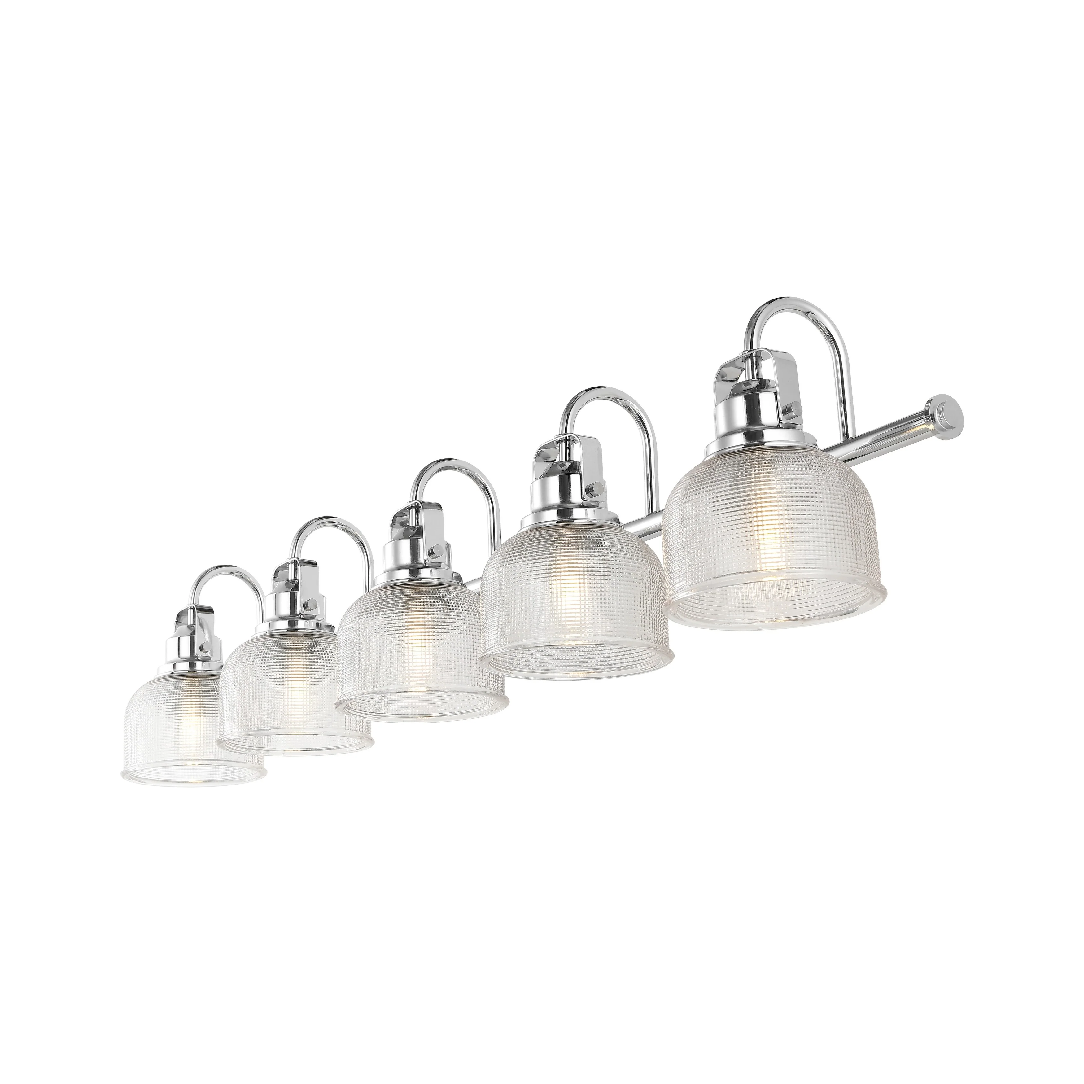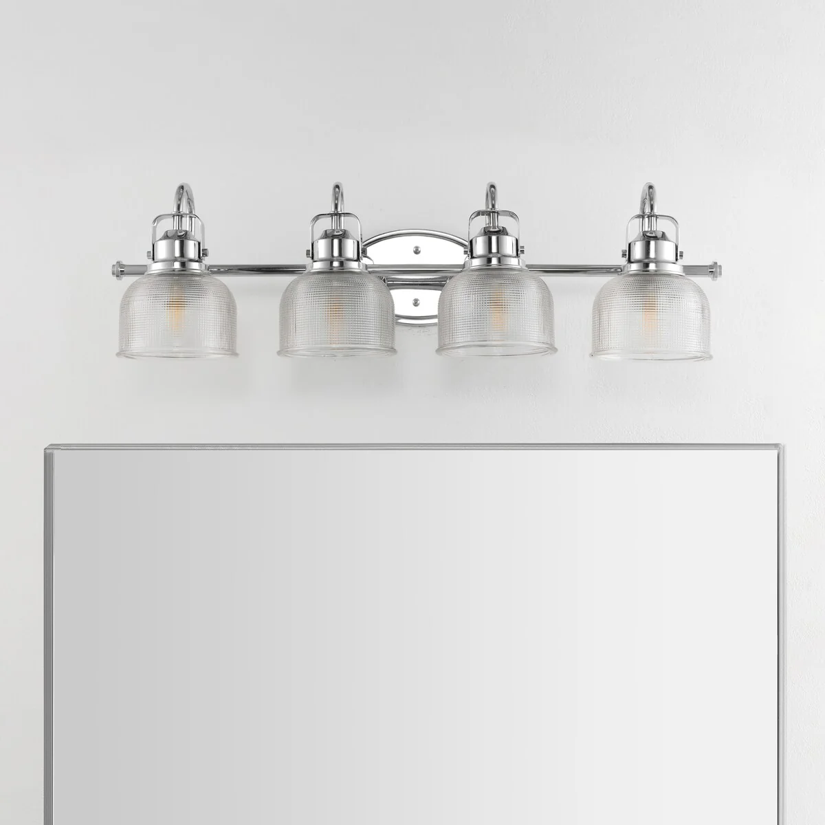 - Textured glass and polished chrome come together to create a chic, classic combination for this sconce