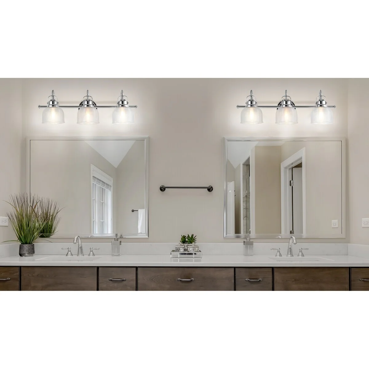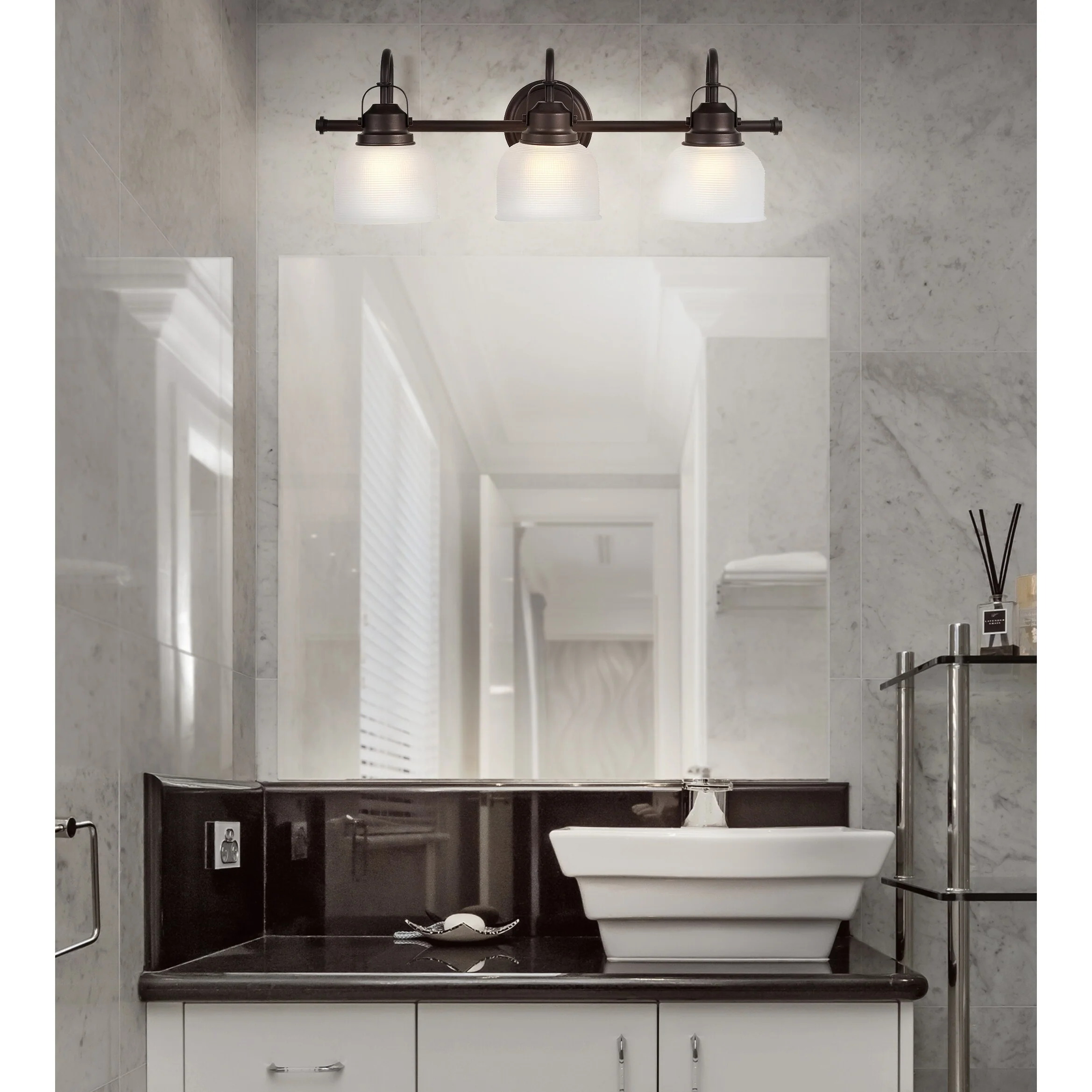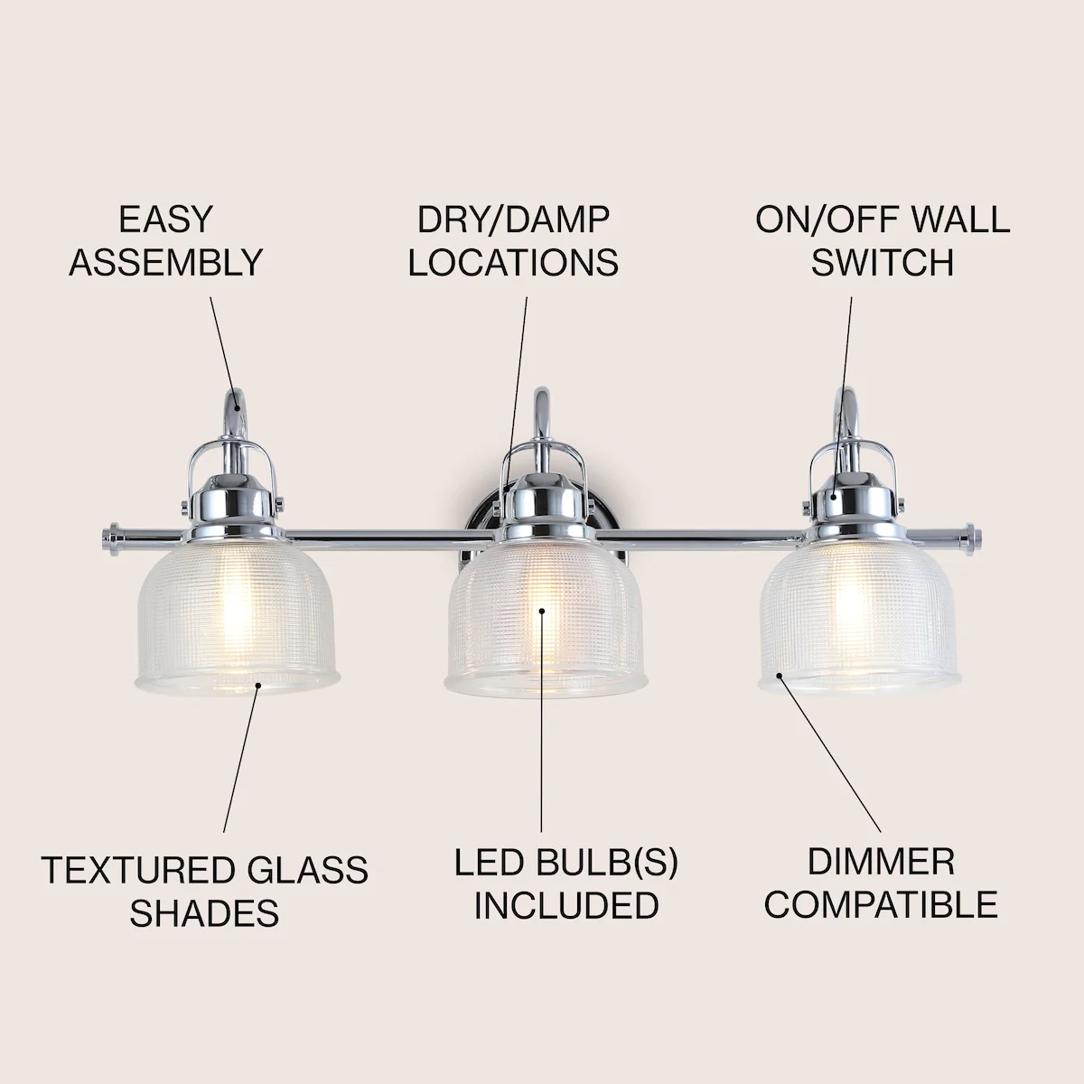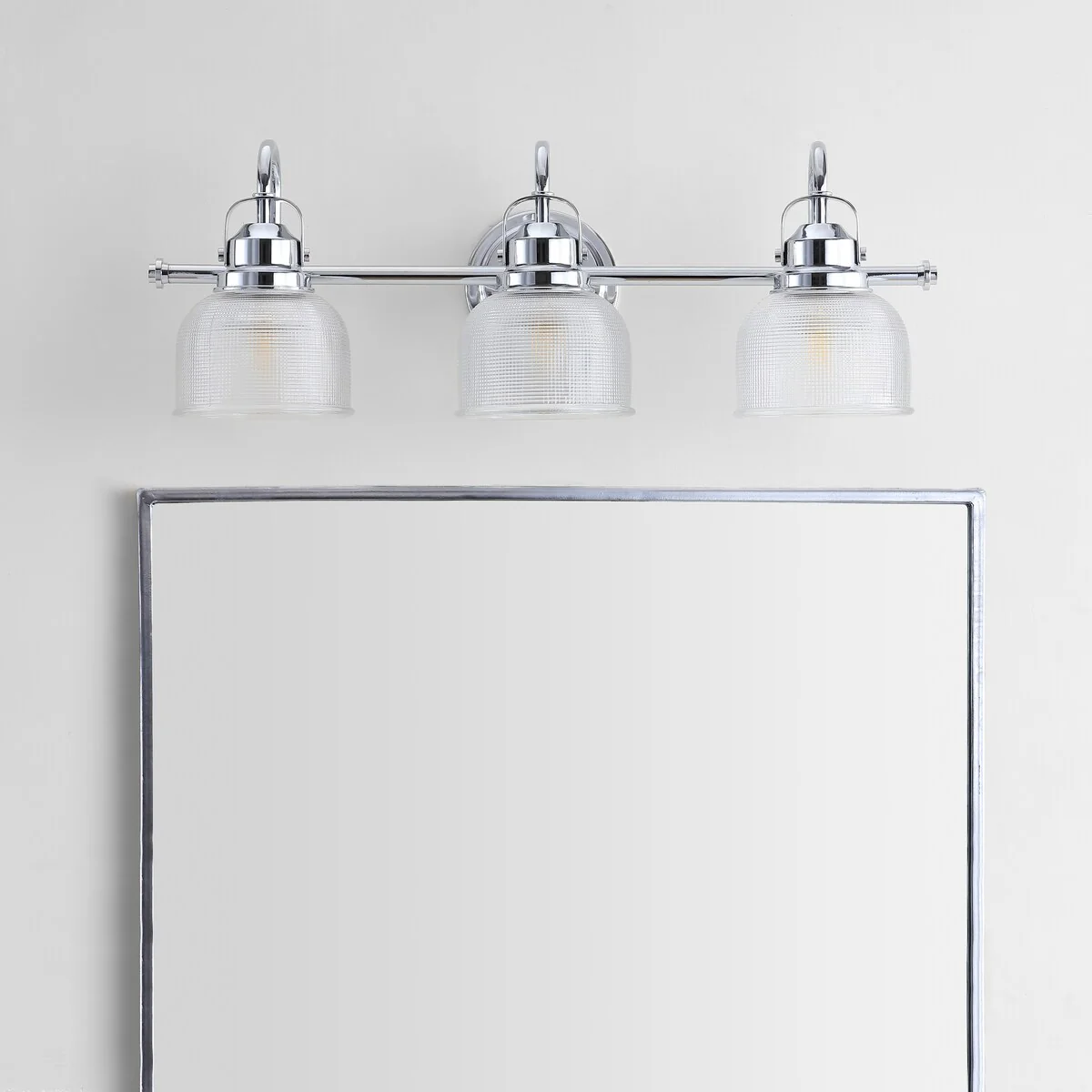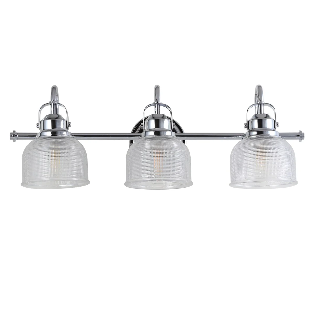 - Textured glass and polished chrome come together to create a chic, classic combination for this sconce