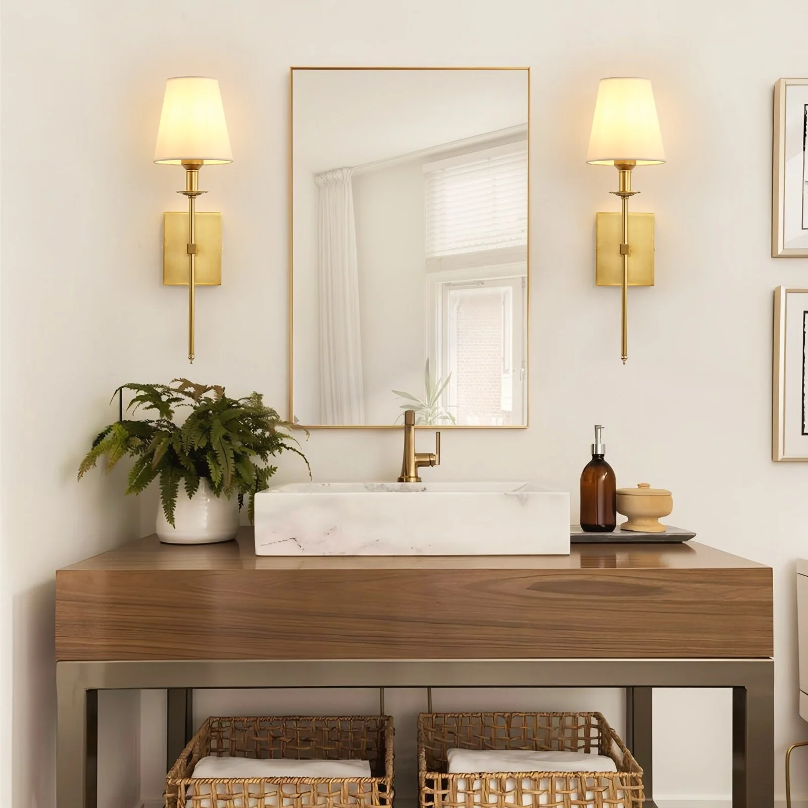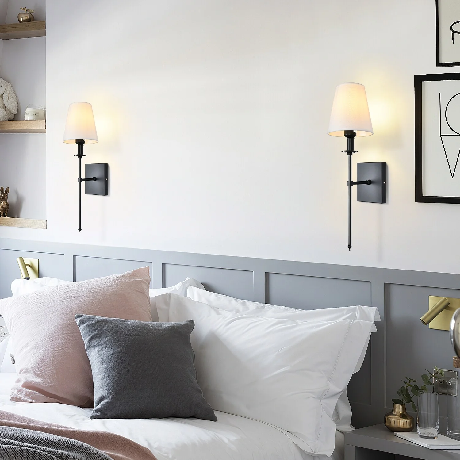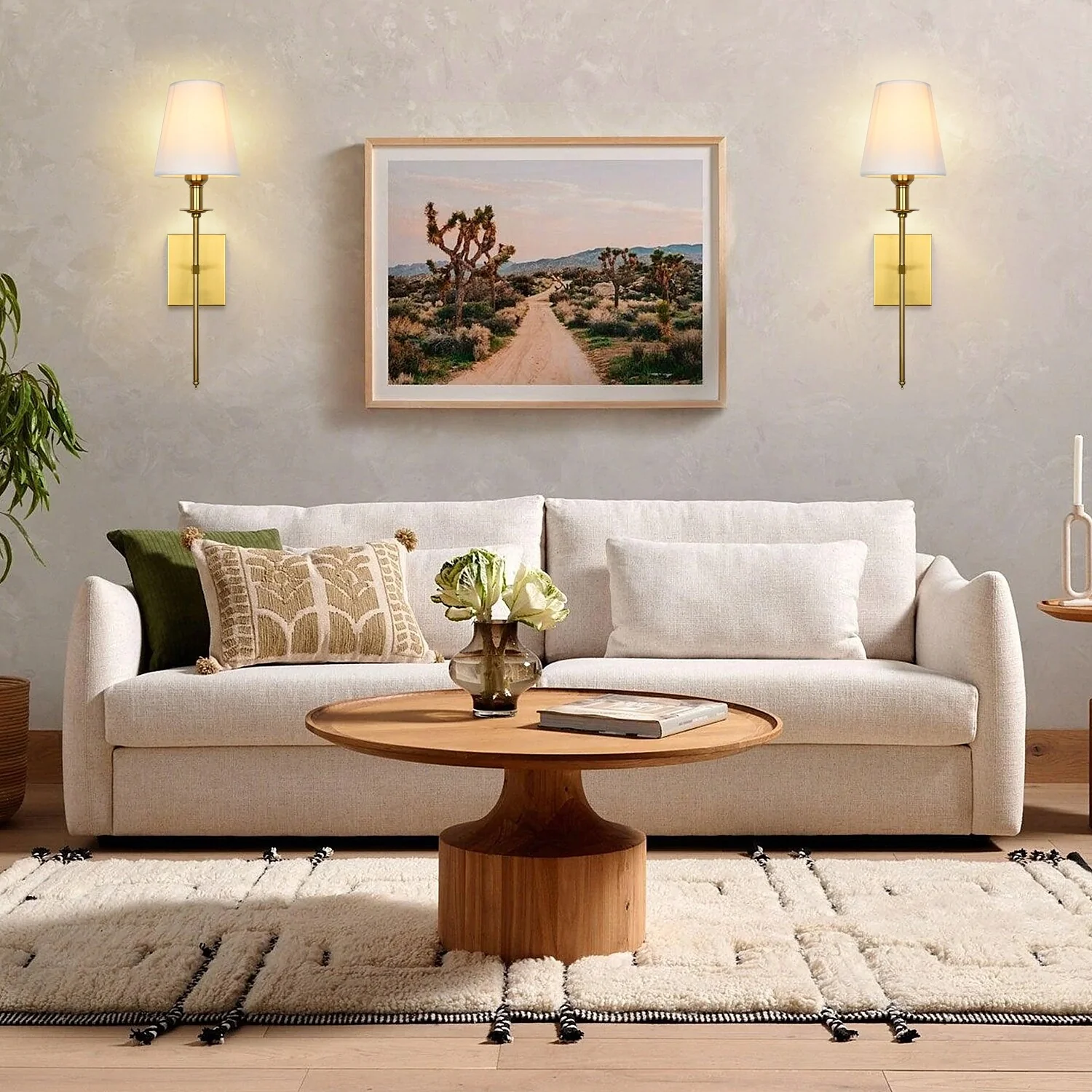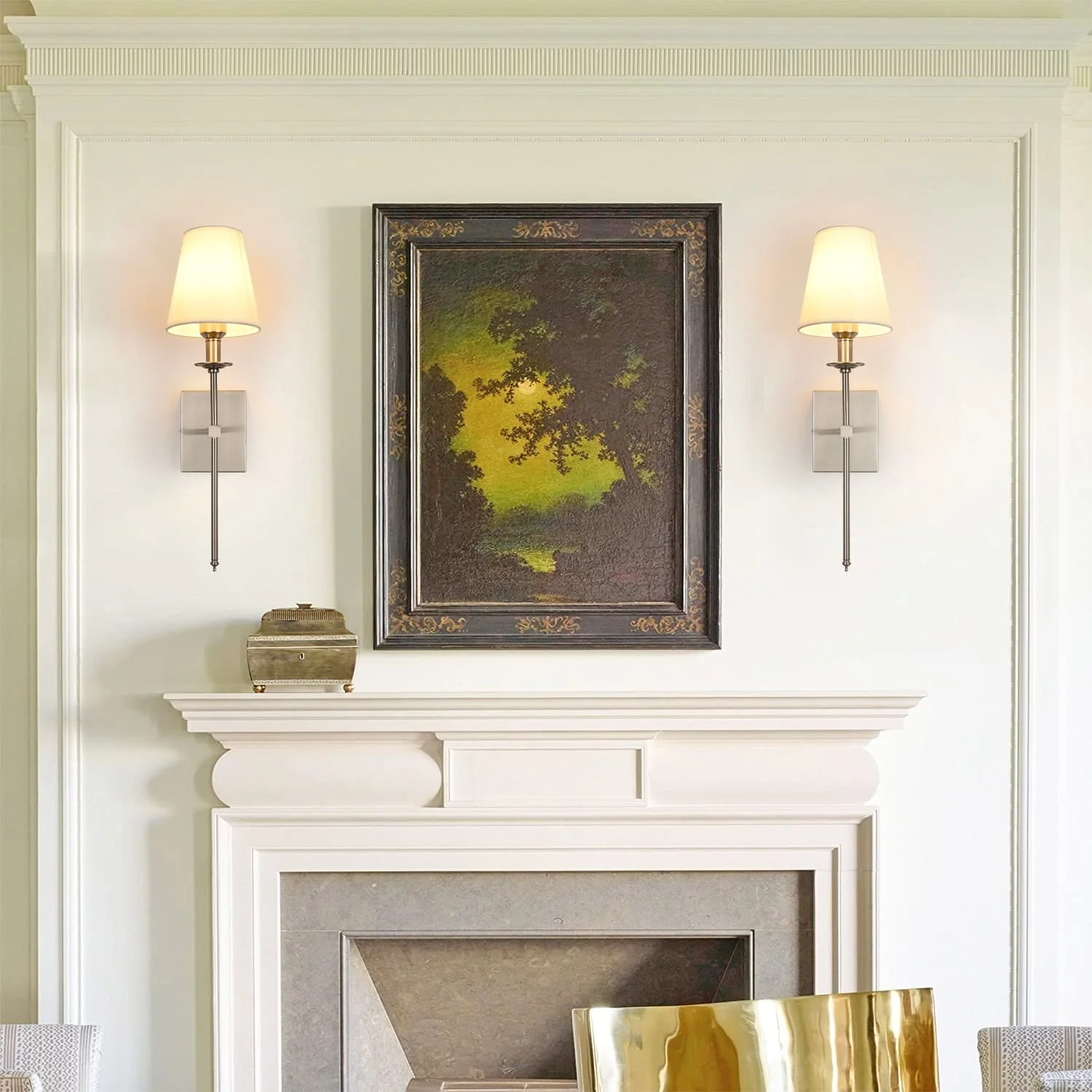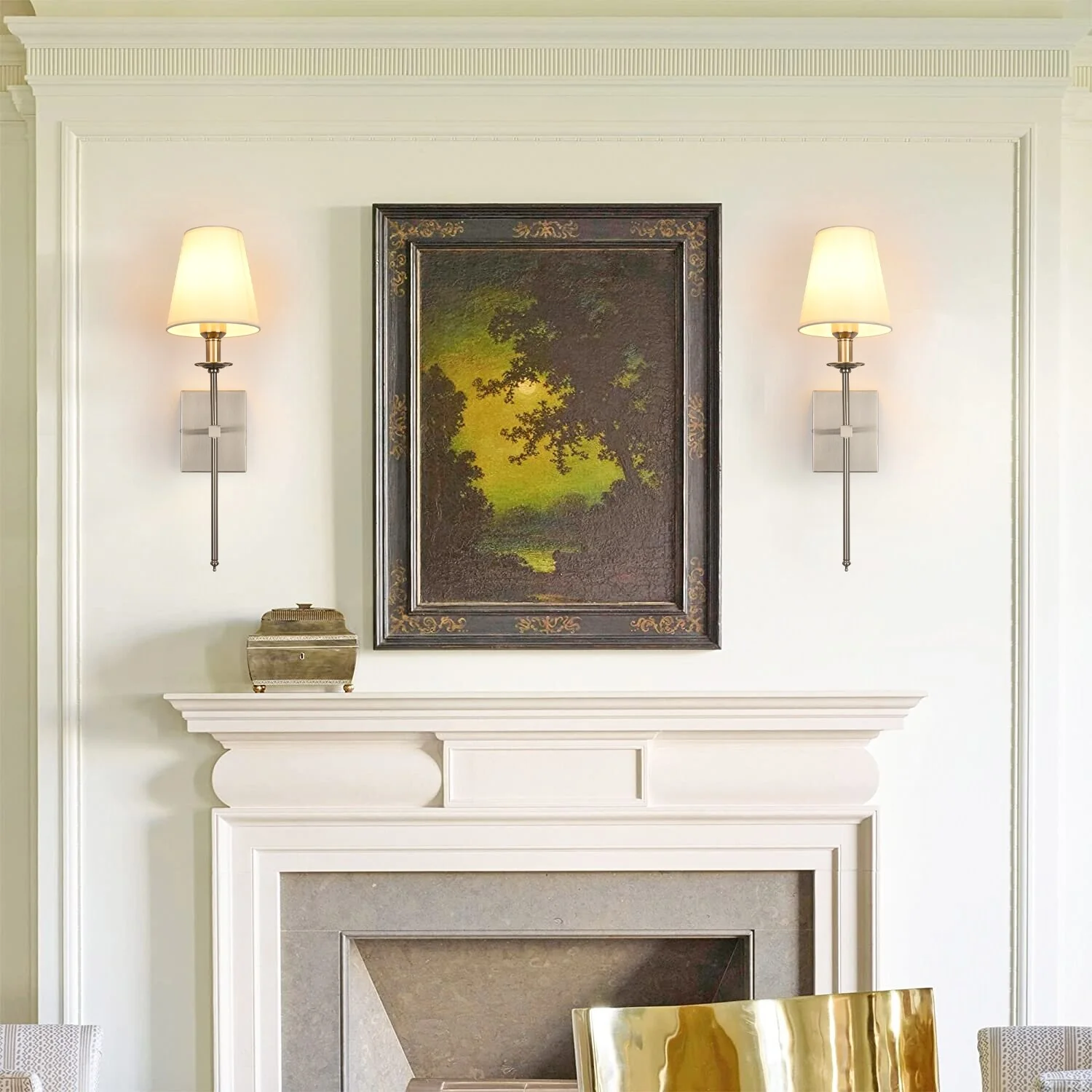Elevate your space with the Starsky 1 - Light Industrial Wall Sconce Set with Tapered Fabric Shade (Sets of 2), offering a touch of industrial charm and modern elegance. This set includes two wall sconces, each featuring a tapered fabric shade that adds a soft touch to the robust metal frame. Available in nickel, gold, and black finishes, these sconces provide versatile options to complement your decor. With their E26 bulb compatibility, they offer both style and functionality for your lighting needs.