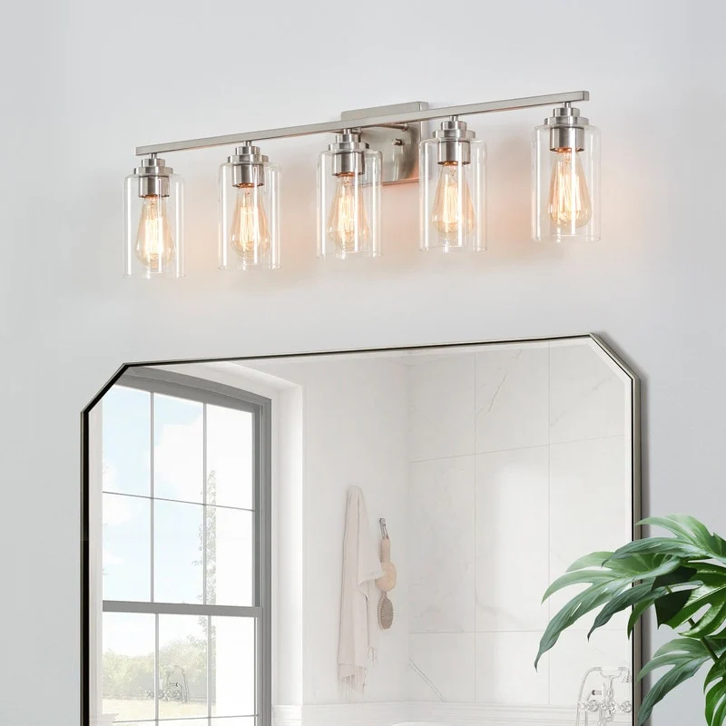 KAWOTI 5-Light Dimmable Bathroom Vanity Light with Clear Glass Shade