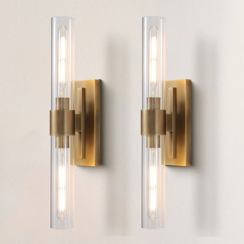 Gold Wall Sconce Set of 2, Bathroom Vanity Light Fixture with Cylinder Lamp Shade, Chrome/ Brushed Nickel/ Oil-Rubbed Bronze