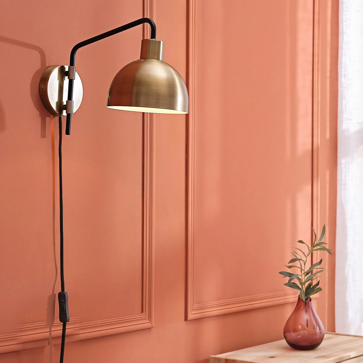 Dimitri 1-Light Antique Brass Plug-In or Hardwire Wall Sconce - 8.25