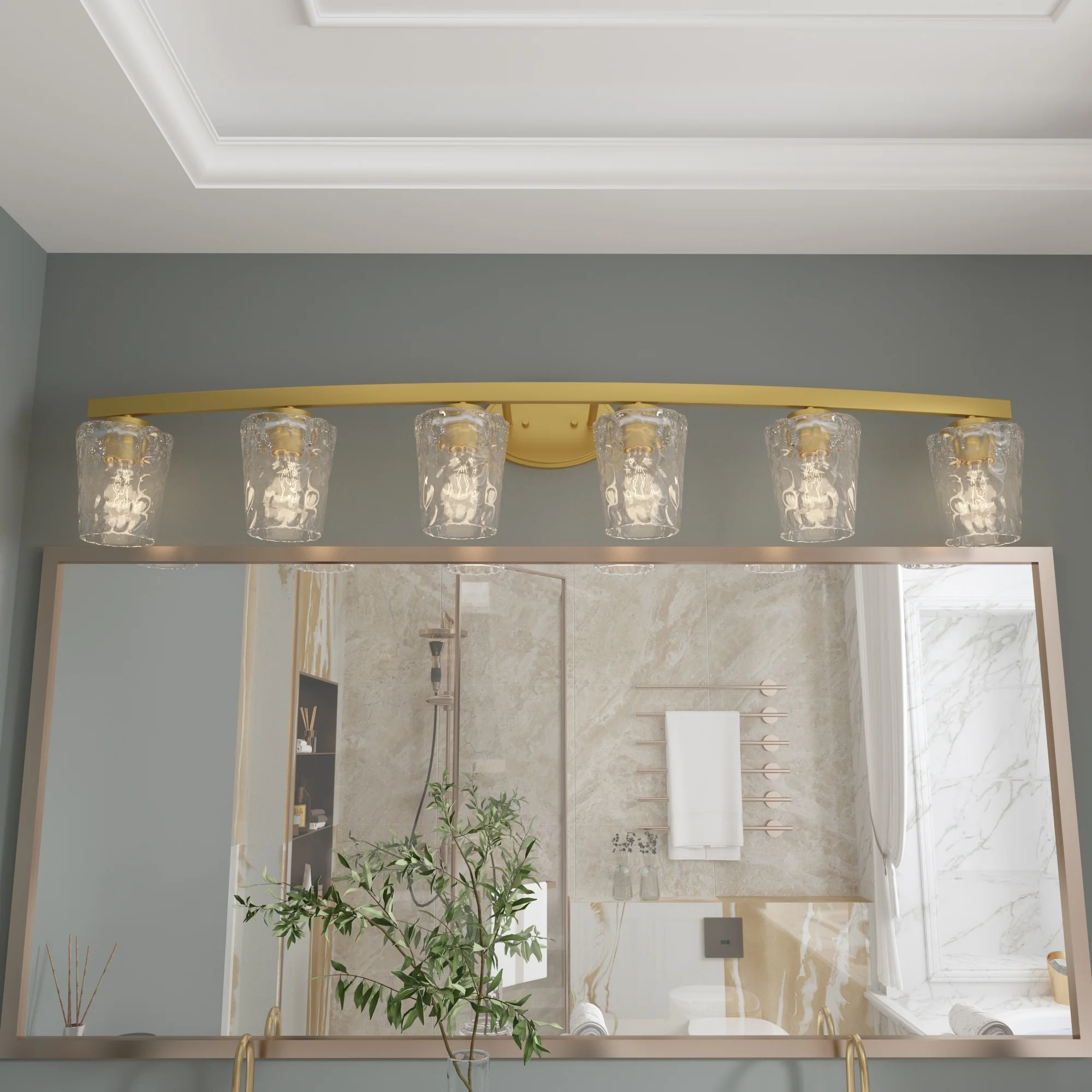 Modern Black Gold Bathroom Vanity Light Hammered Glass Wall Sconces Lamps with 1/2/3/4 Lights