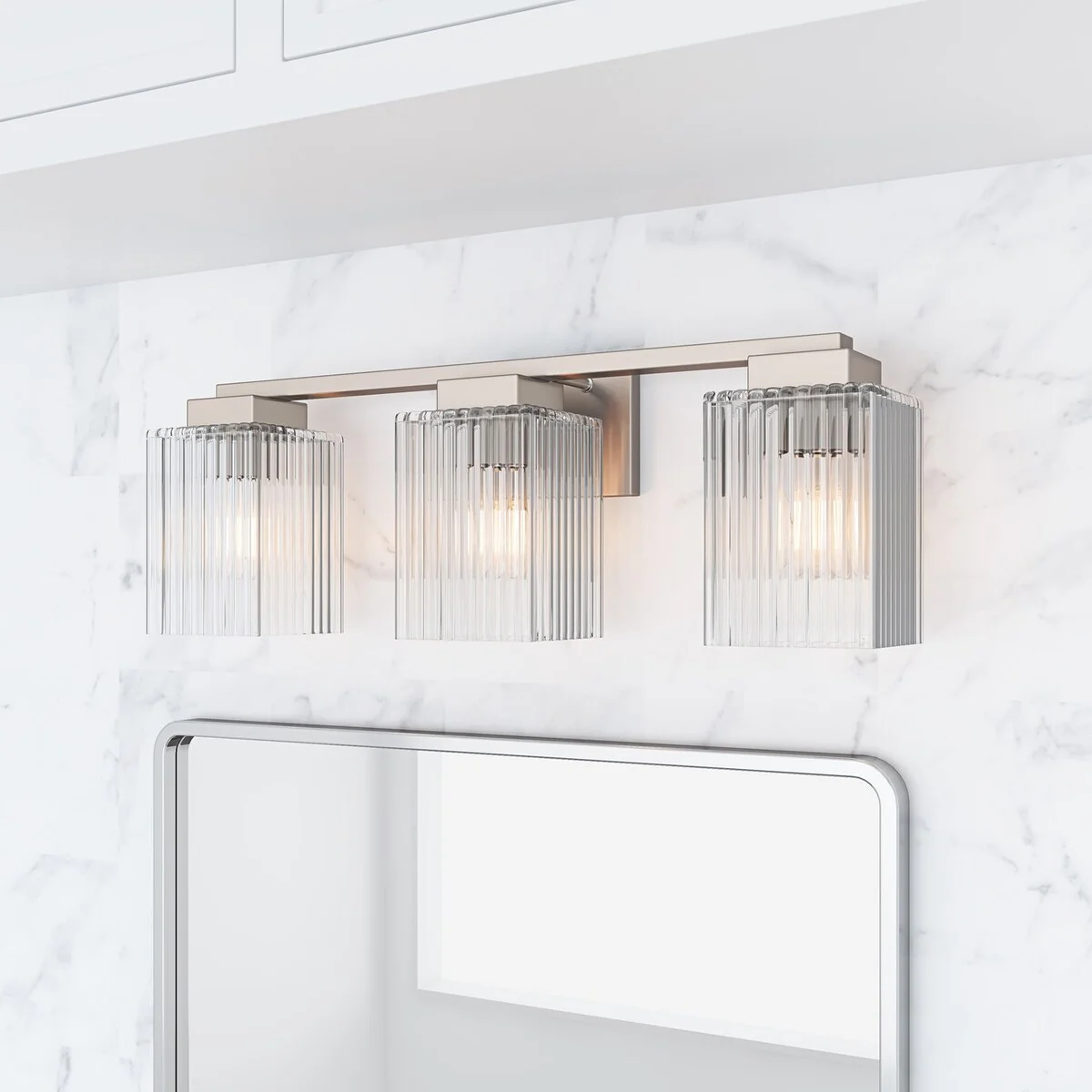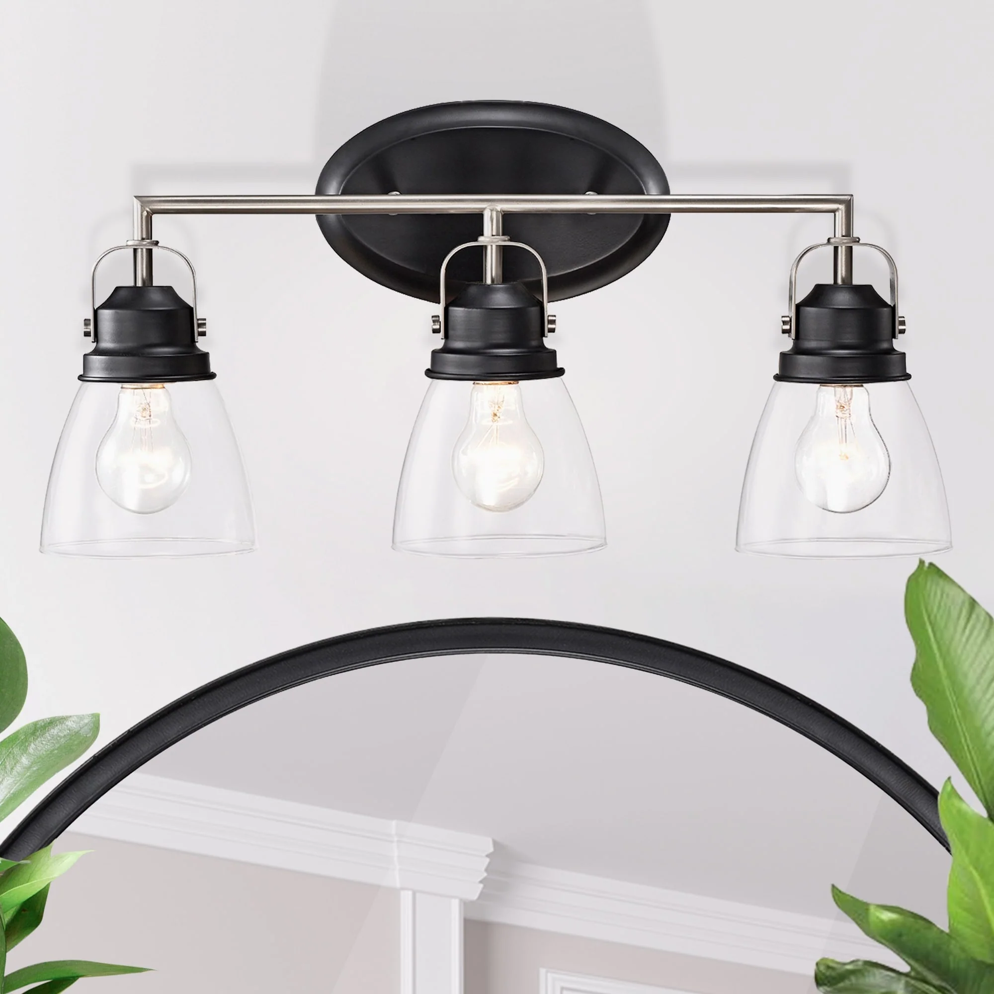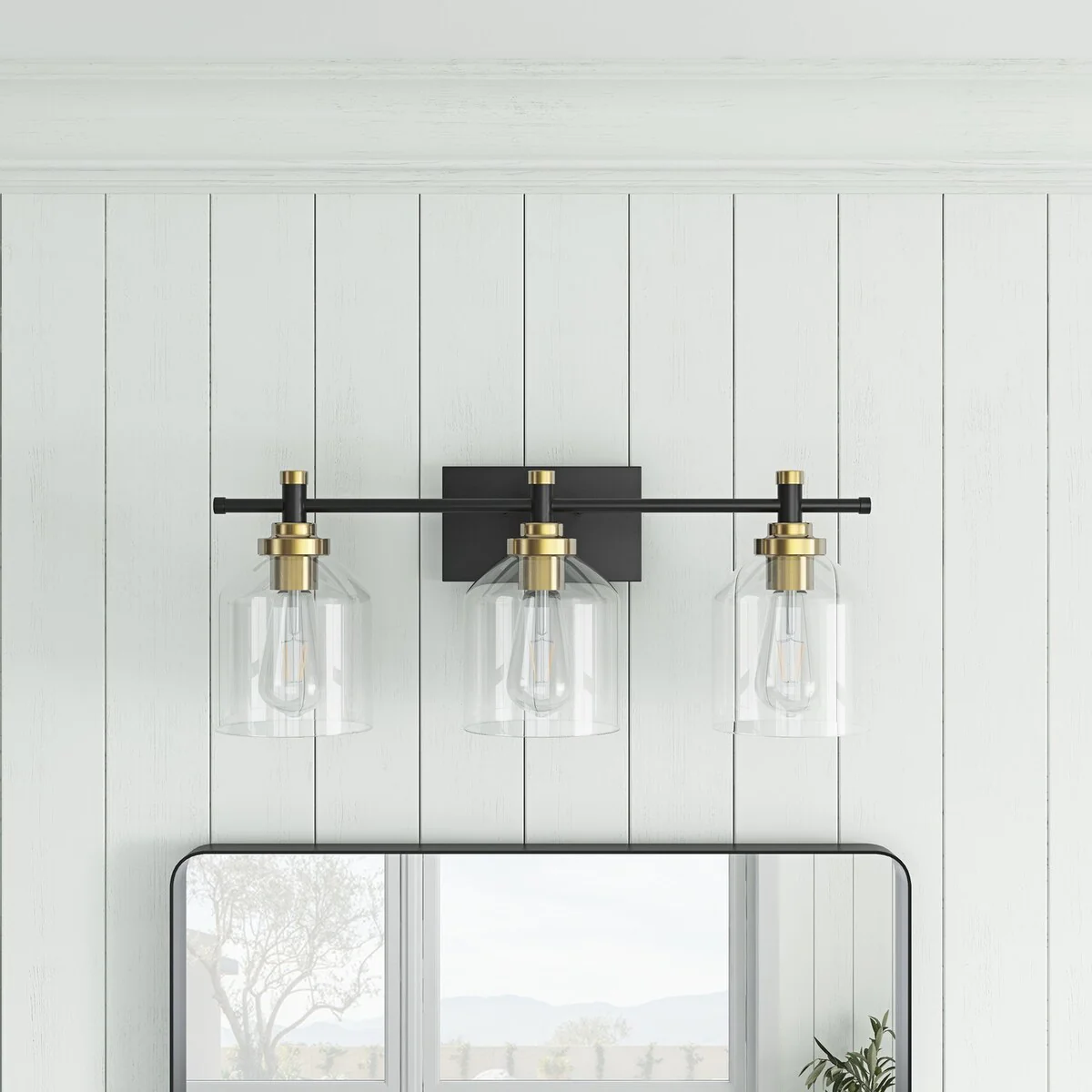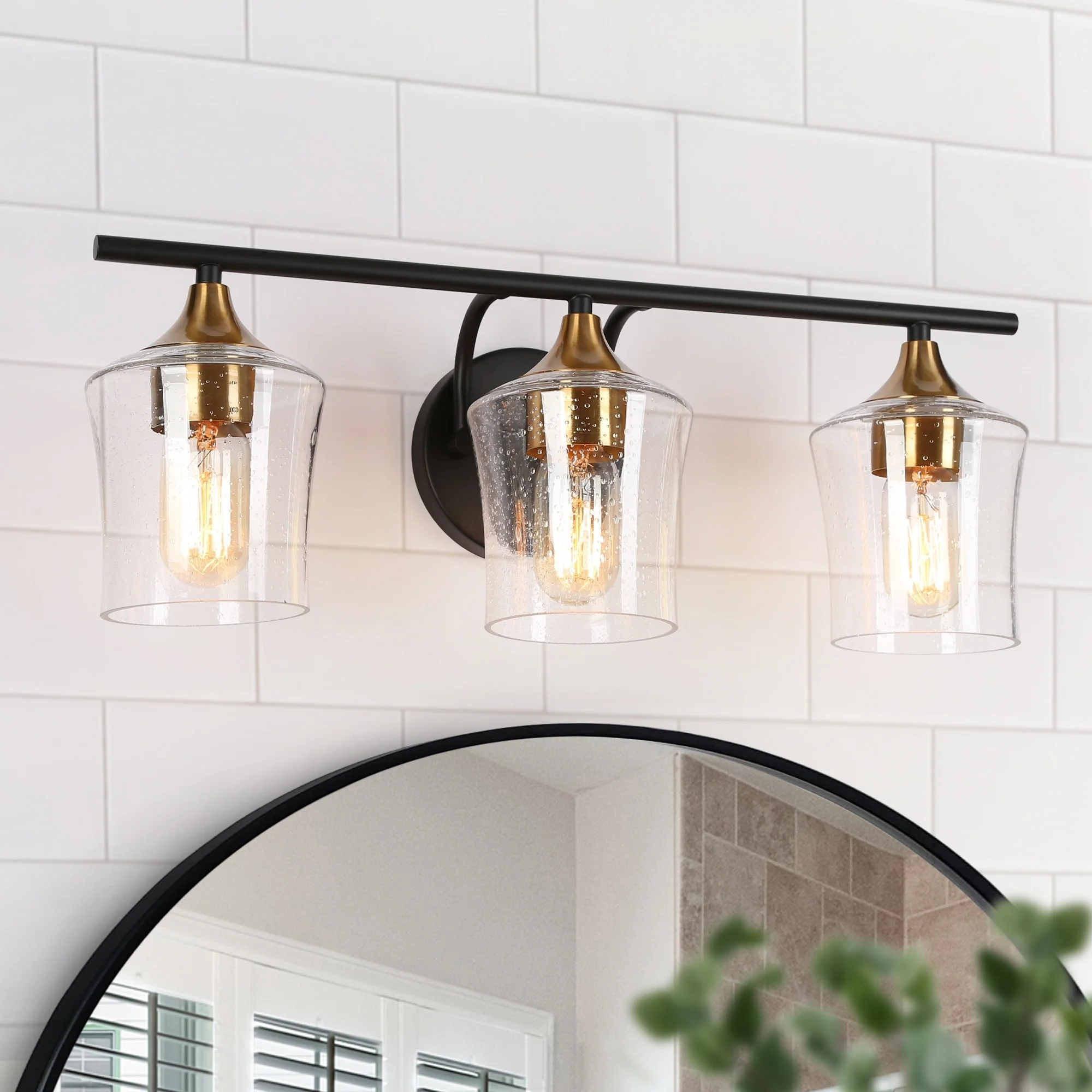Farmhouse Gold 3-Light Bathroom Glass Vanity Light Fixture Over Mirror