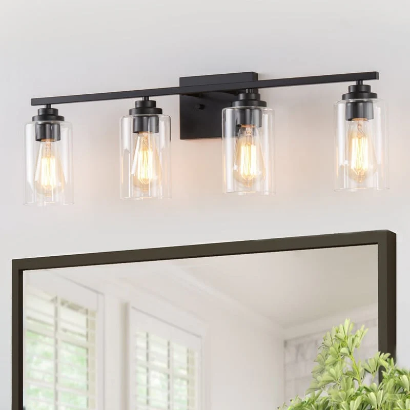 KAWOTI 29inch 4-Light Modern Bathroom Vanity Light with Clear Glass Shades