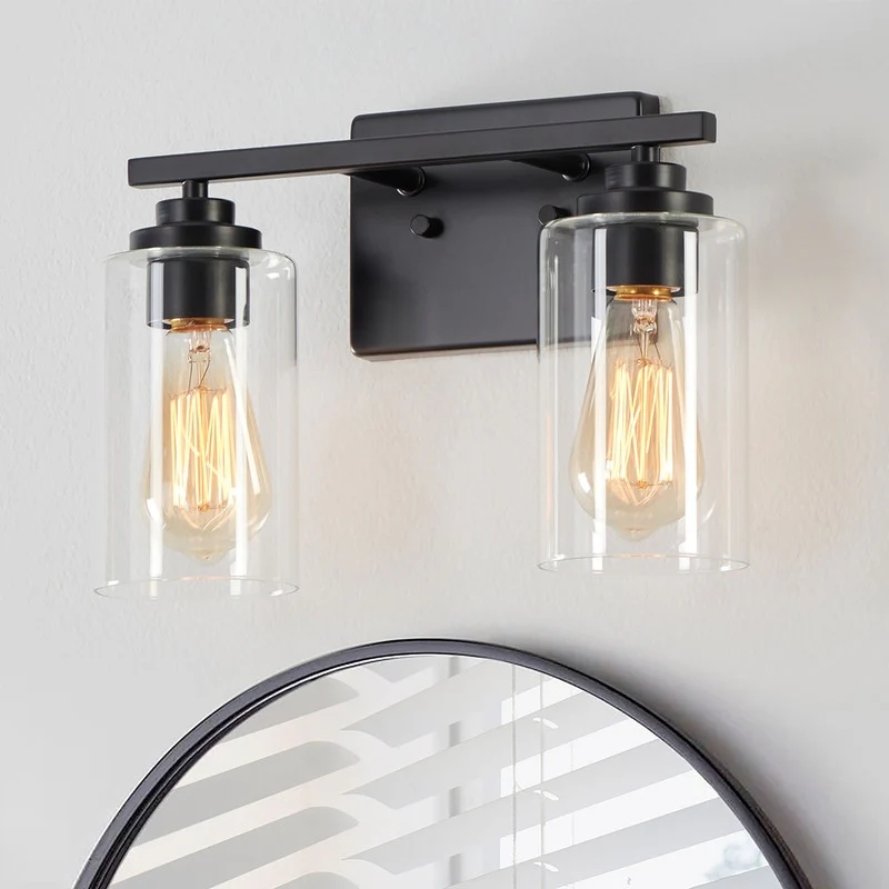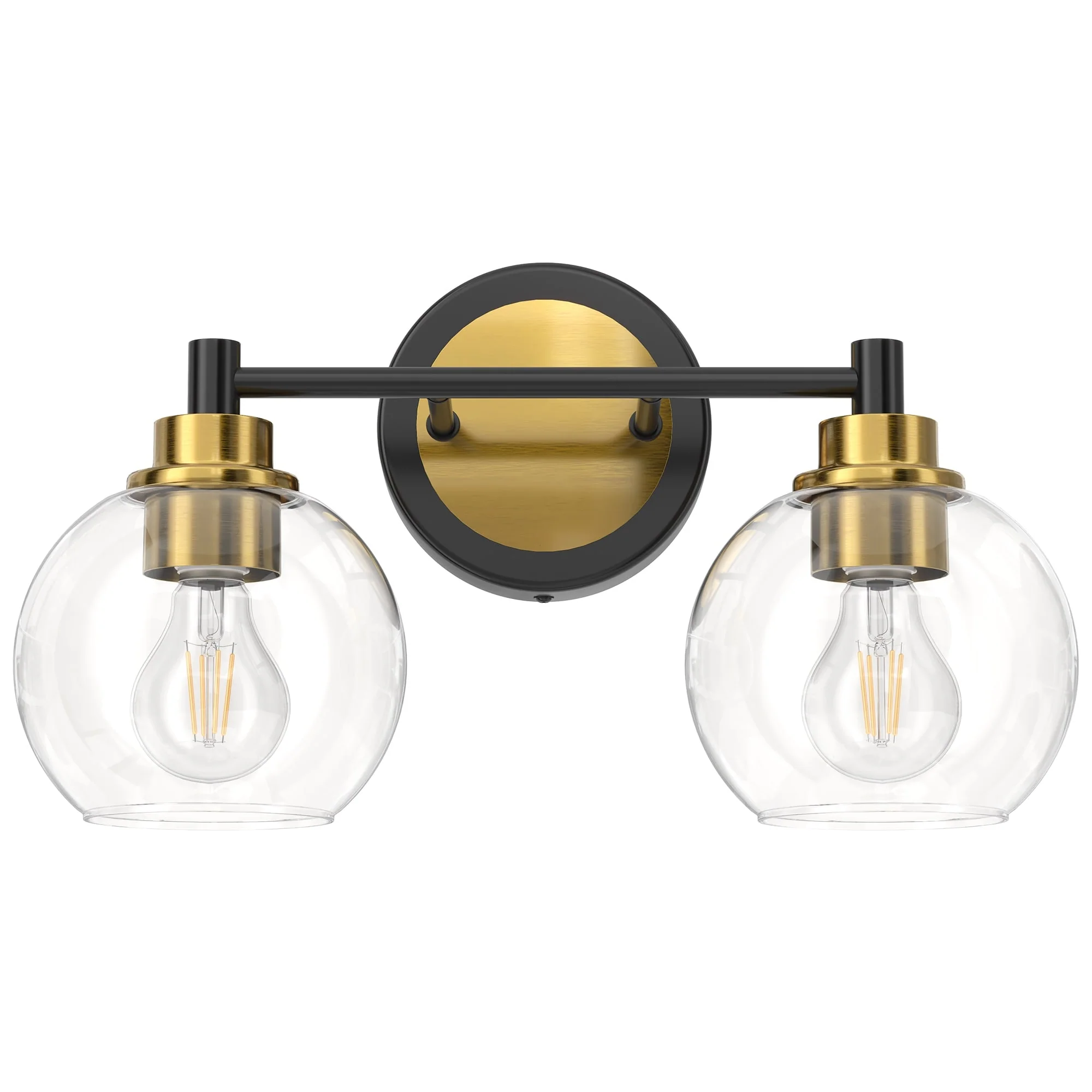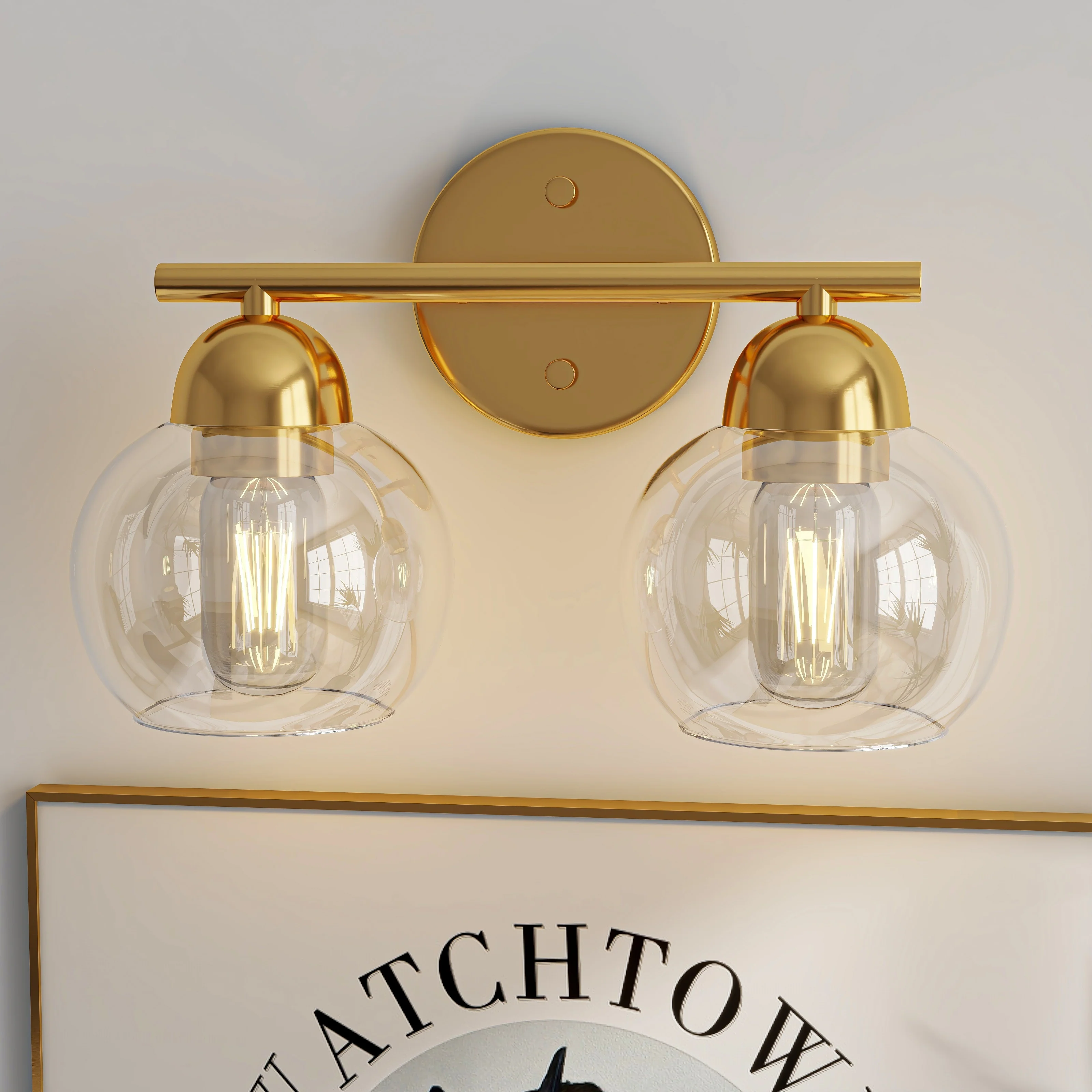 KAWOTI 2-Light Dimmable Bathroom Vanity Light with Clear Glass Shade
